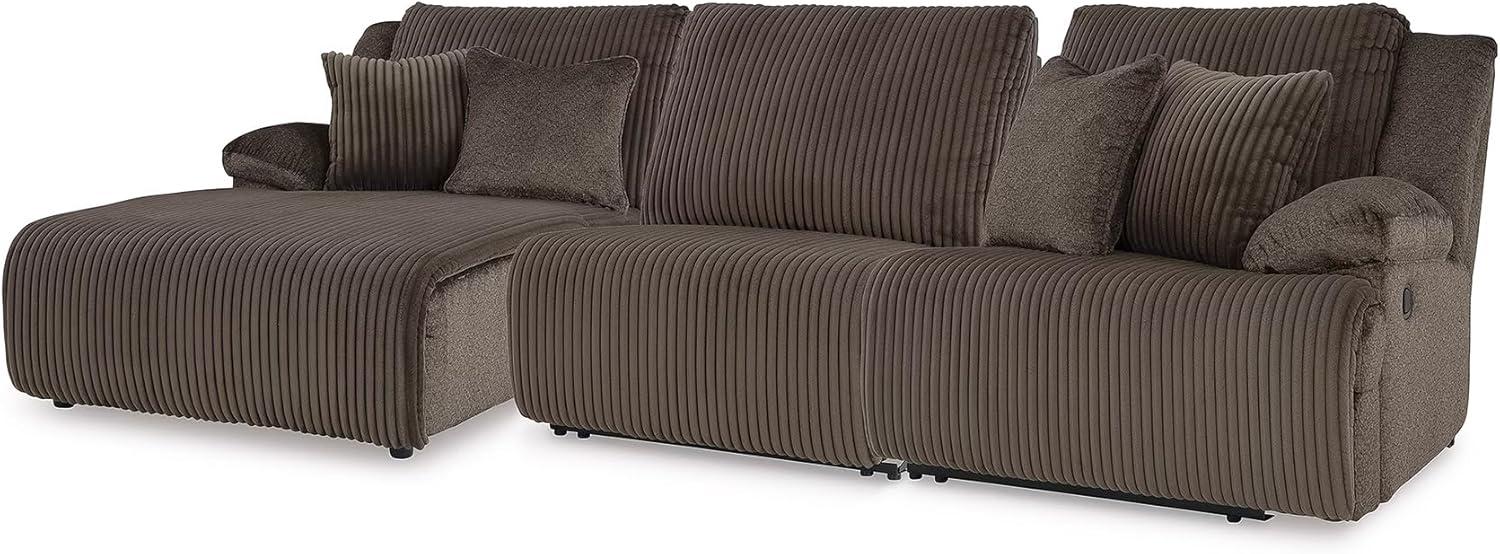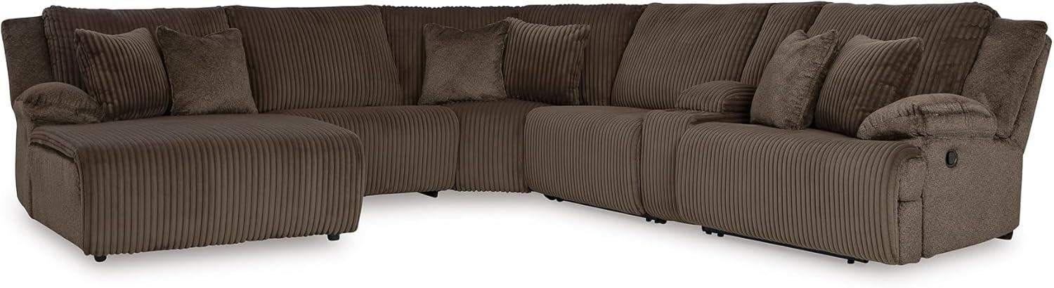 Signature Design by Ashley Top Tier Casual Manual Reclining Left-Arm Facing 3-Piece Sectional Sofa Chaise with 4 Accent Pillows, Dark Brown(White)