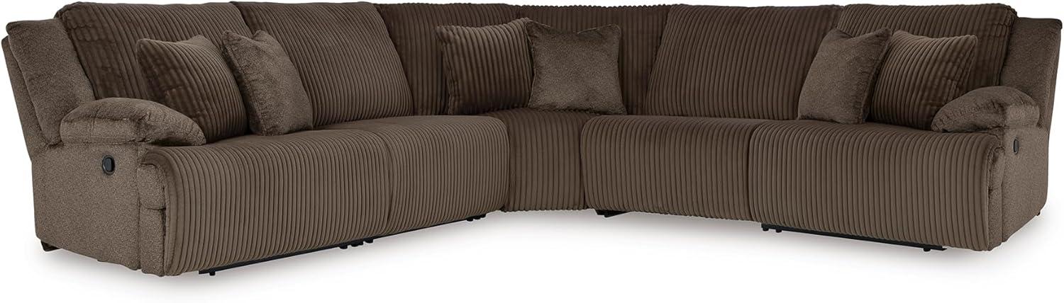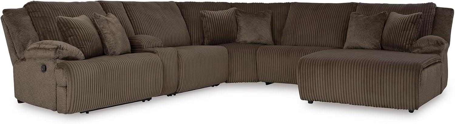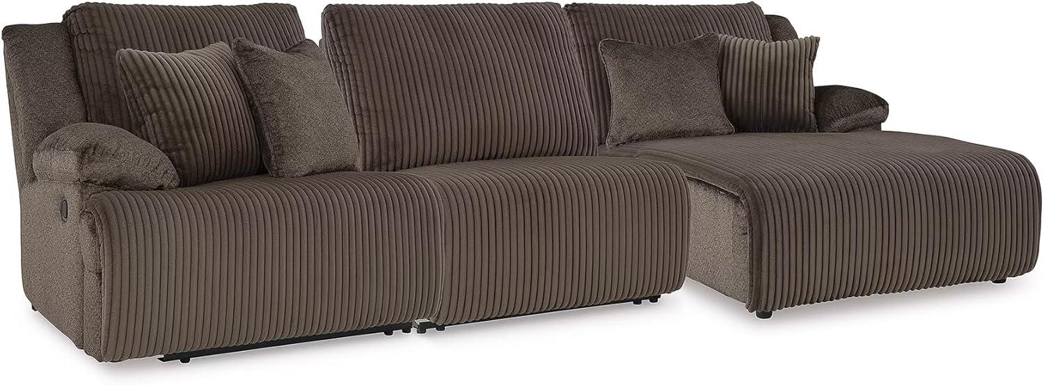 Experience unparalleled comfort with this reclining sectional with chaise. It’s a stylish and invitingly soft look—made all the more appealing by cozy corduroy cushions that feel great and add a touch of texture. The rich chocolate brown upholstery effortlessly blends into your decor, making it a gorgeous addition to your home. So sit back and unwind in this spacious set, perfect for gatherings with friends and family.