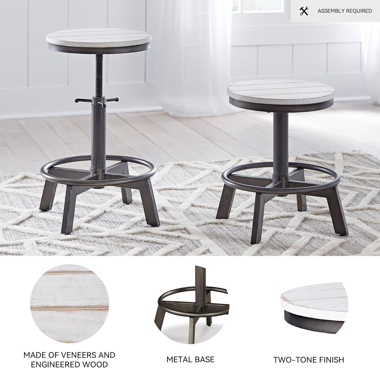 Signature Design by Ashley Torjin Industrial 24″ Adjustable Height Barstool, 2 Count, Brown(White)