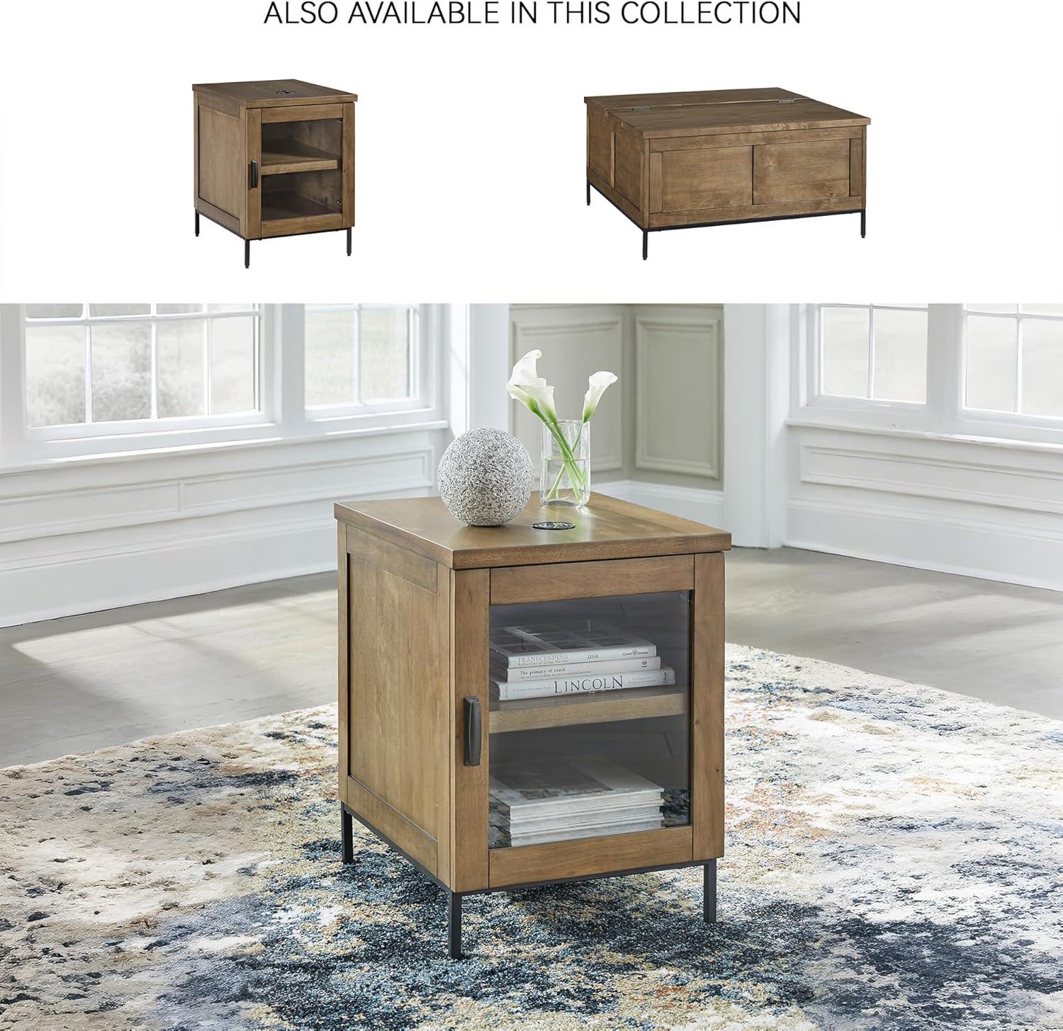 Signature Design by Ashley Torlanta Contemporary Chairside End Table with 1 Door, 1 Shelf and Wireless Charging, Light Brown & Black