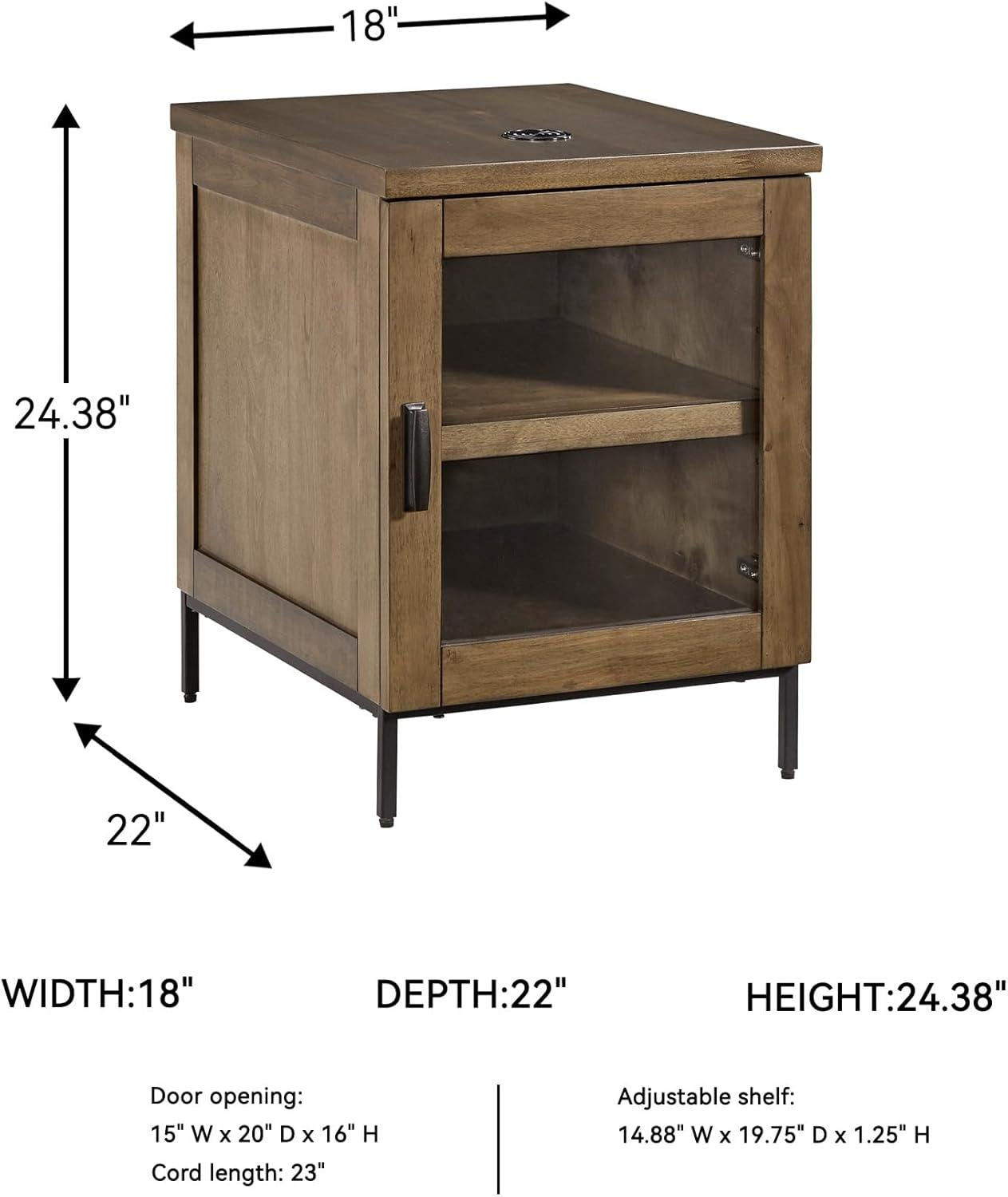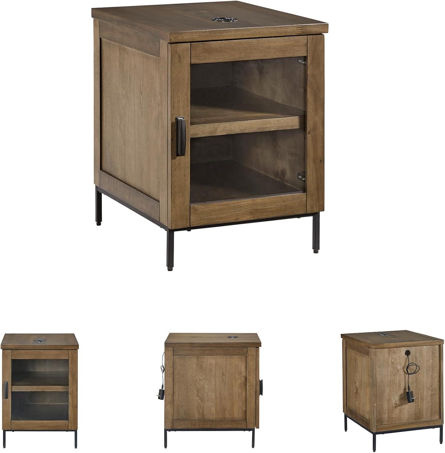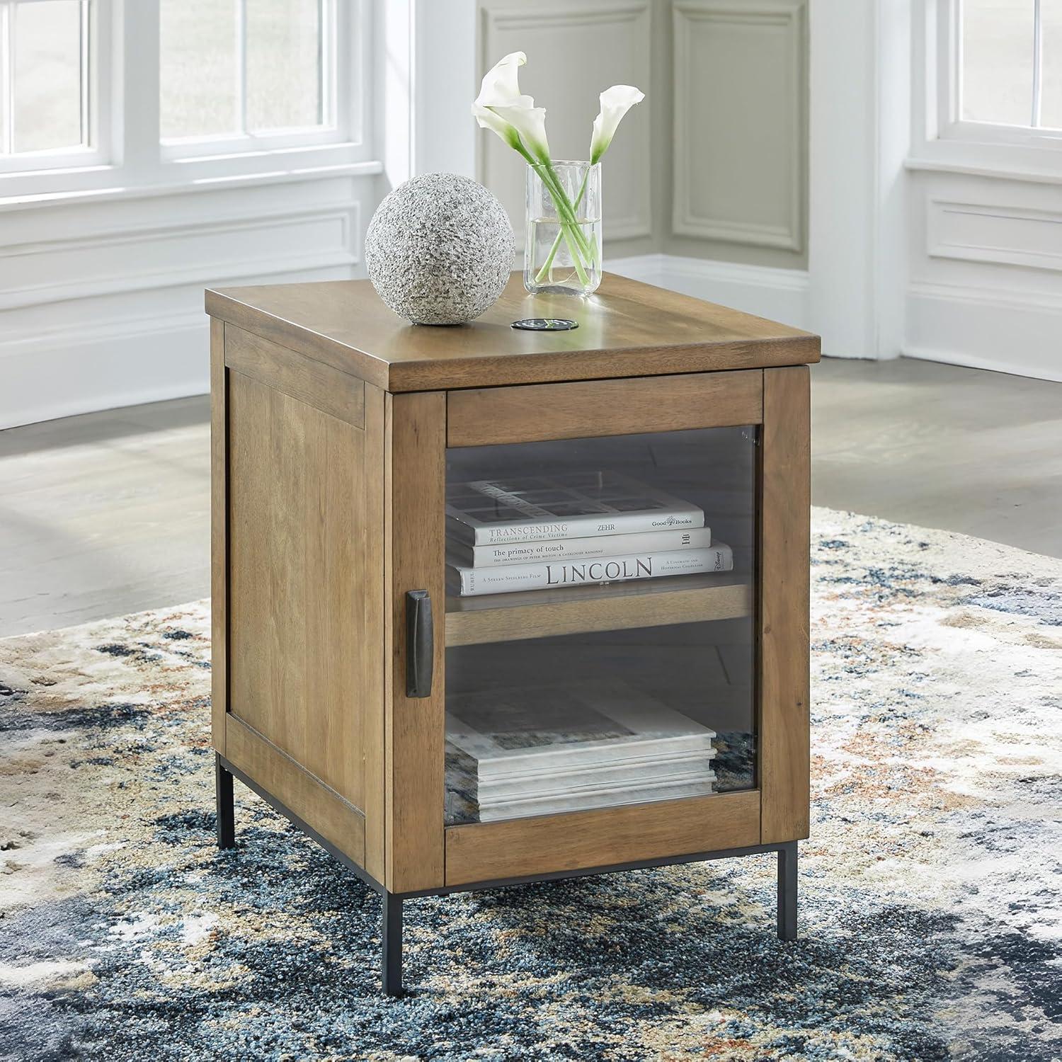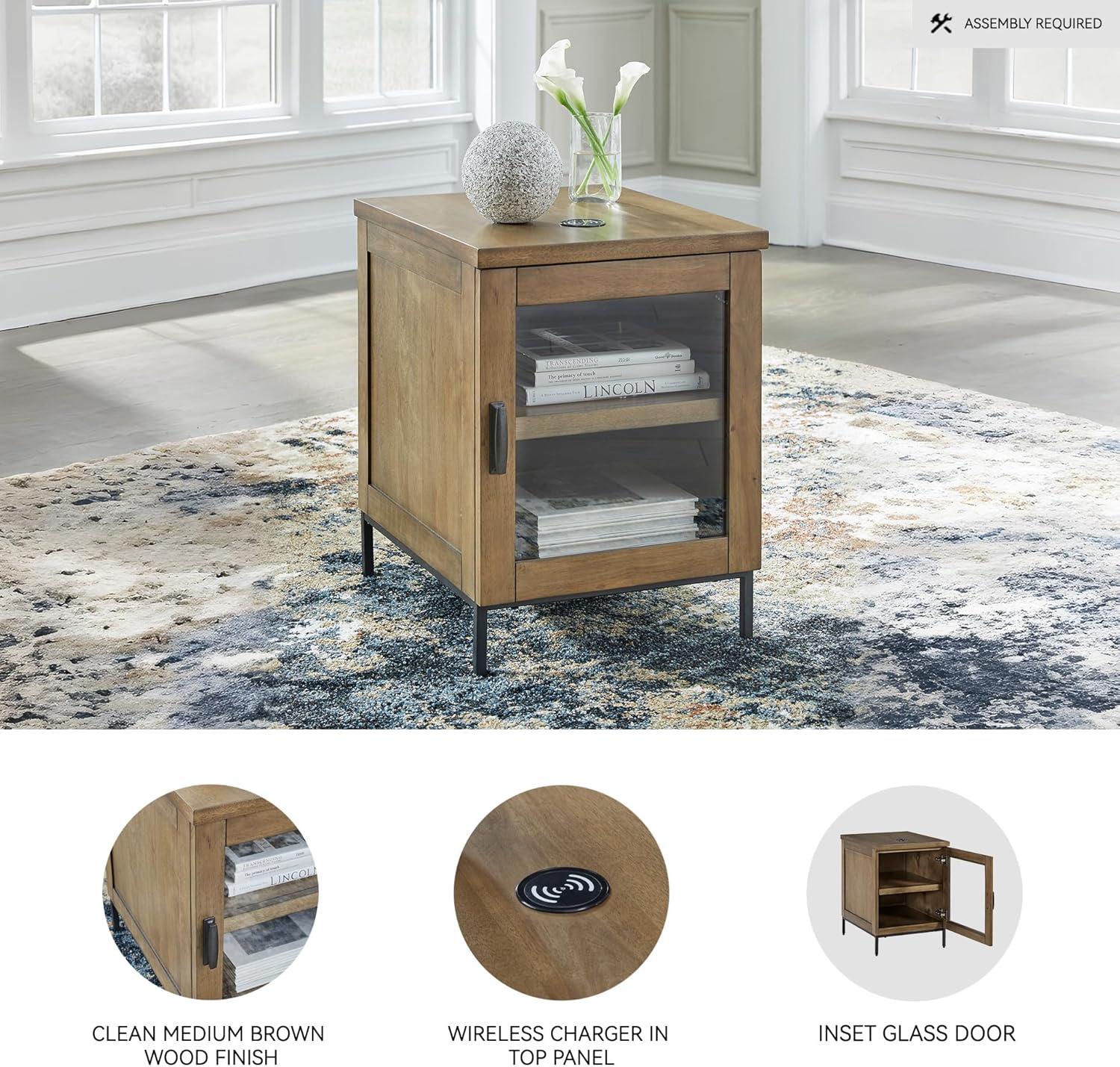 Made for the everyday, this chairside end table is a sleek complement to your casual contemporary living room. You’ll love the refined-yet-relaxed vibe of its contrasting medium brown finish and matte black legs. Simultaneously store and display decor behind the glass-front door. And for added function, a wireless charger keeps your tabletop free of clutter-causing cords.