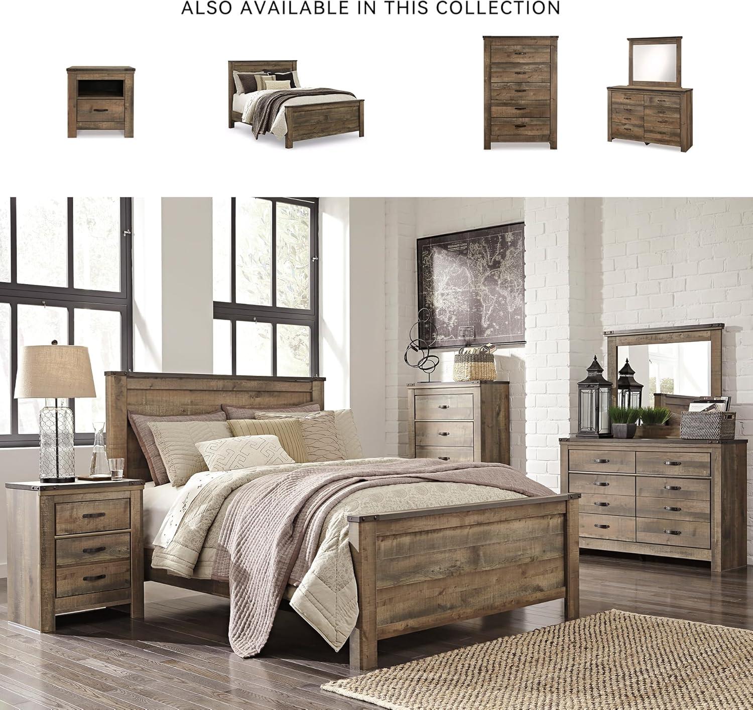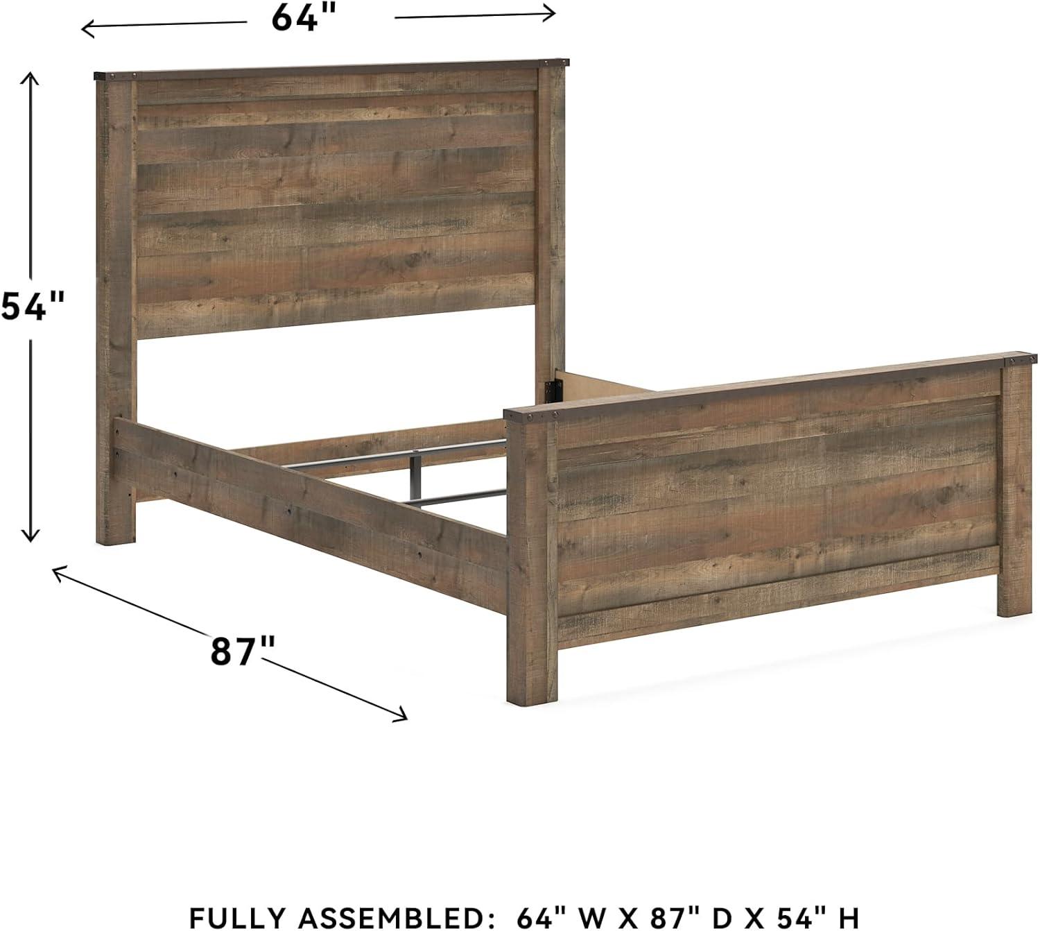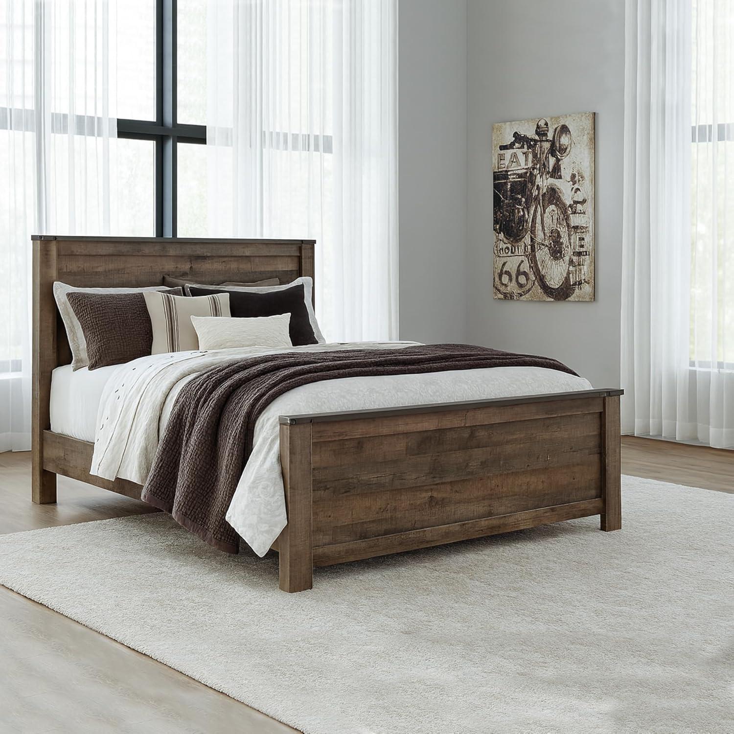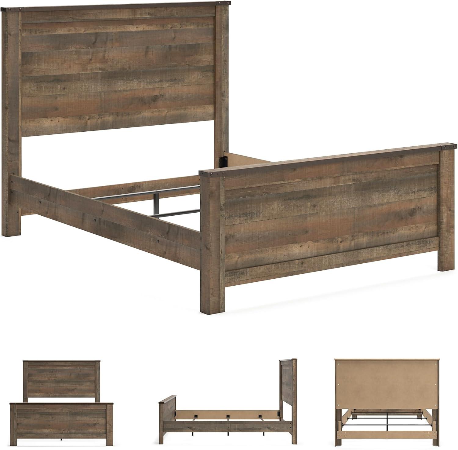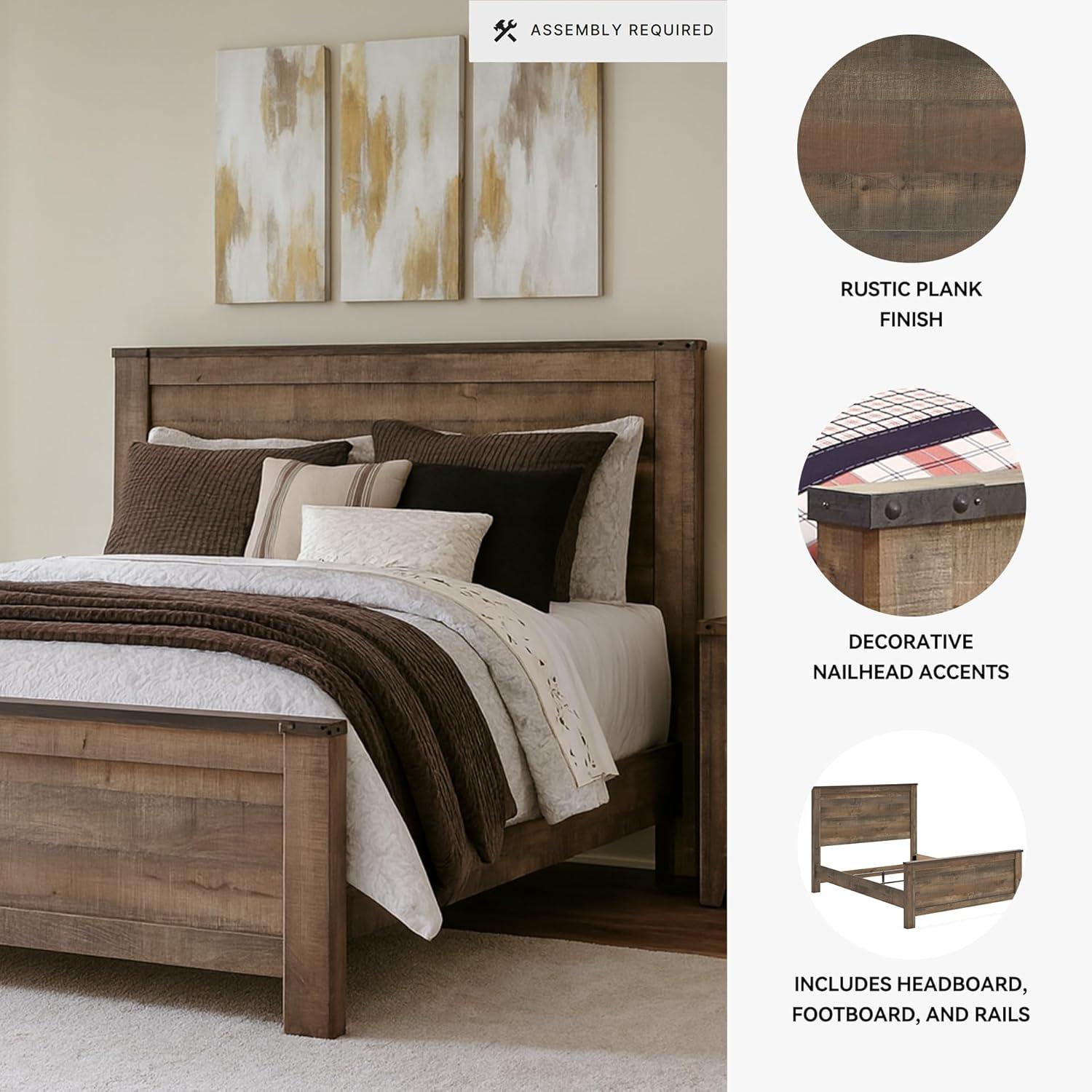 Signature Design by Ashley Trinell Rustic Bookcase Bed with Storage and Nailhead Accents, Foundation or Box Spring Not Needed, Full, Dark Brown(Queen Panel Bed)