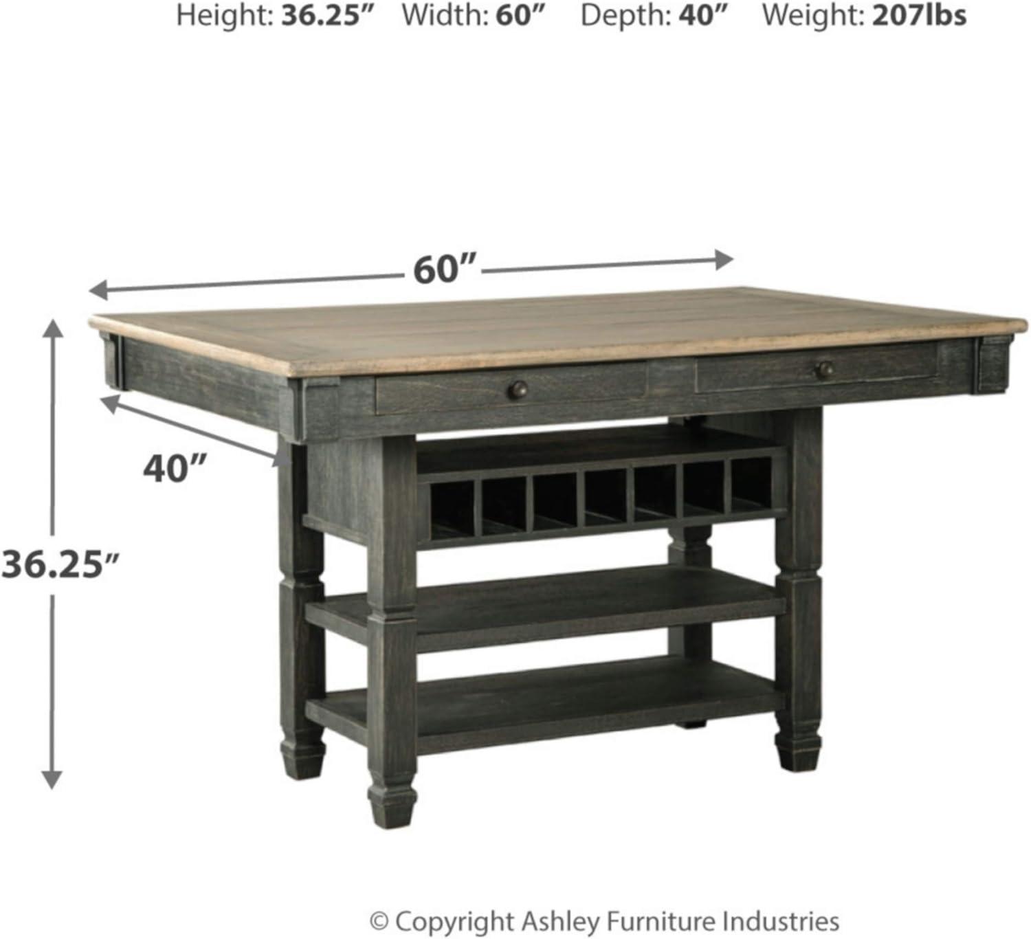 Signature Design by Ashley Tyler Creek Farmhouse 36″Counter Height Dining Table with Wine Rack, Amost Black