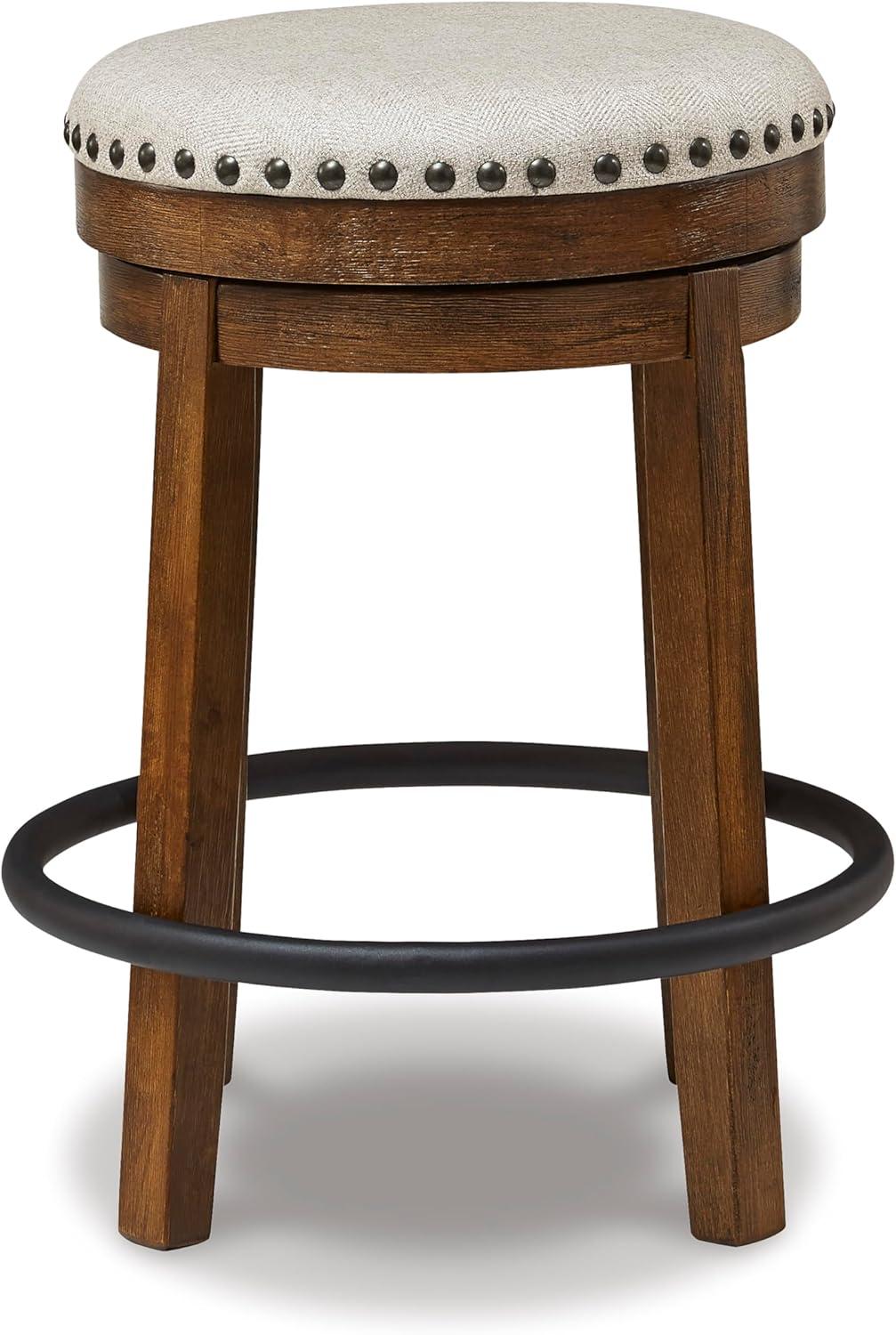 Signature Design by Ashley Valebeck 24″ Counter Height Upholstered Swivel Stool, White & Black(Dark Brown)