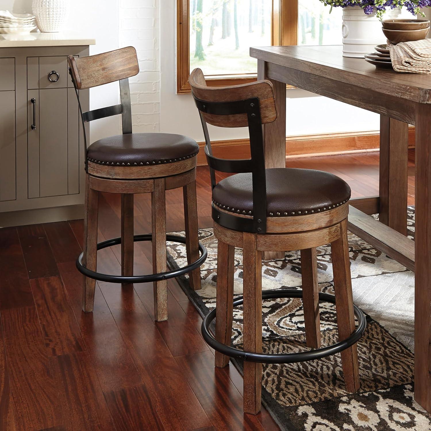 Signature Design by Ashley Valebeck 24″ Counter Height Upholstered Swivel Stool, White & Black(Light Brown)