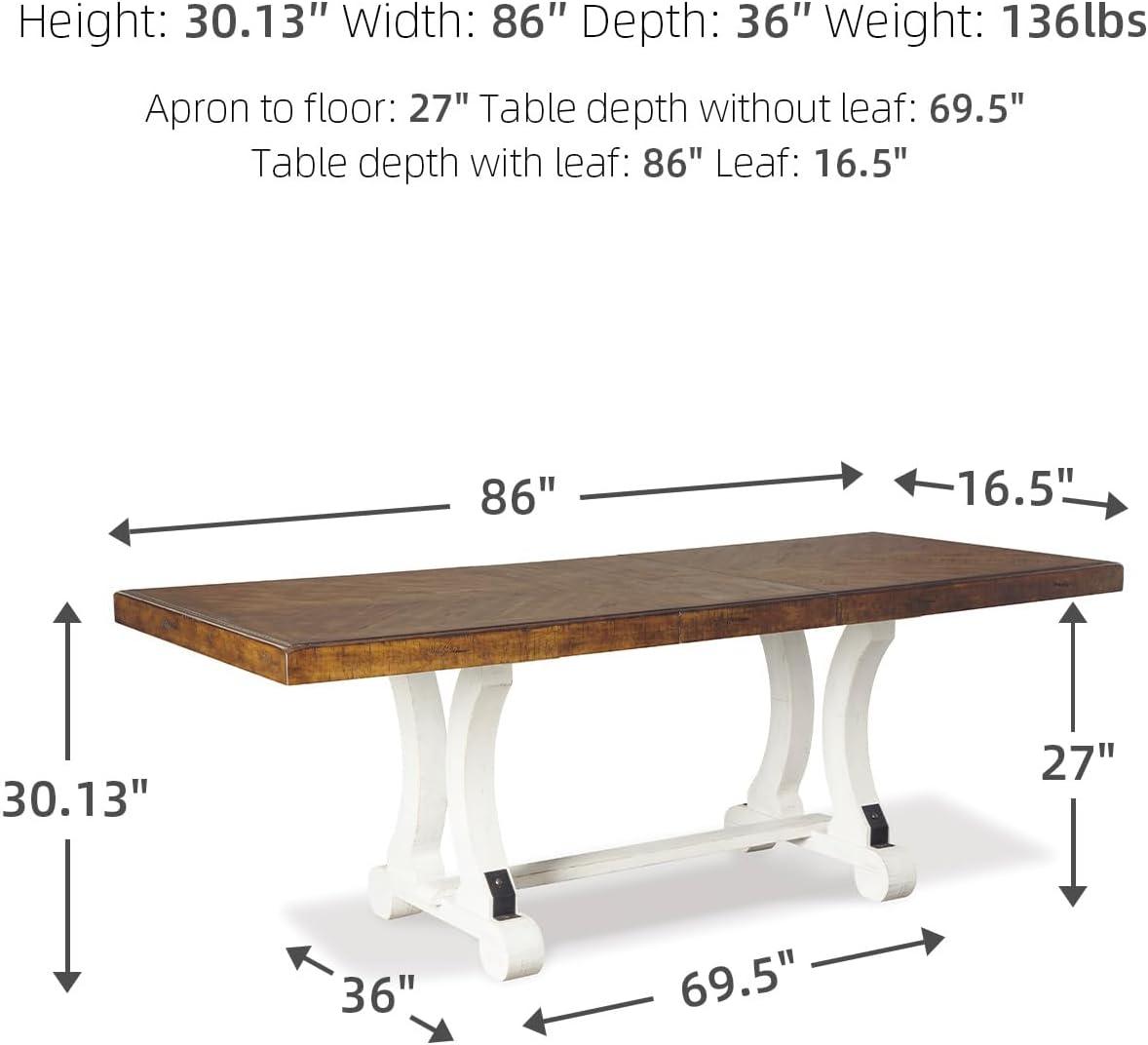 Signature Design by Ashley Valebeck Farmhouse Rectangular Extension Dining Table, Fits up to 8, White & Brown(Standard)