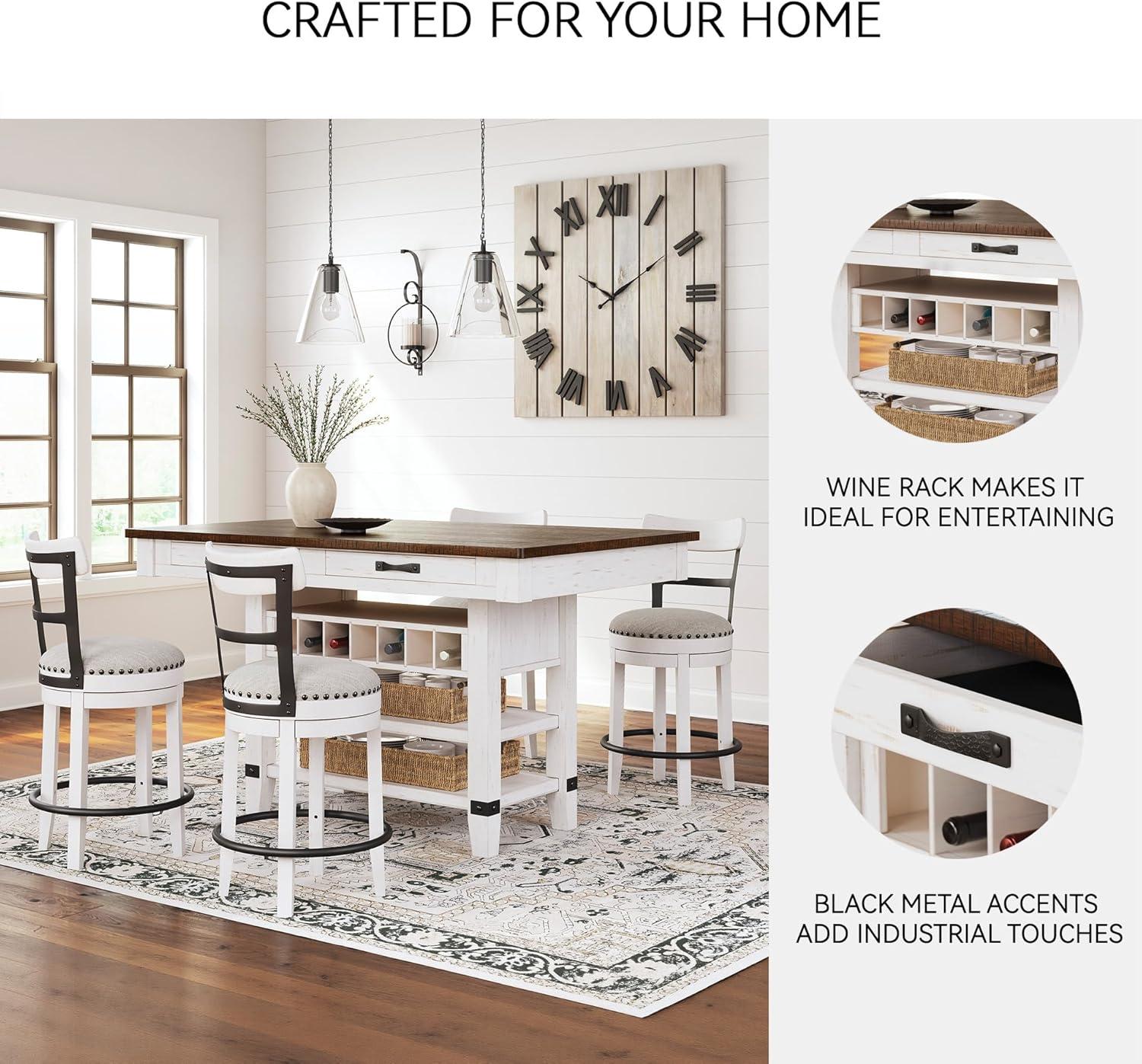 Signature Design by Ashley Valebeck Rustic Counter Height Dining Table with 4 Drawers, 2 Open Shelves and 7-bottle Wine Rack, White & Dark Brown