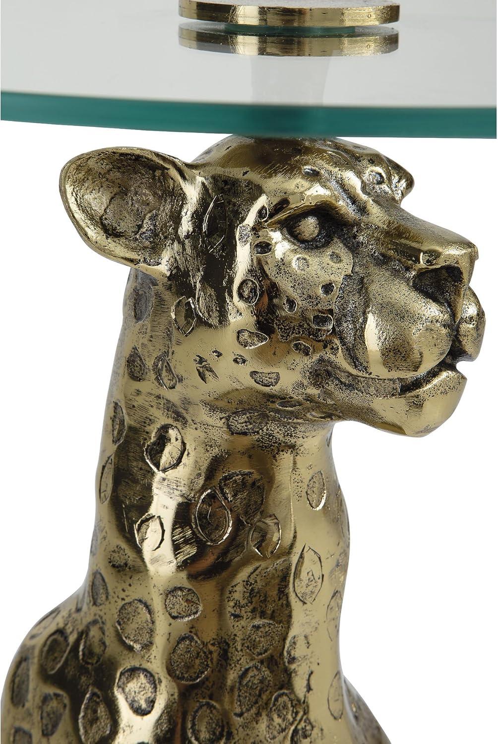 If big and bold is your vibe, you’ll go wild for this accent table. Its leopard base in an antiqued goldtone finish exudes old Hollywood appeal, adding a touch of opulence to everyday living. Radiating an aura of exquisite flair, this showstopping piece fills your home with elaborate elegance.