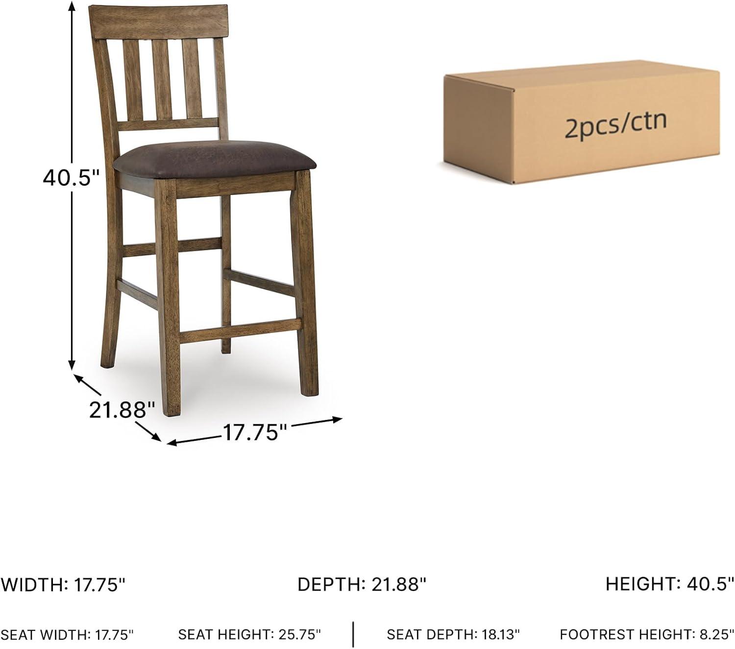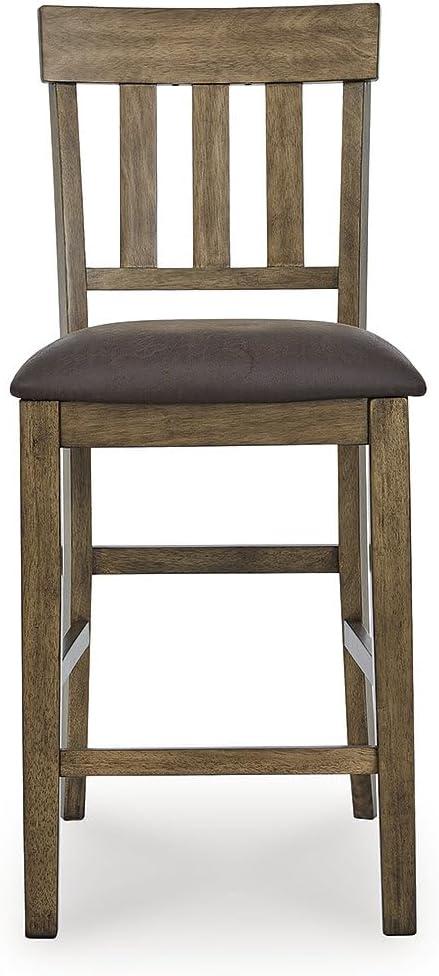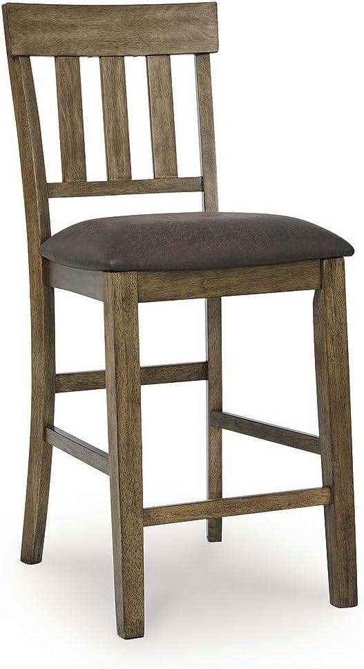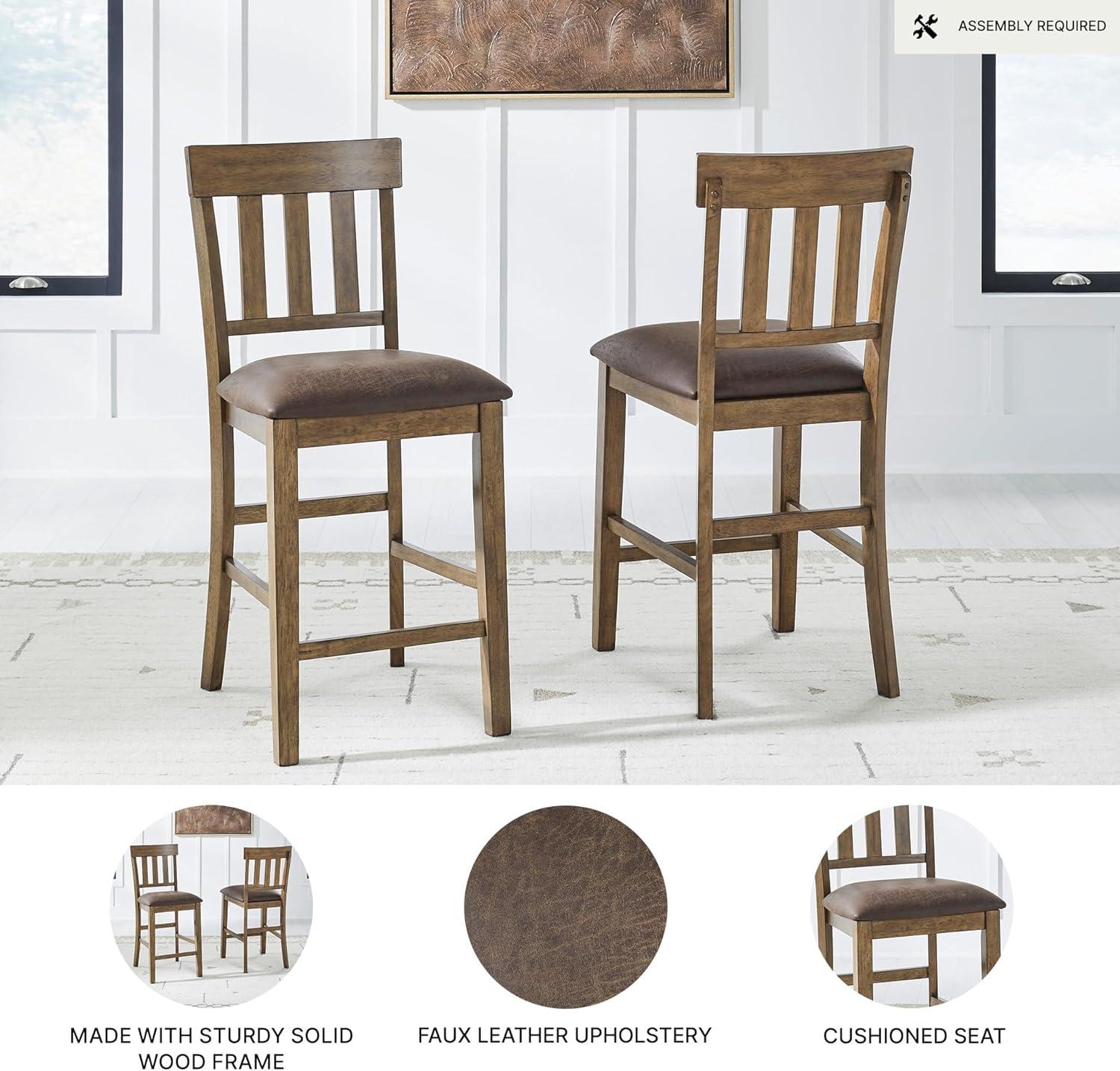 Signature Design by Ashley Vallister Casual Faux Leather 26″ Upholstered Counter Height Bar Stool, Set of 2, Dark Brown