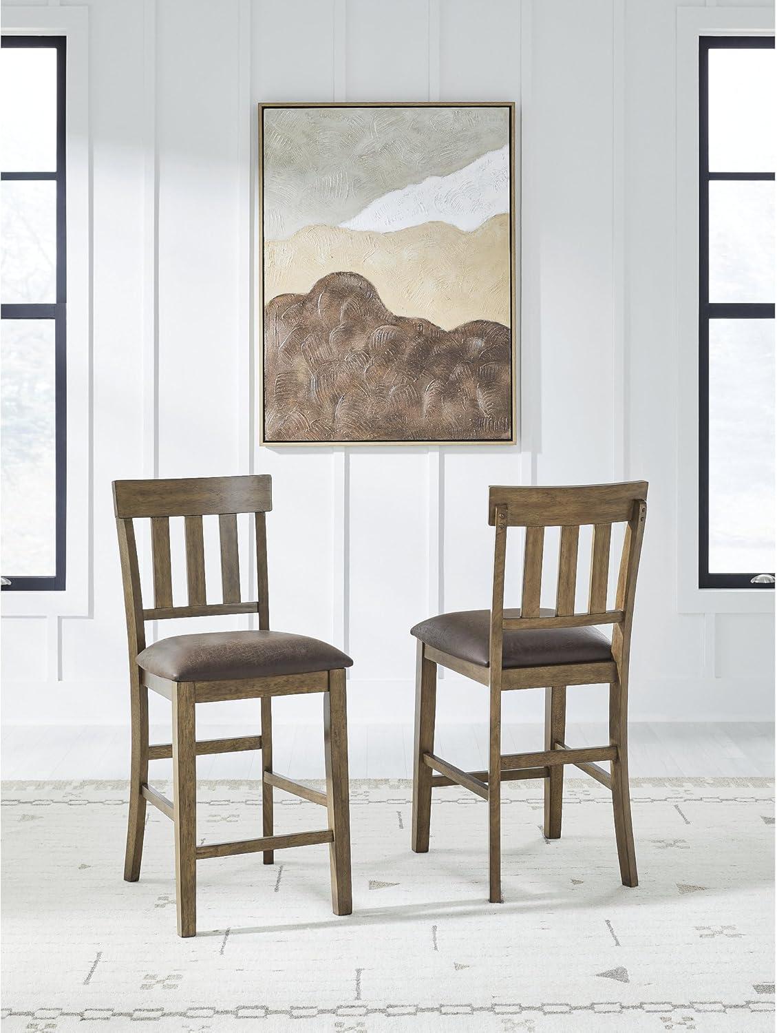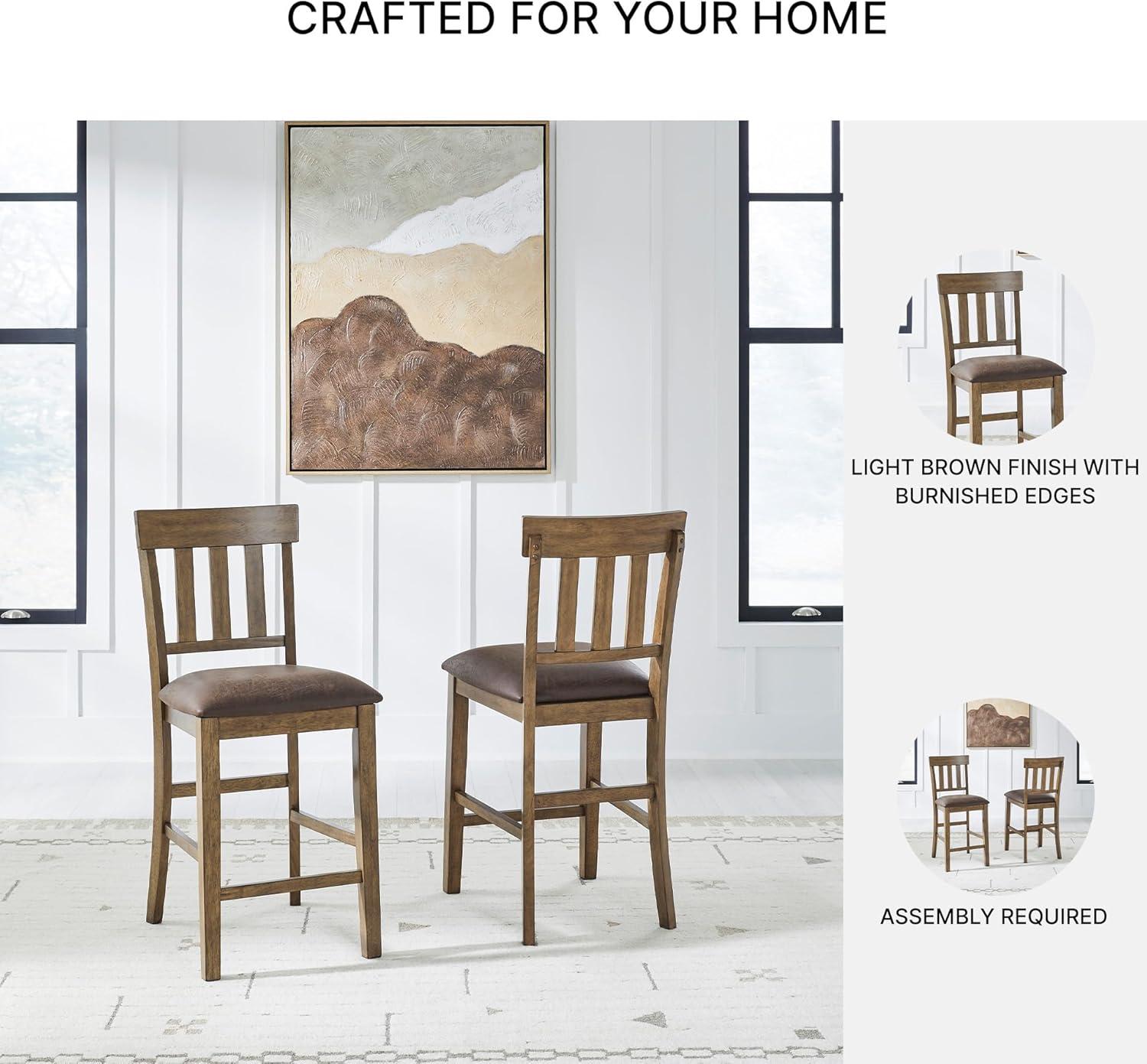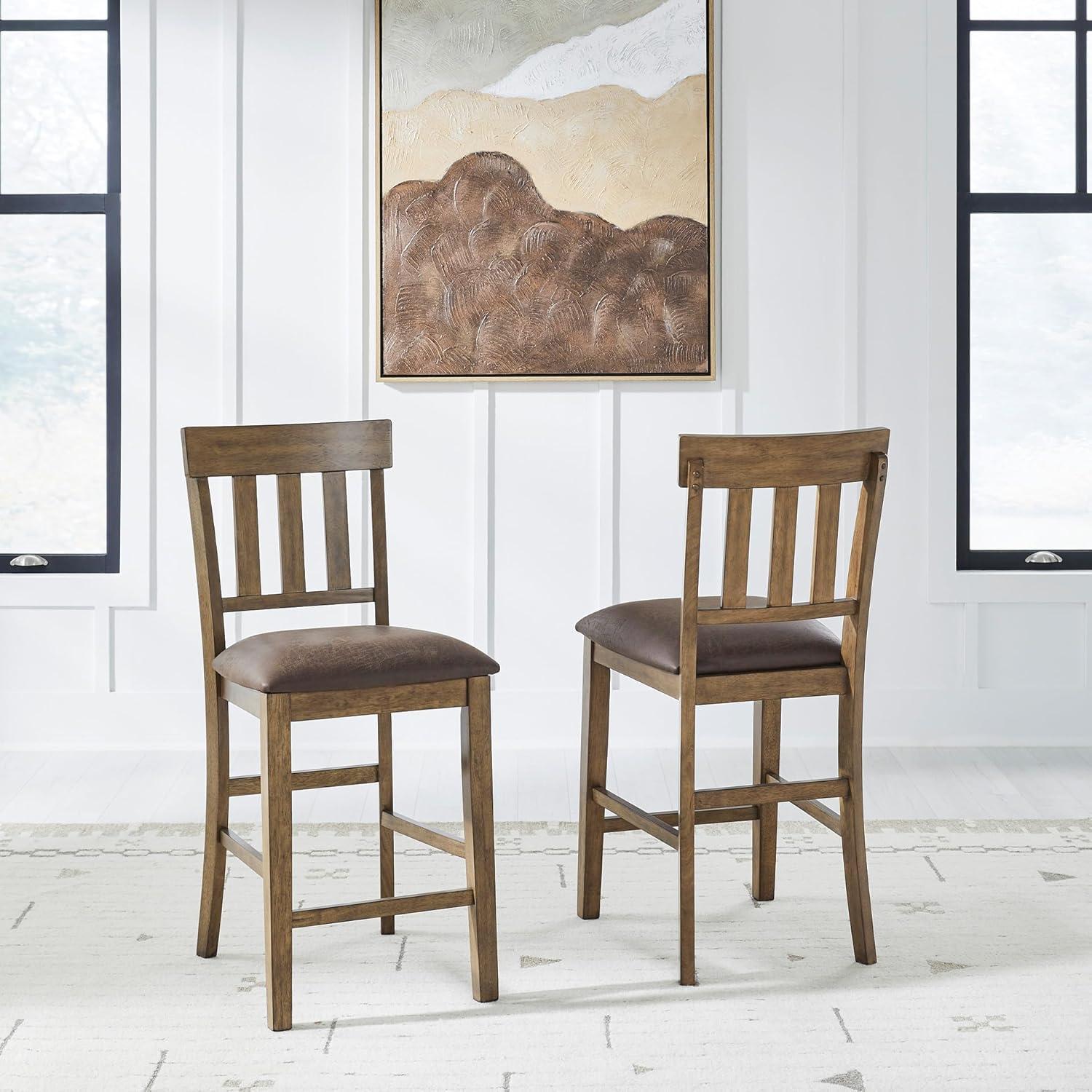 Signature Design by Ashley Vallister Casual Faux Leather 26″ Upholstered Counter Height Bar Stool, Set of 2, Dark Brown