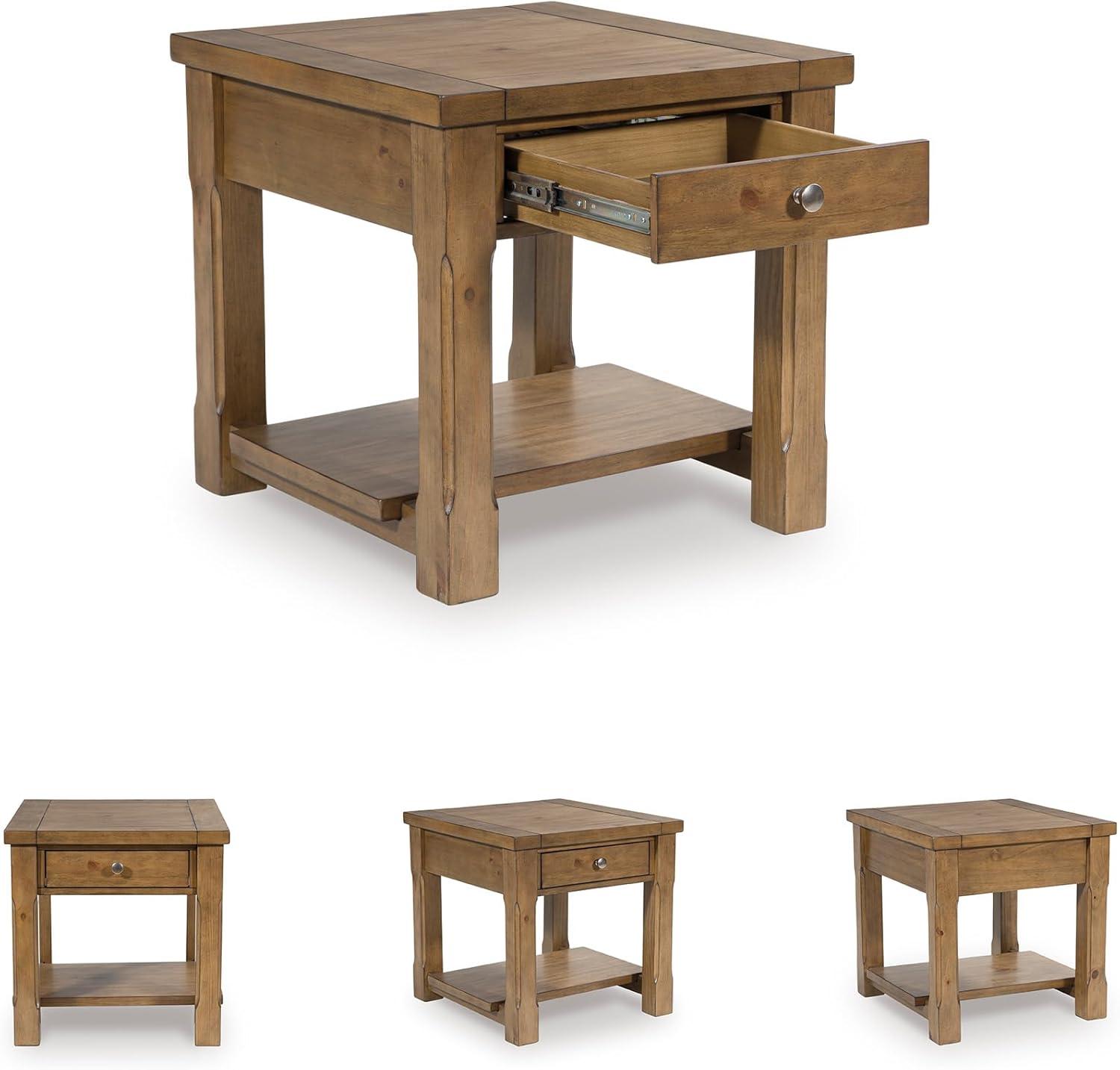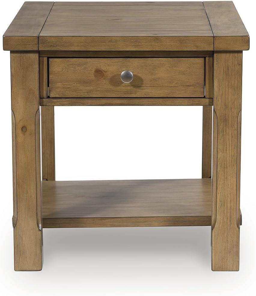 Signature Design by Ashley Vandenmore Casual 1-Drawer End Table with Bottom Shelf, Light Brown