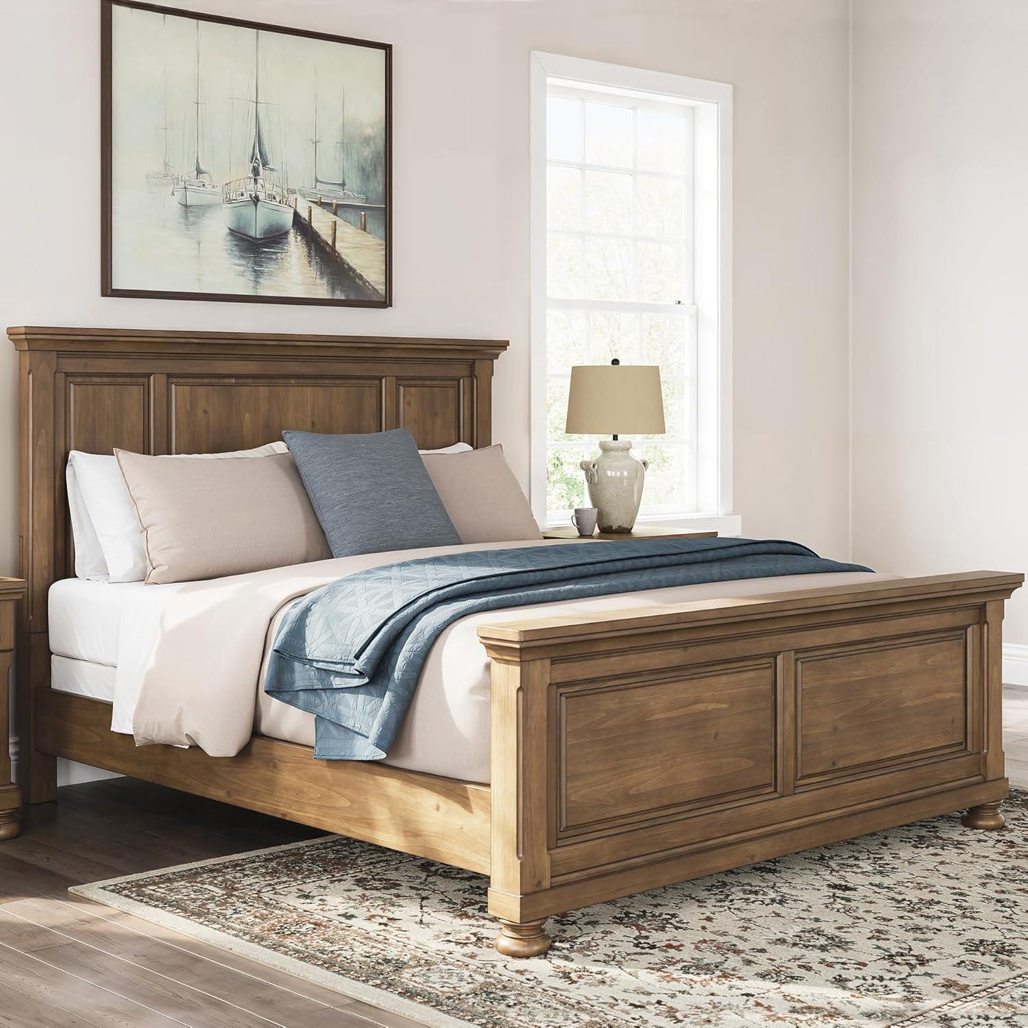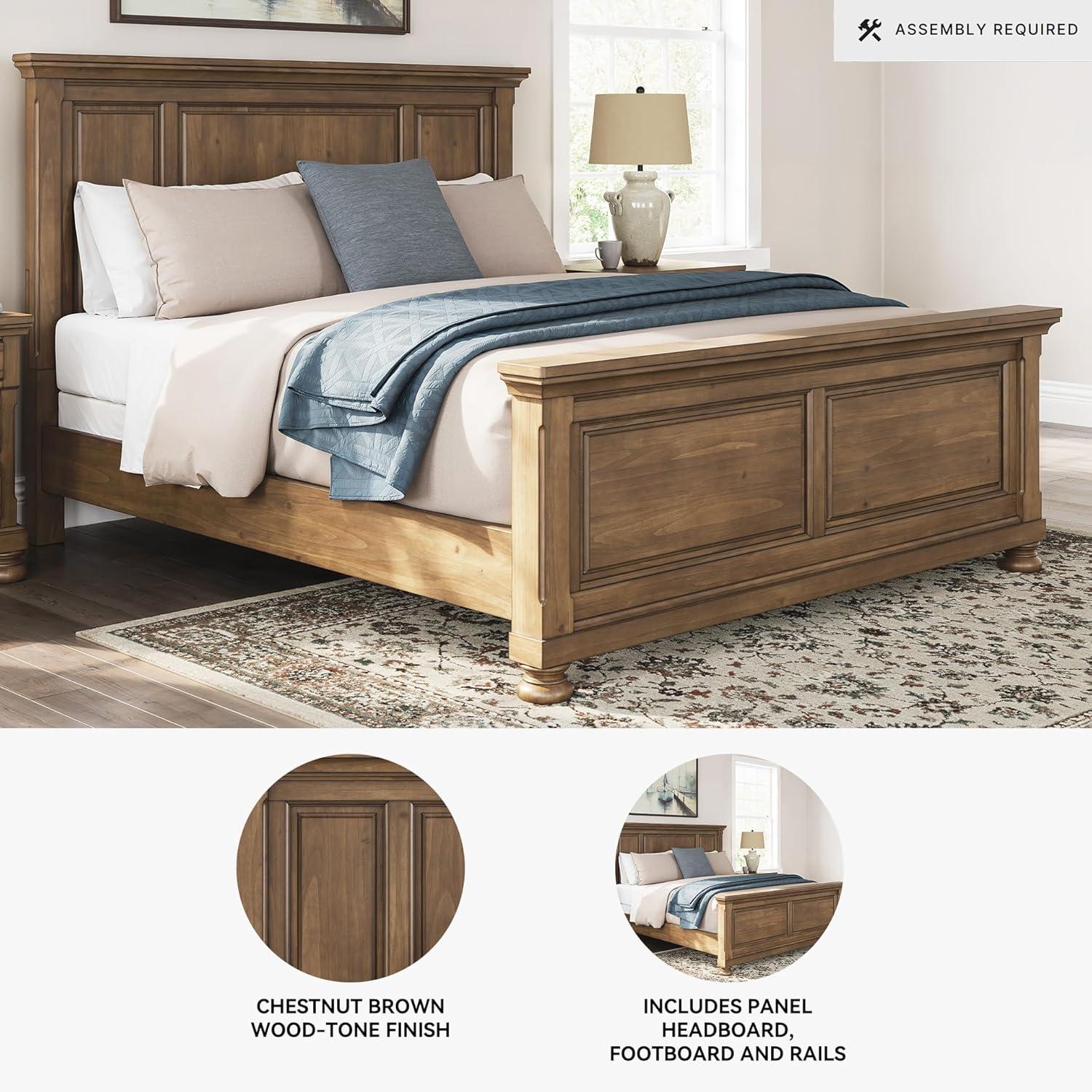 Signature Design by Ashley Vandenmore Traditional Panel Storage Bed, Foundation or Box Spring Not Needed, Queen, Dark Brown(California King Panel Bed)