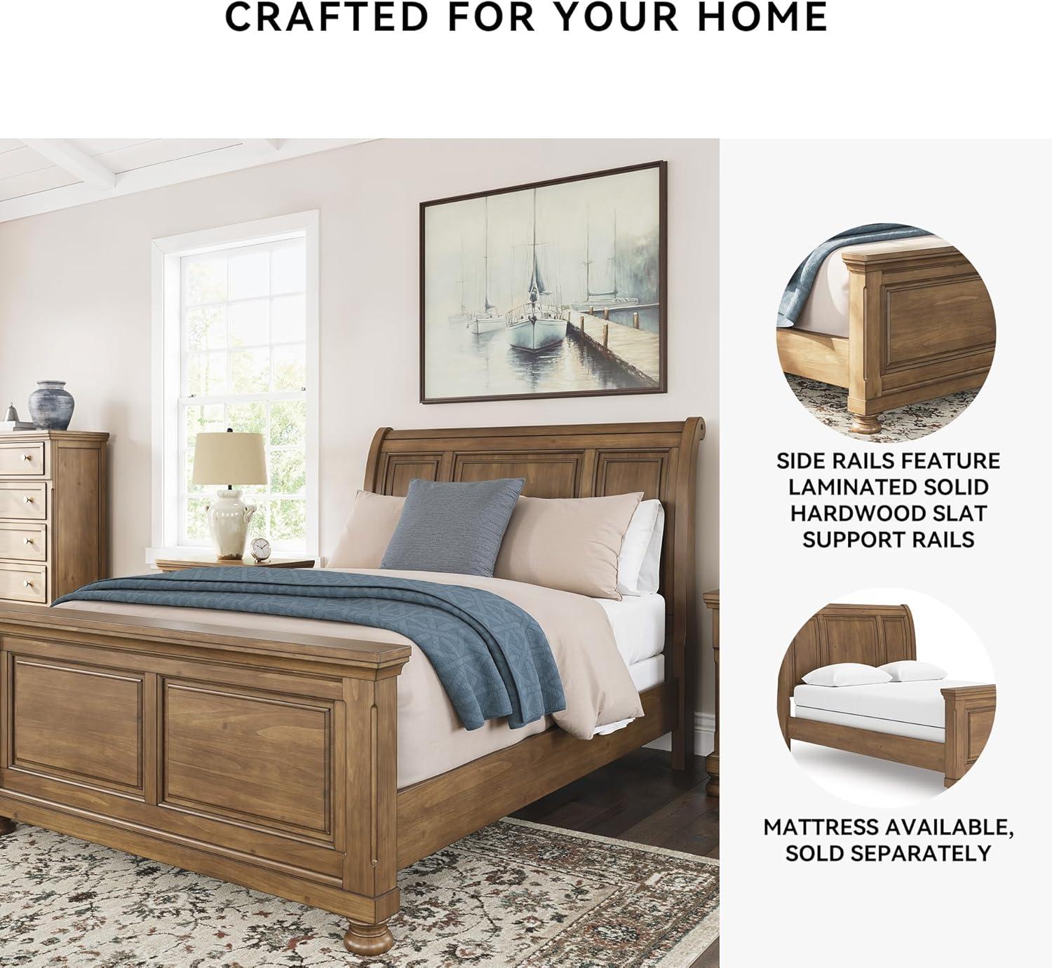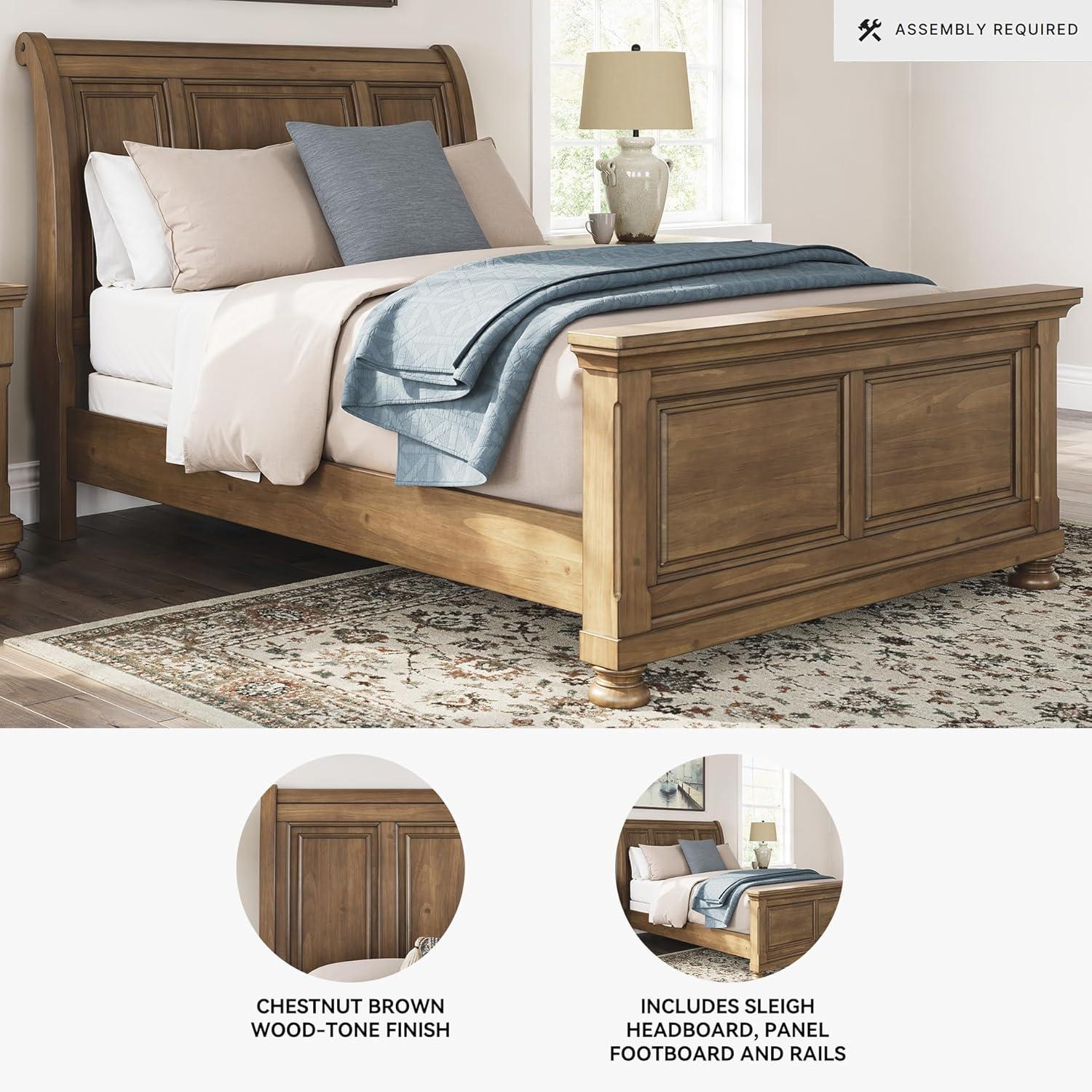 Signature Design by Ashley Vandenmore Traditional Panel Storage Bed, Foundation or Box Spring Not Needed, Queen, Dark Brown(Queen Sleigh Bed)