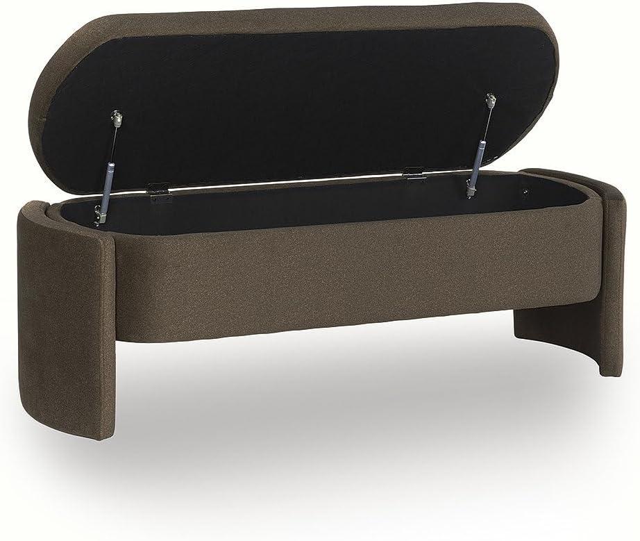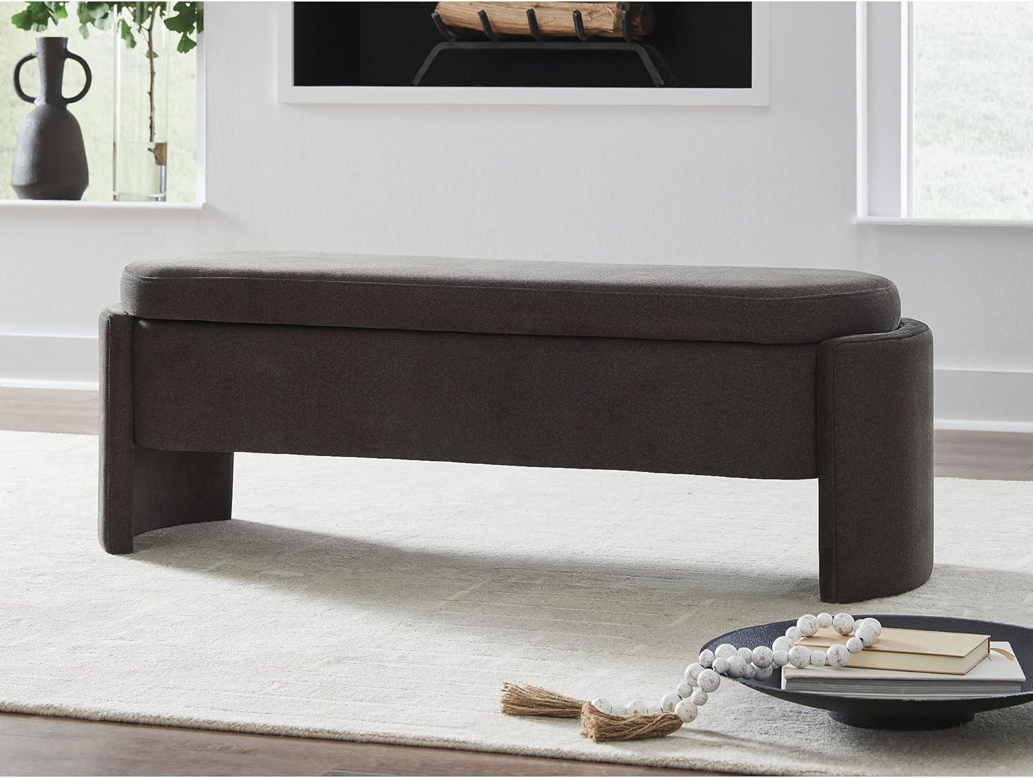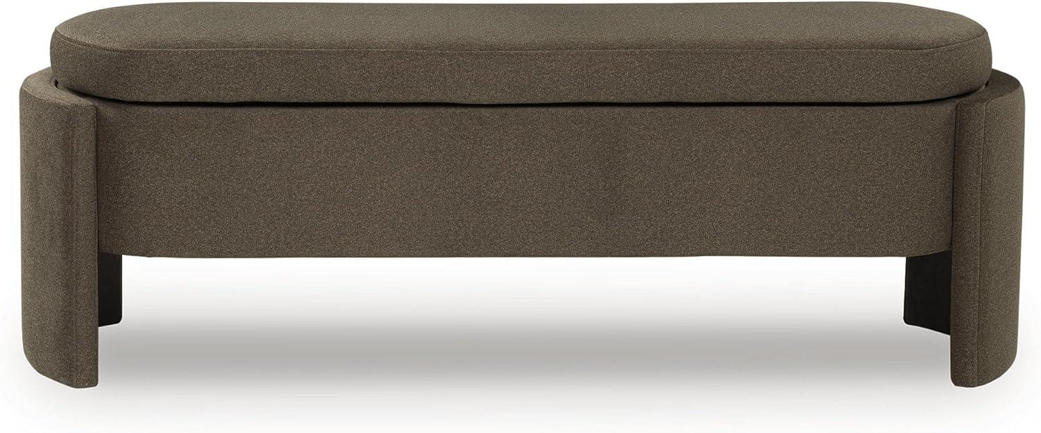 Signature Design by Ashley Vavuniya Upholstered Storage Bench with Hinged Seat and Hidden Compartment for Entryway or Bedroom Seating, Capsule Shape in Heathered Brown