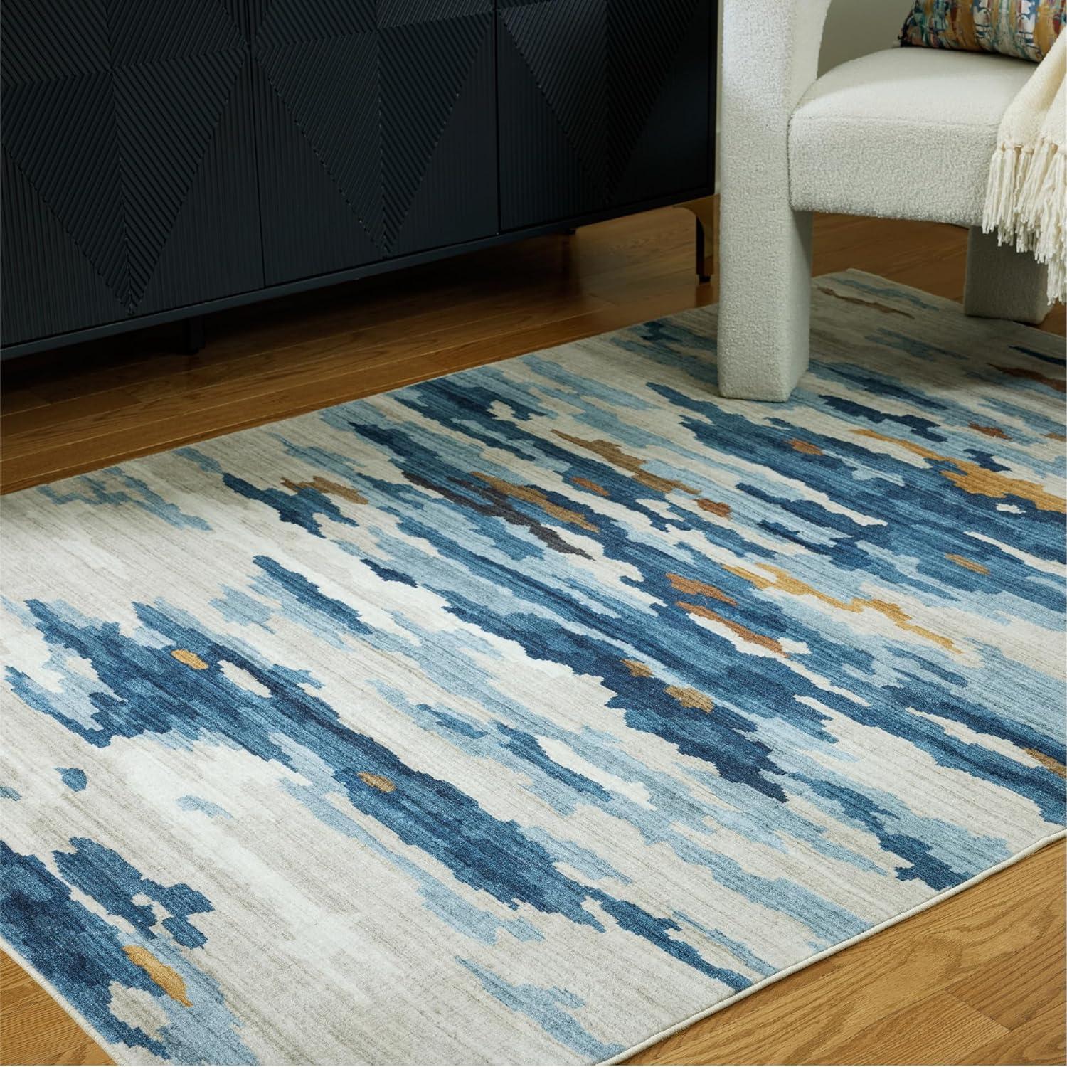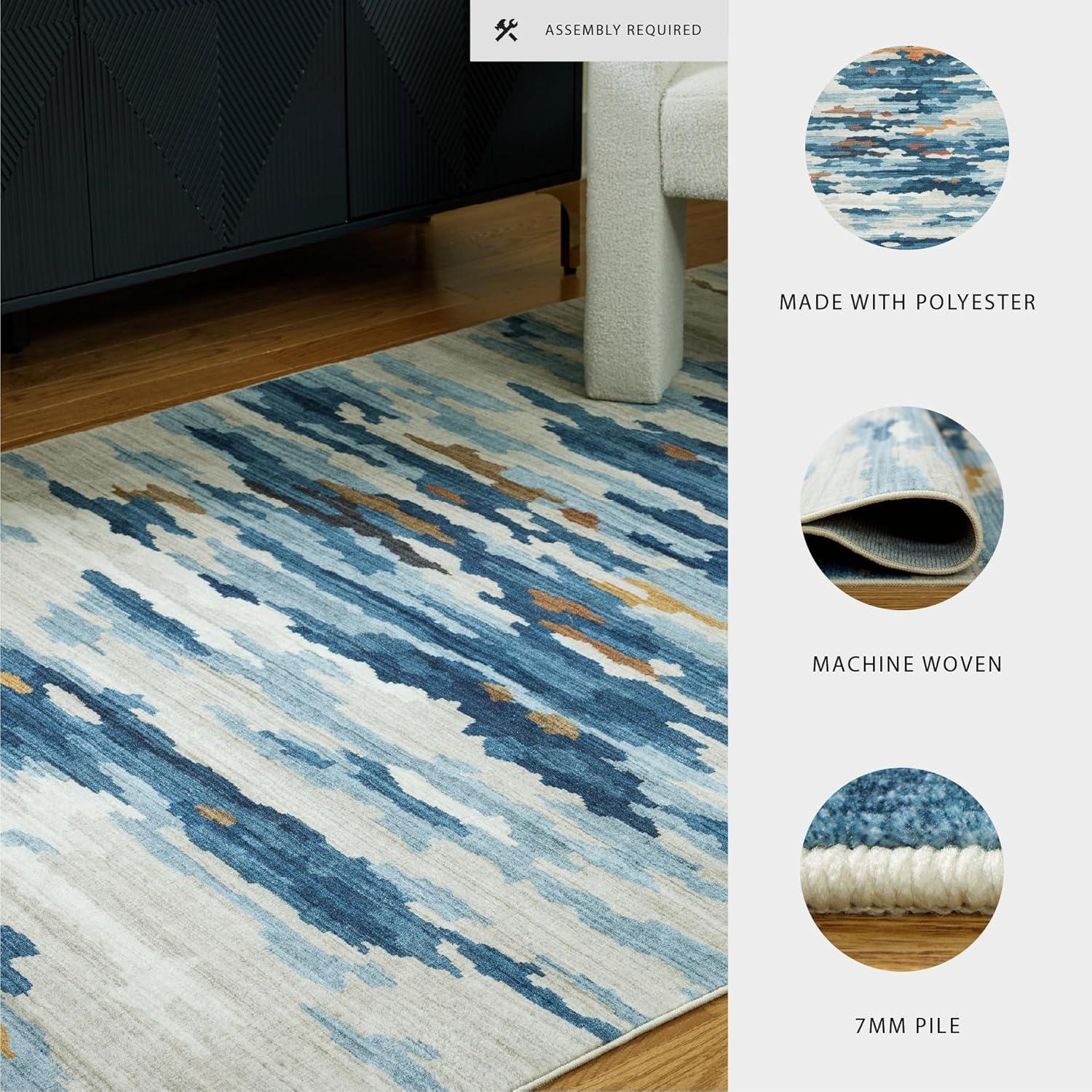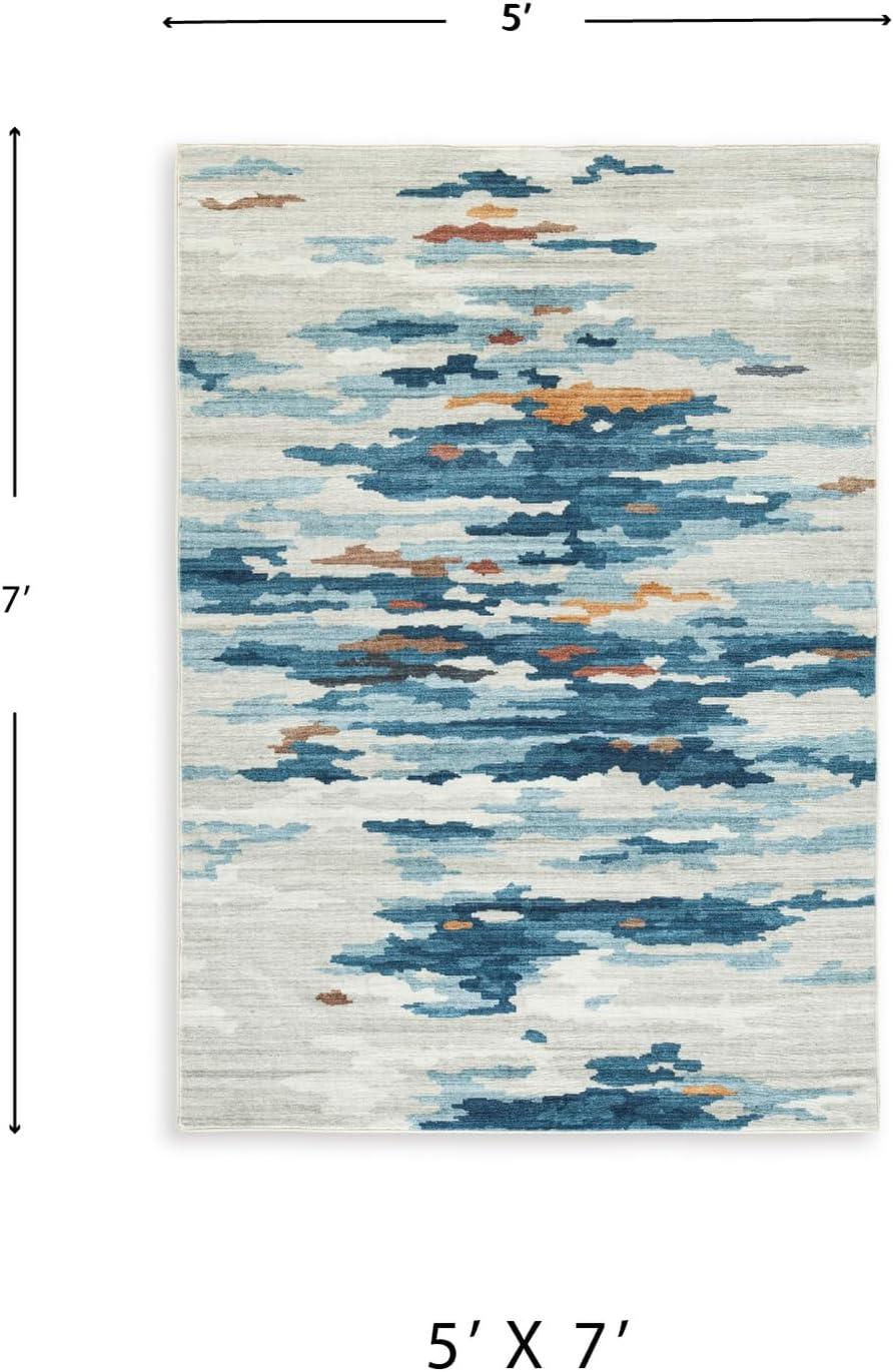 Signature Design by Ashley Vinlett Contemporary Indoor Non Slip Abstract 5 x 7 Washable Rug, Blue & Light Brown(5′ x 7′ (Rectangular))