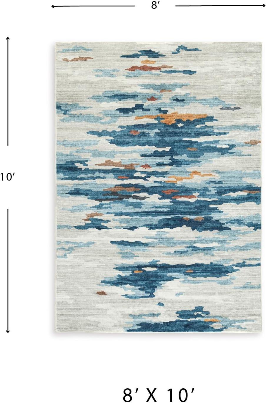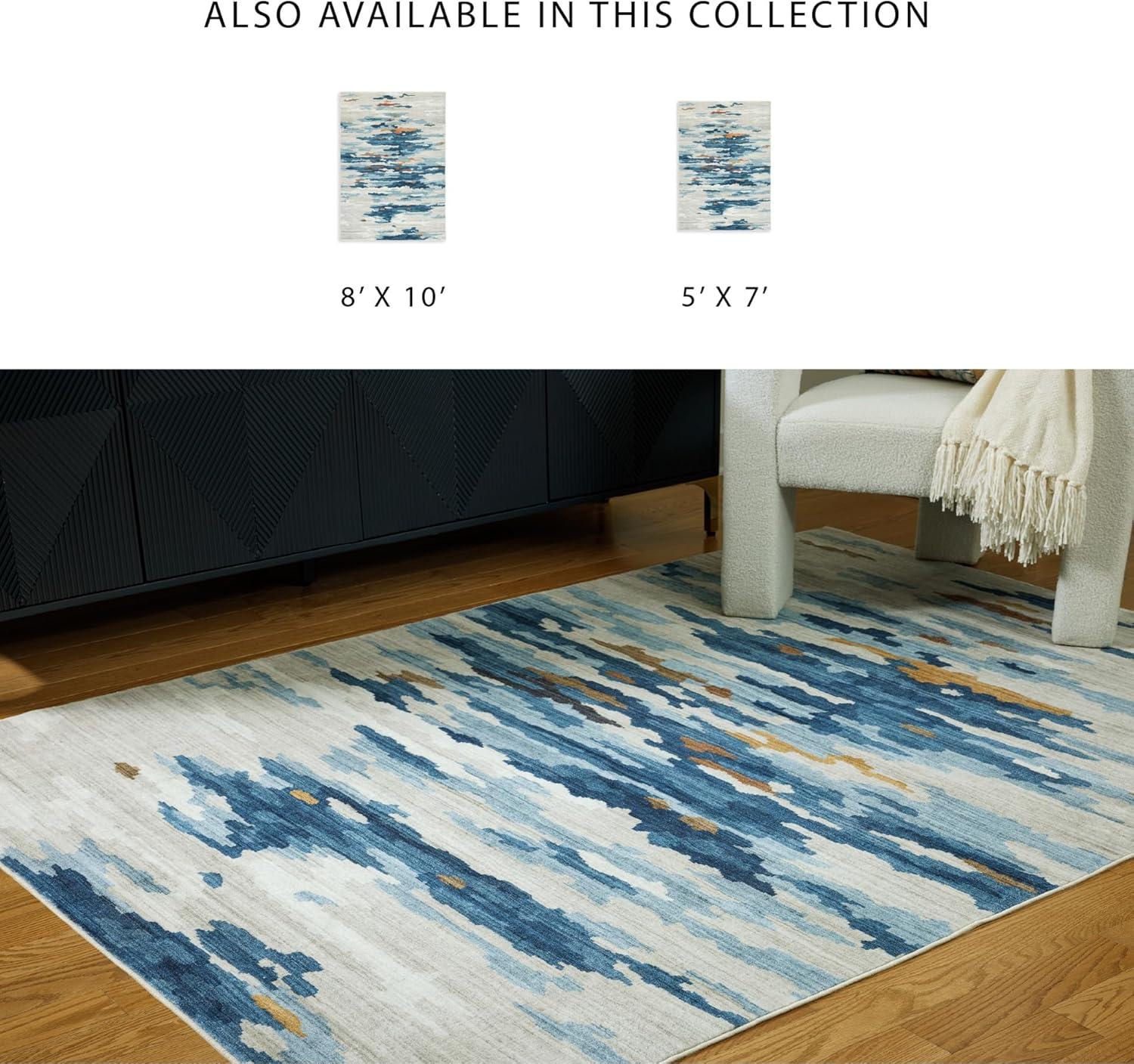 Signature Design by Ashley Vinlett Contemporary Indoor Non Slip Abstract 5 x 7 Washable Rug, Blue & Light Brown(8’1″ x 10’1″ (Rectangular))