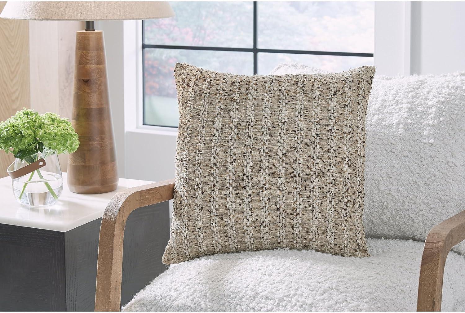 Signature Design by Ashley Vorlane Casual Indoor Striped 22 x 22 Inches Pillow with Zipper Closure, Light Brown & White