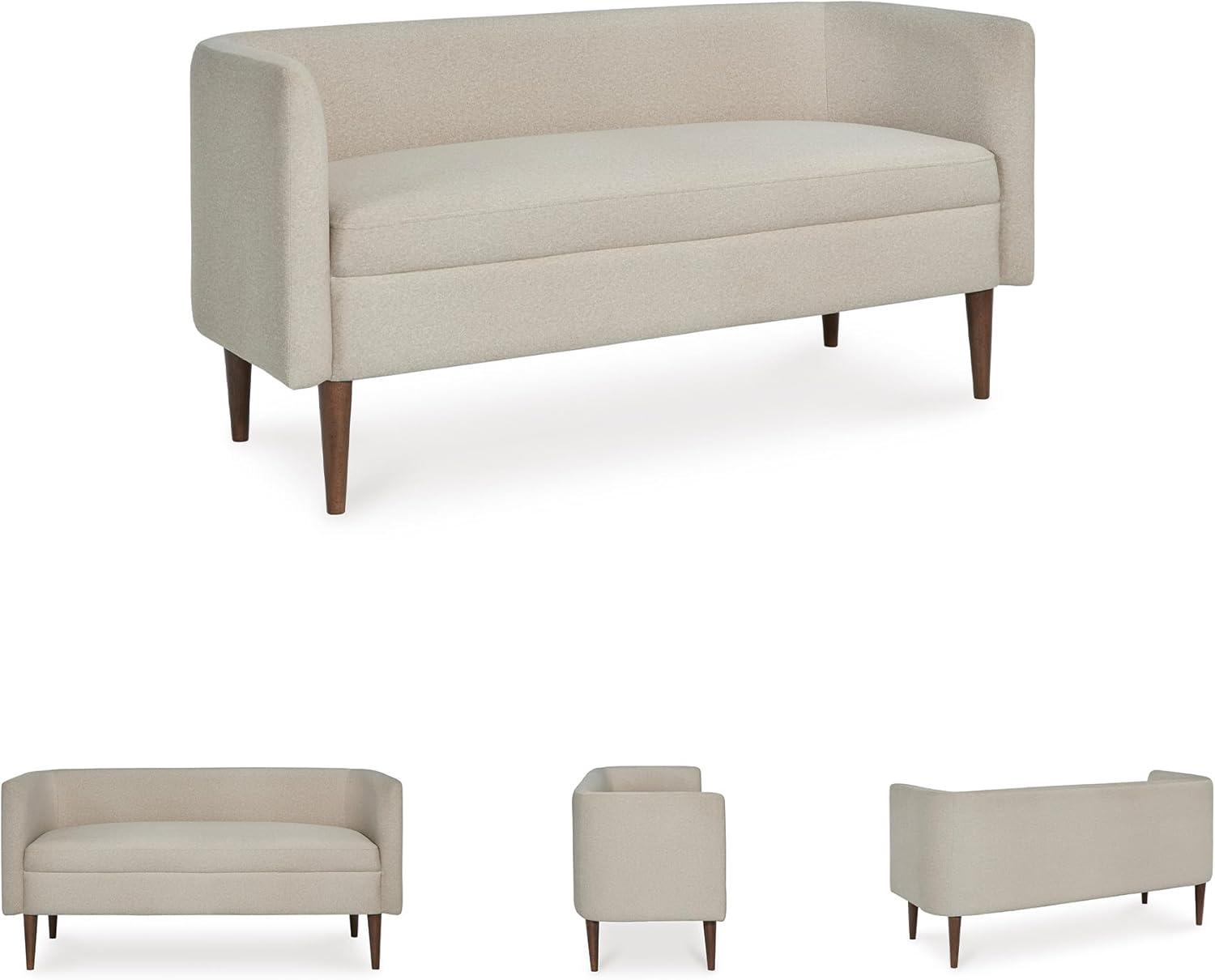 BEAUTIFULLY CRAFTED: Made with polyester upholstery. Tapered wood legs with brown finish. Attached seat cushion. Curved backrest for support