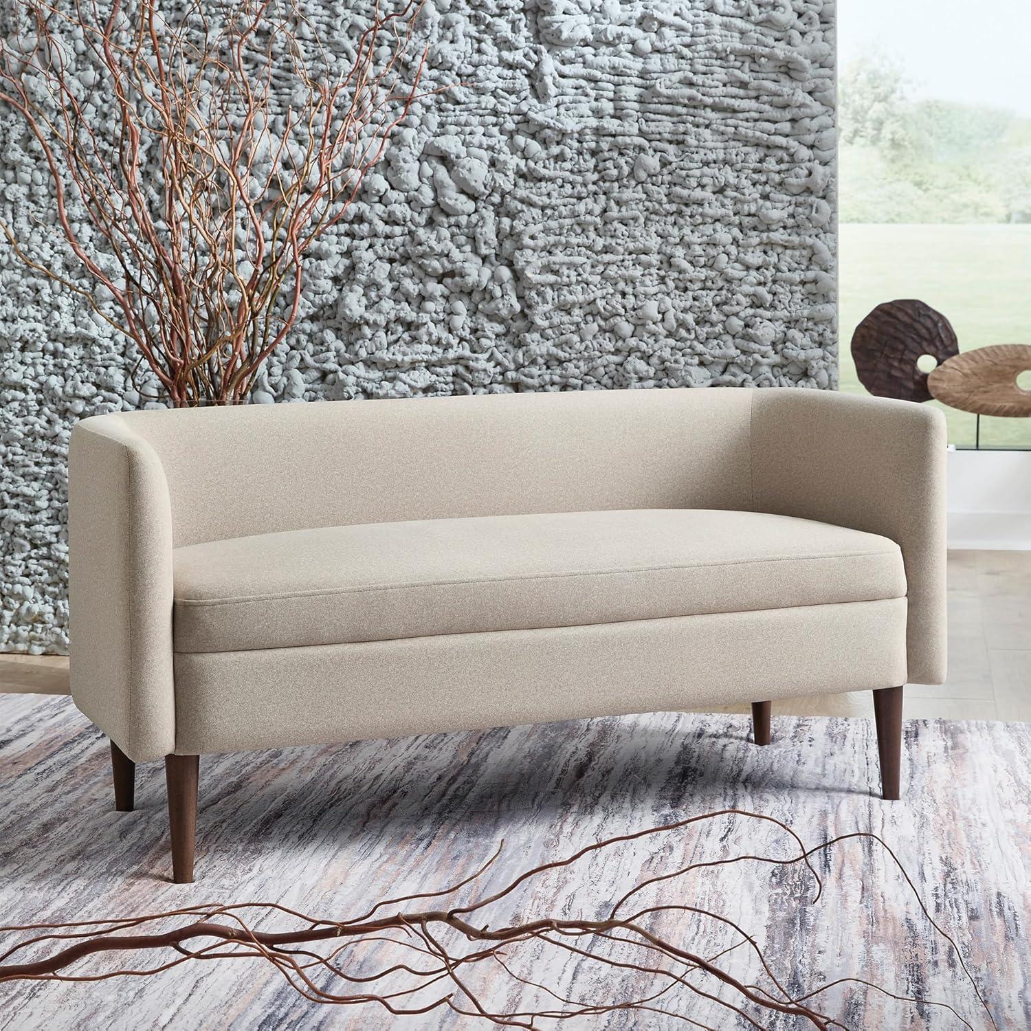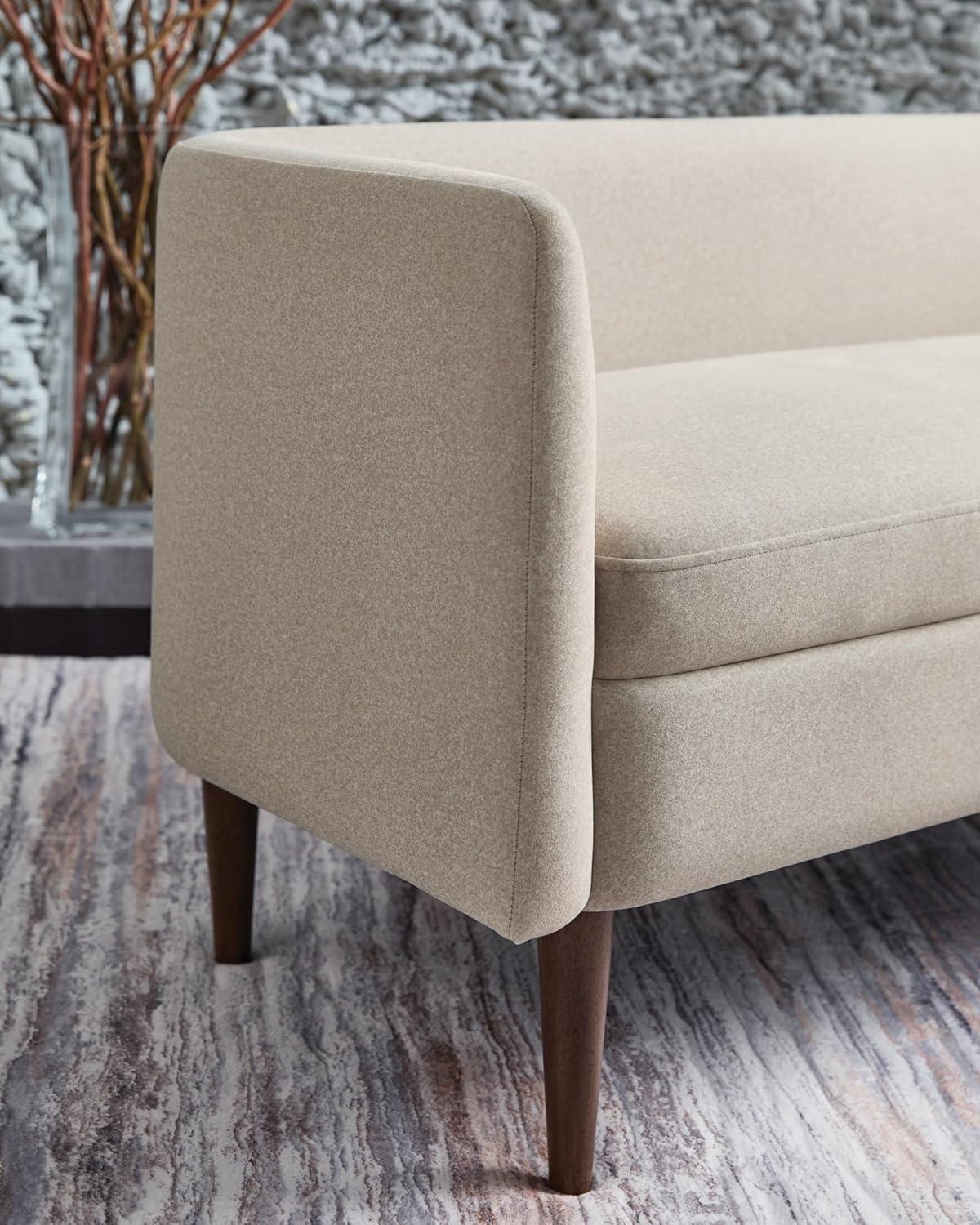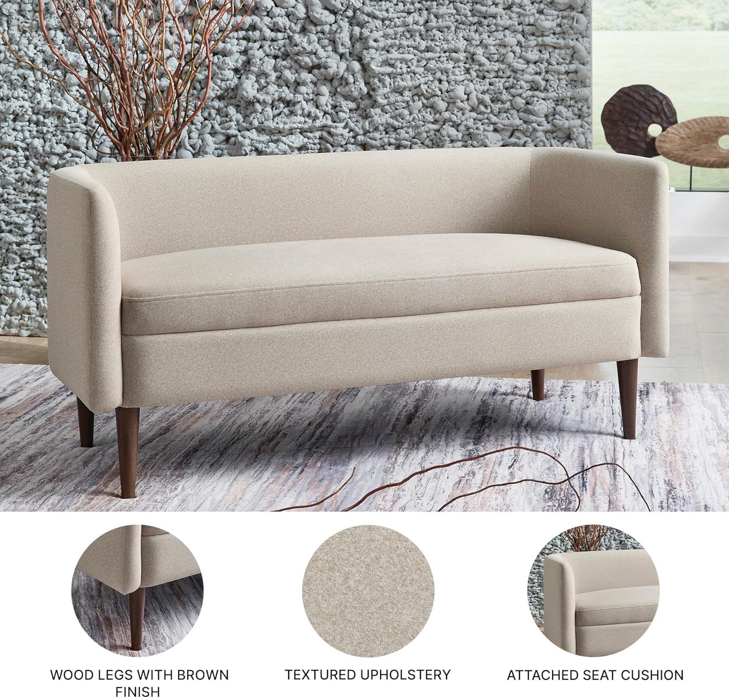 Signature Design by Ashley Wainner Casual Contemporary Accent Bench, Curved Backrest, Brown Tapered Legs, Fabric, 52.13″ W x 21.25″ D x 24.5″ H, Beige