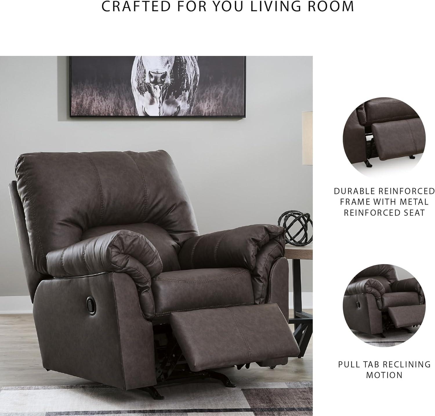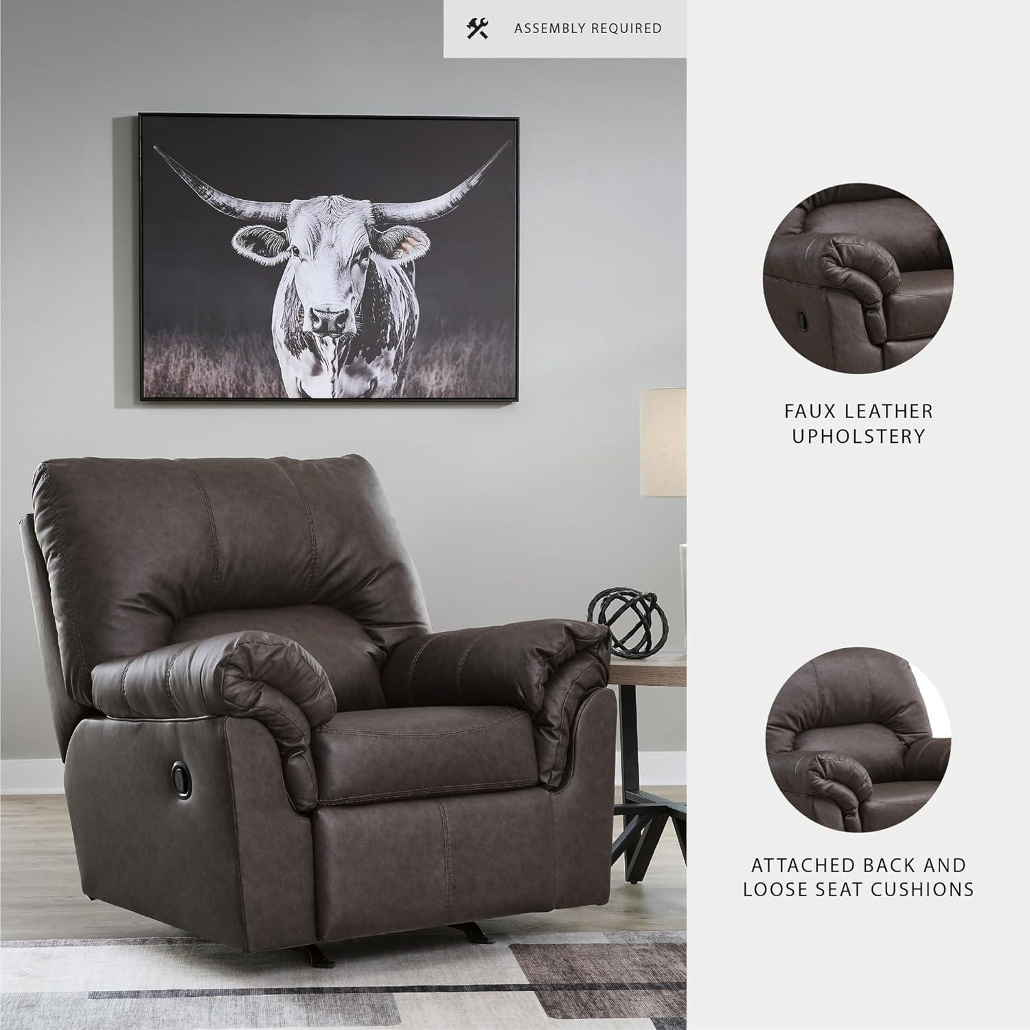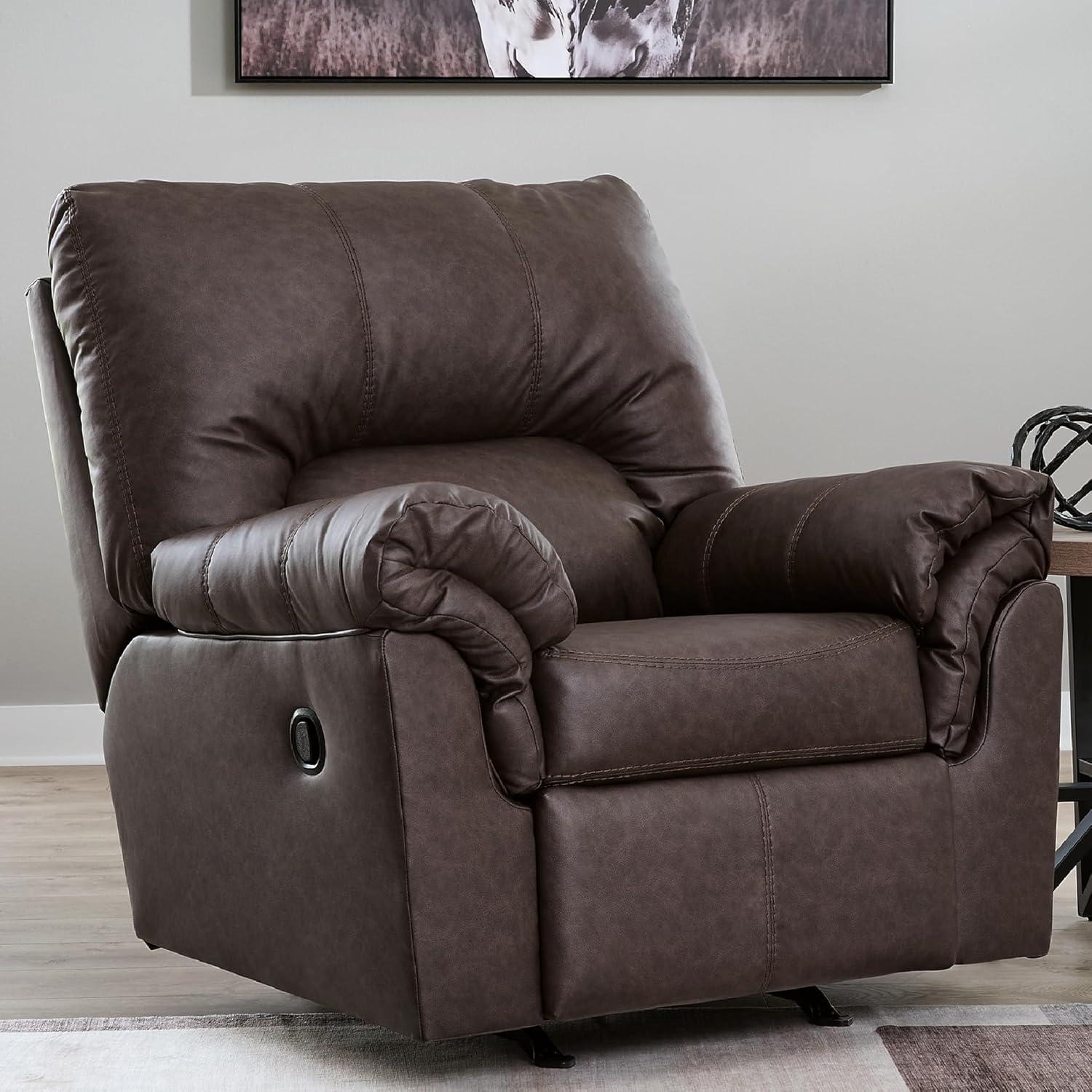 Signature Design by Ashley Walker Point Contemporary Faux Leather Rocker Recliner with Arm Rest, Dark Brown