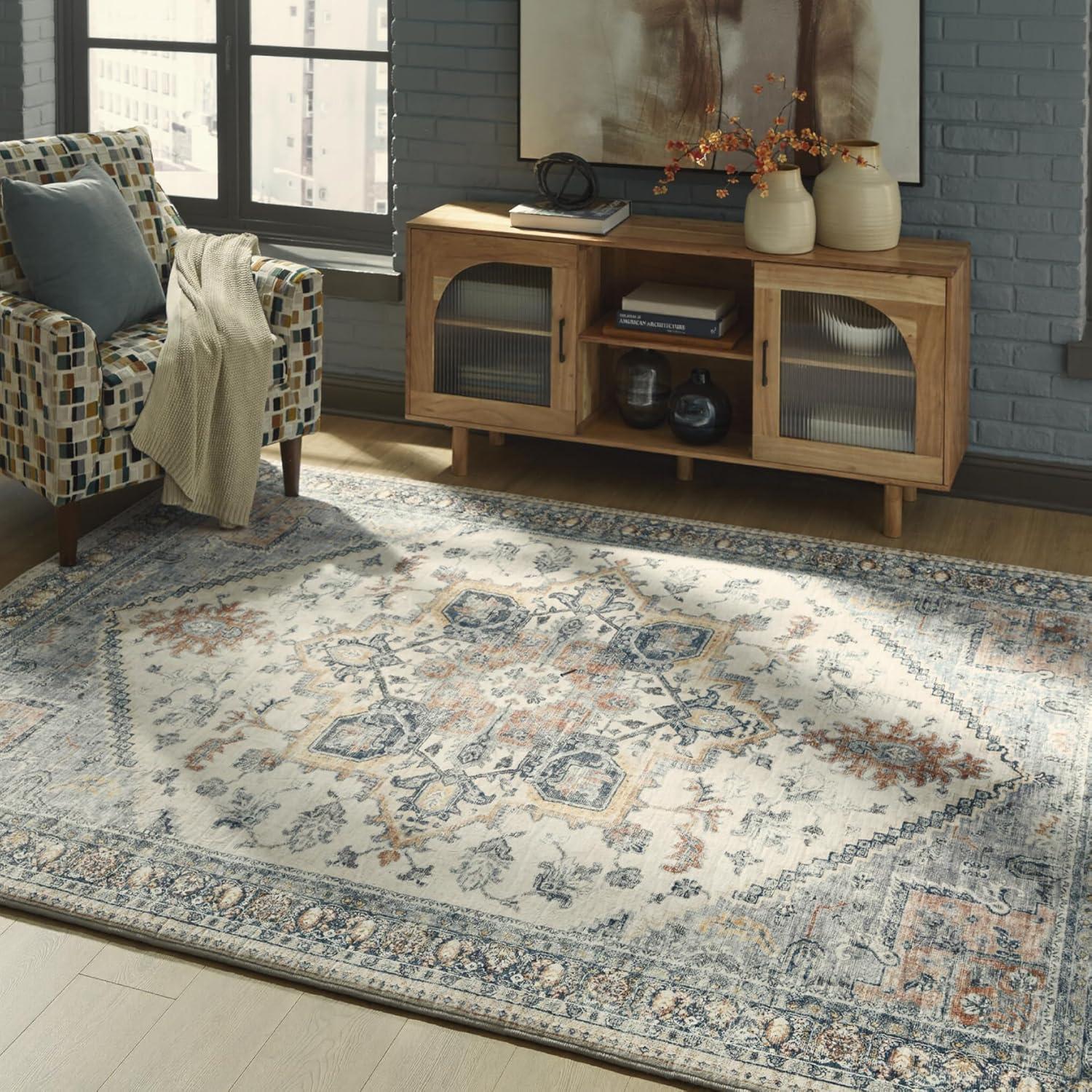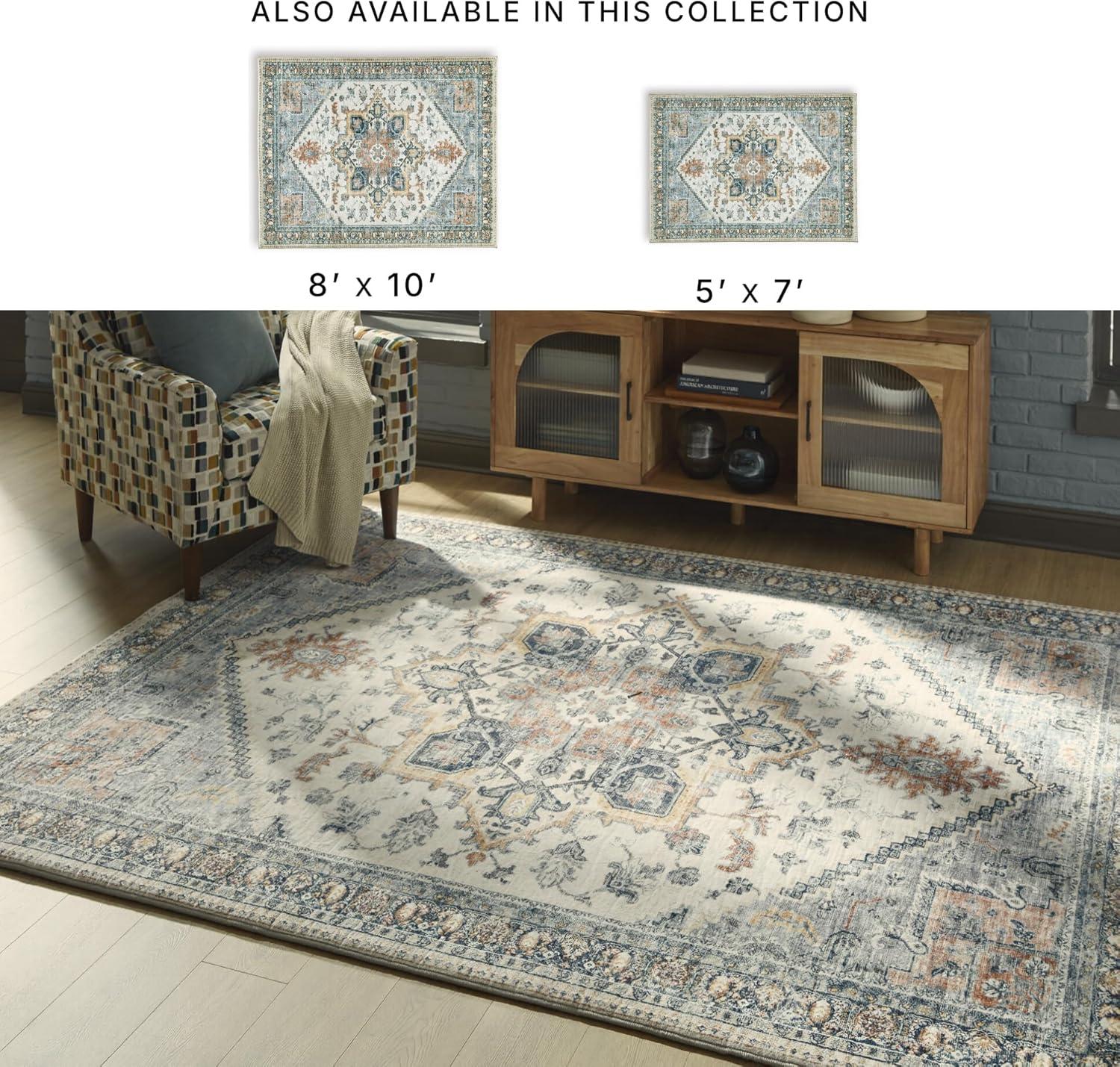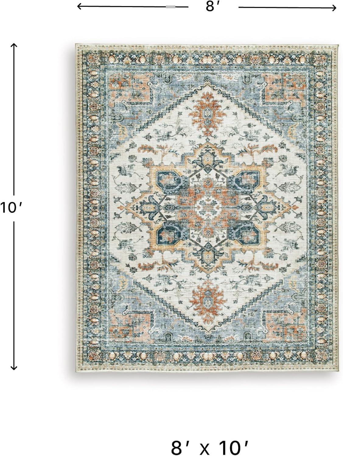 Signature Design by Ashley Wallney Large Traditional Rug with Memory Foam Pad, Machine Woven, Faux Fur Fabric, 90.5″ W x 114″ D x 0.88″ H, Multicolored(7’7″ x 9’6″ (Rectangular))