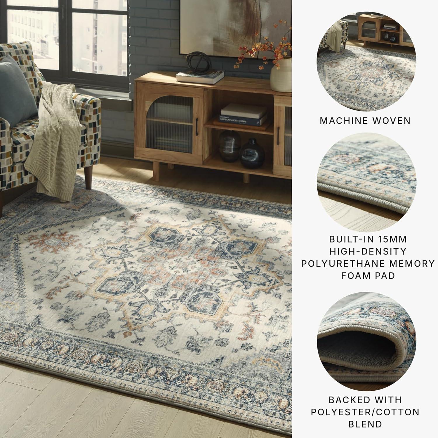 LARGE MEMORY FOAM RUG: The classic medallion design on this rug adds timeless elegance with bold shades that suit many spaces. Super-soft faux fur pairs with a built-in memory foam pad to deliver cushioned comfort and long-lasting appeal
