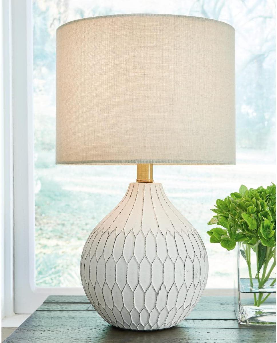Signature Design by Ashley Wardmont 18″ Modern Dimensional Design Ceramic Table Lamp, White(White)