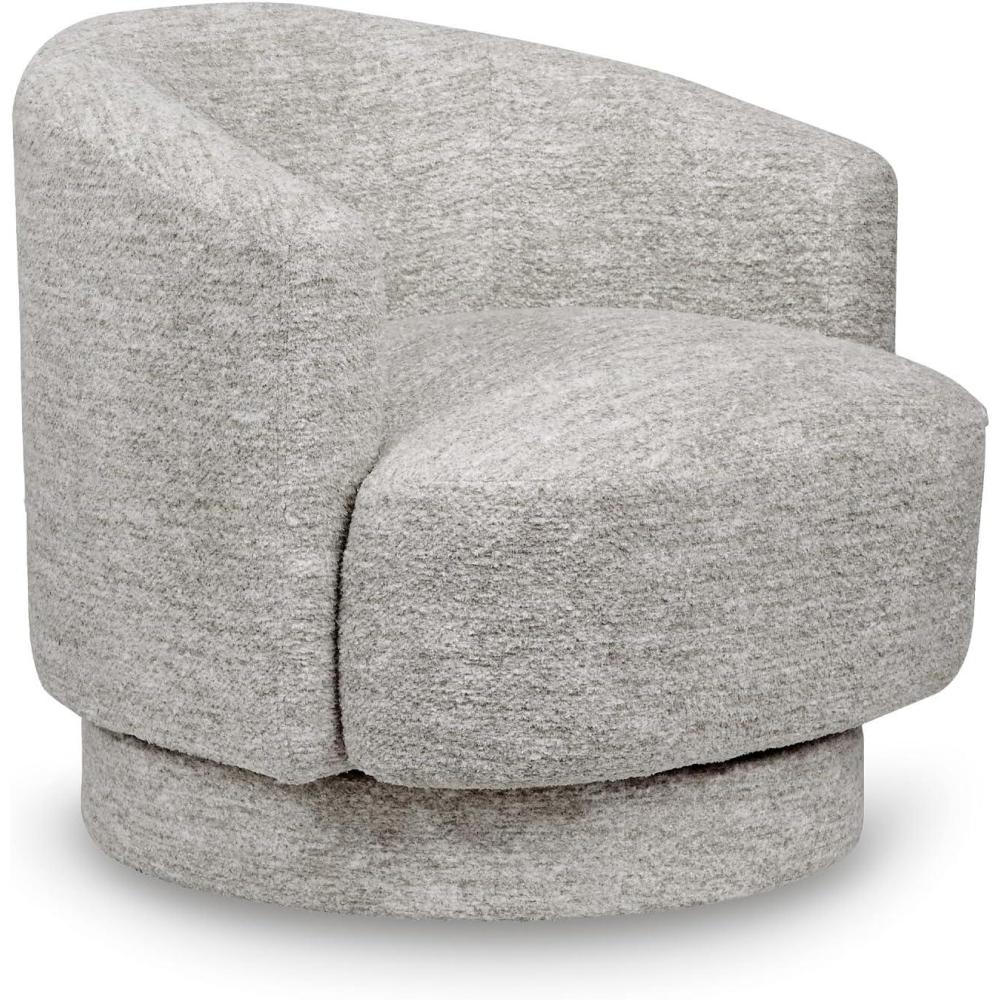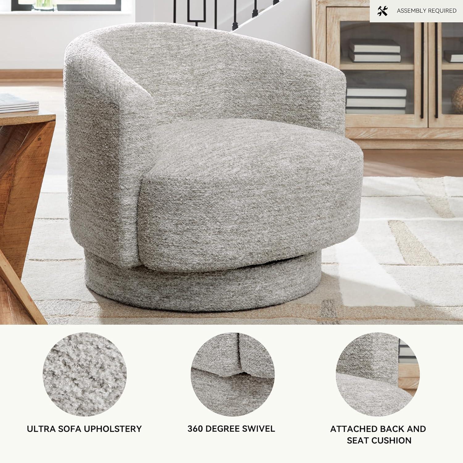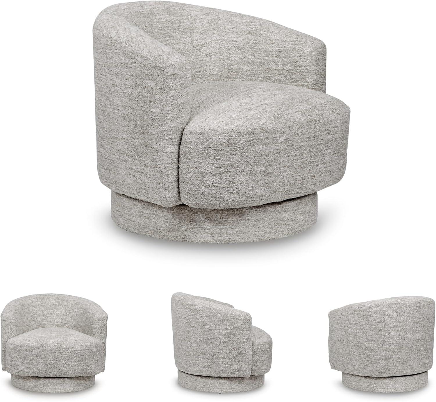 Relaxation meets refinement in this accent chair. With an ultra-soft fabric in a crisp, light neutral, it invites you to curl up in comfort. A 360-degree swivel provides added versatility. Drape a throw blanket over the back, or add an accent pillow for a pop of color—with this chair, the possibilities for cozy-contemporary style are endless.