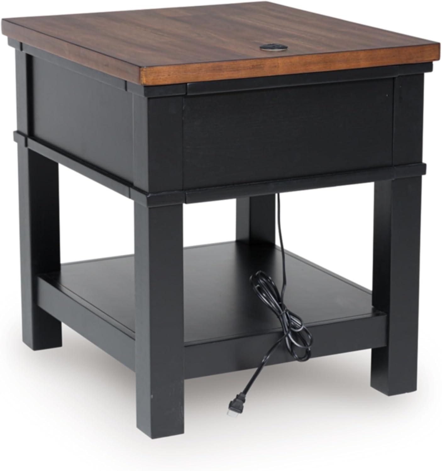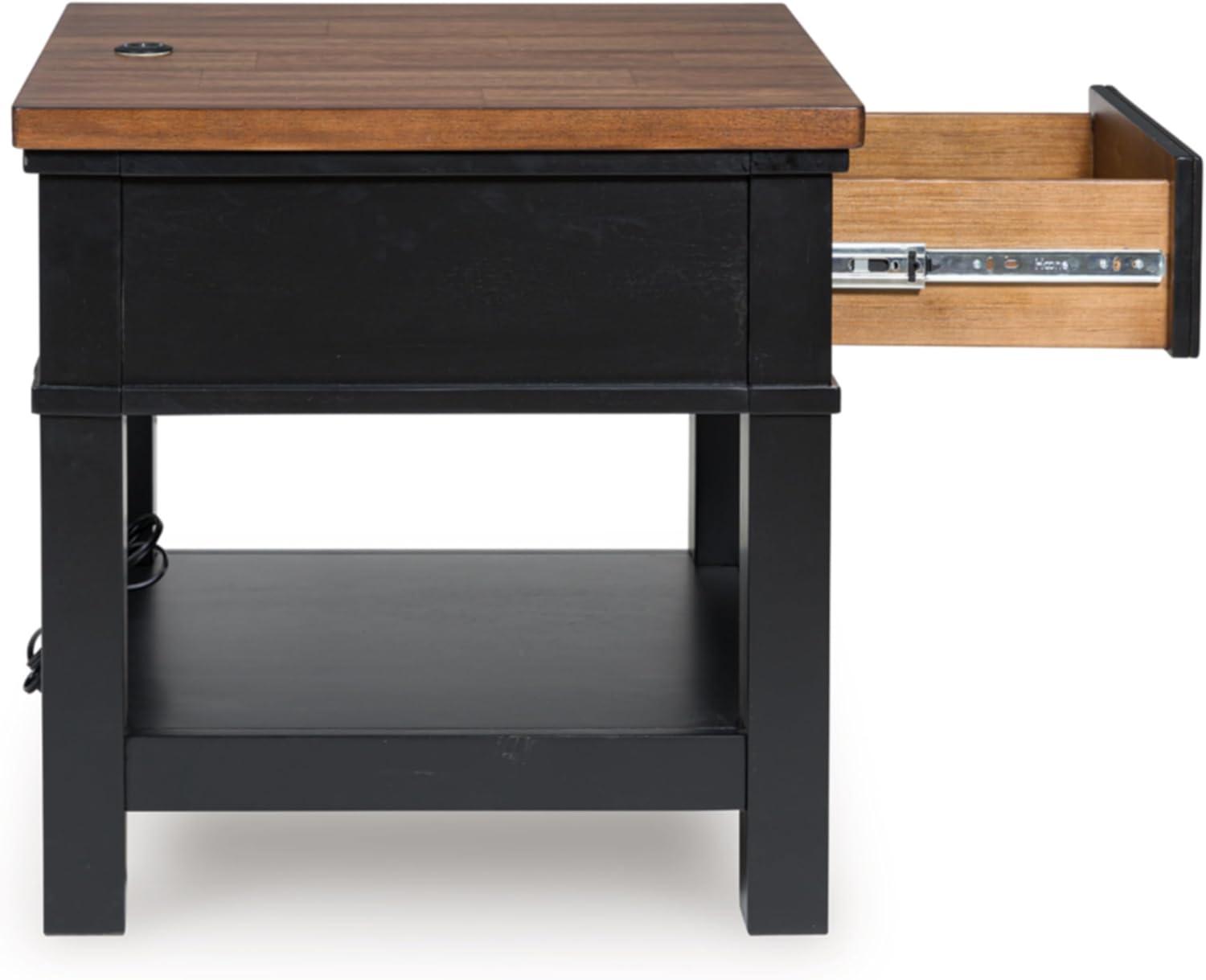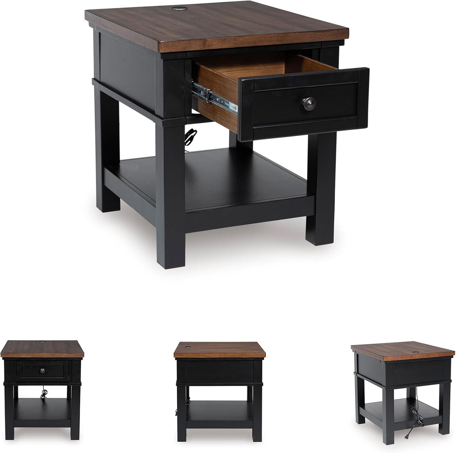 Signature Design by Ashley Wildenauer Casual Rectangular End Table with Lower Shelf and USB Charging, Storage Drawer, Wood, 24.13″ High, Light Brown & Black(Brown/Black)