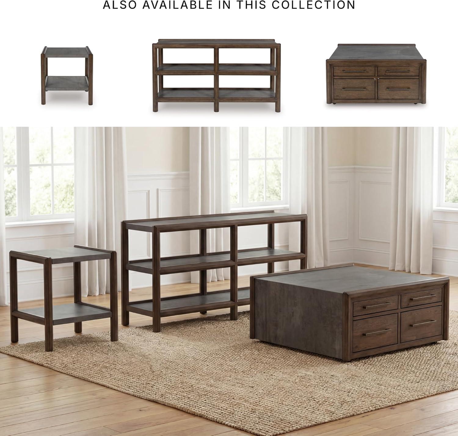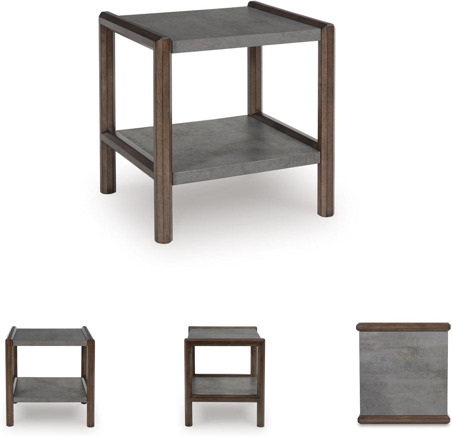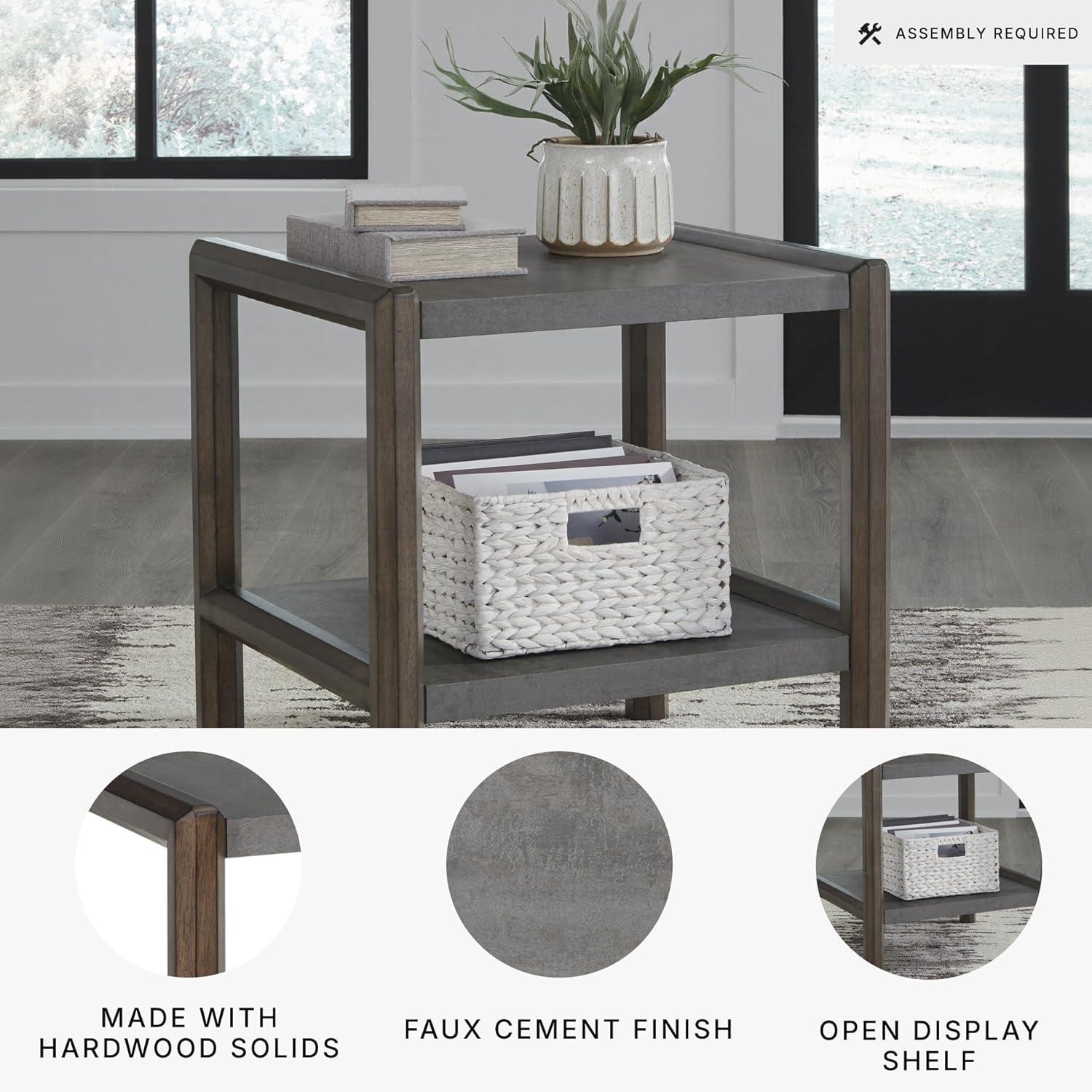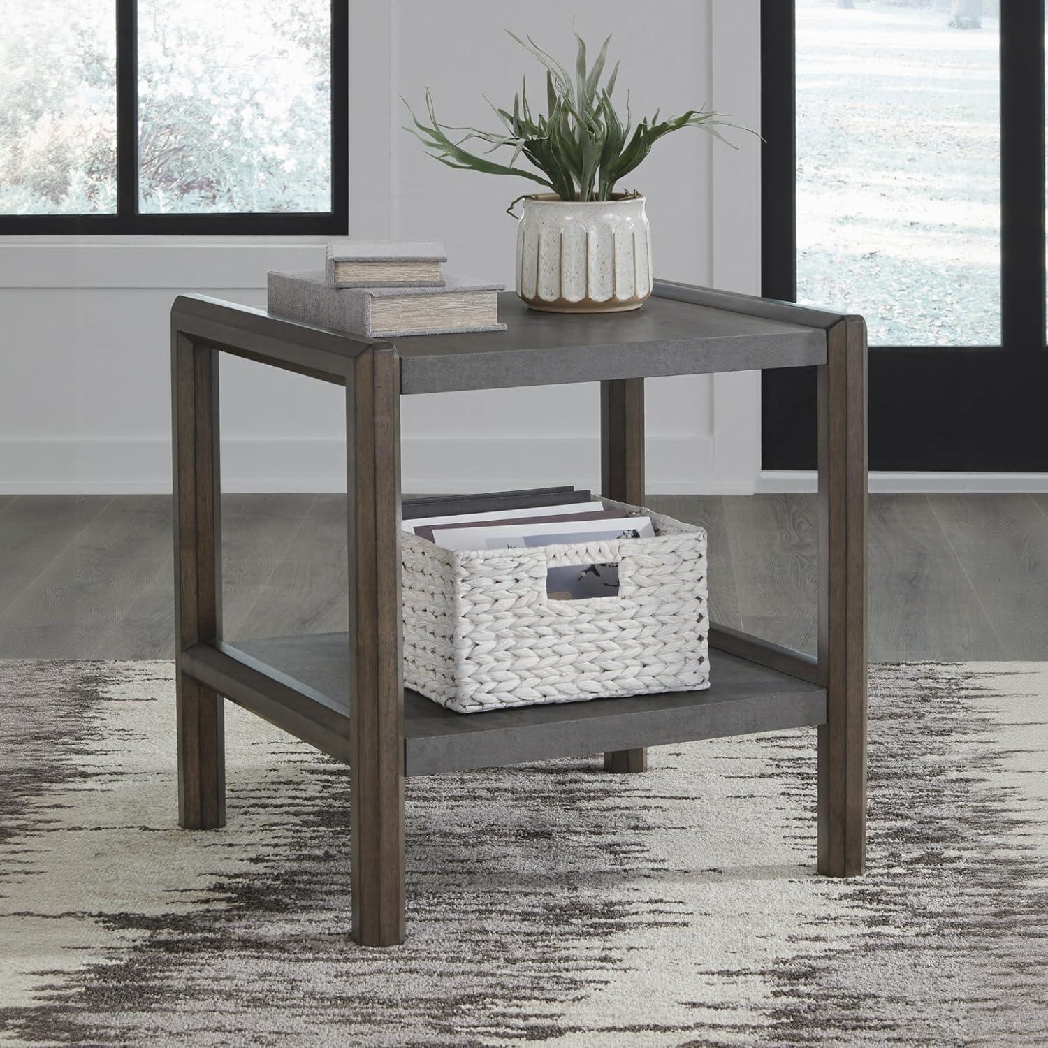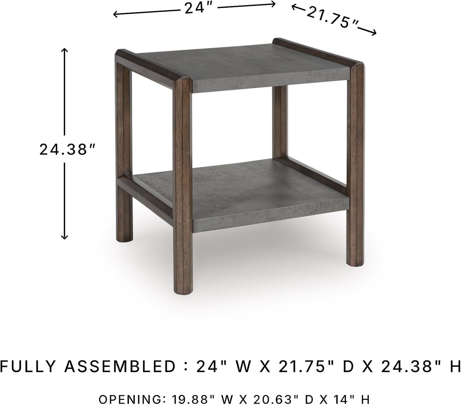 Signature Design by Ashley Wildenauer Casual Rectangular End Table with Lower Shelf and USB Charging, Storage Drawer, Wood, 24.13″ High, Light Brown & Black(Brown/Gray)