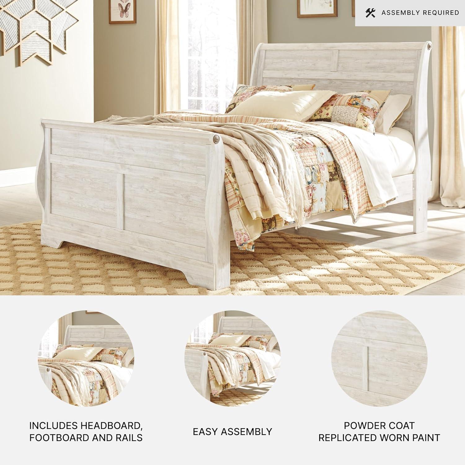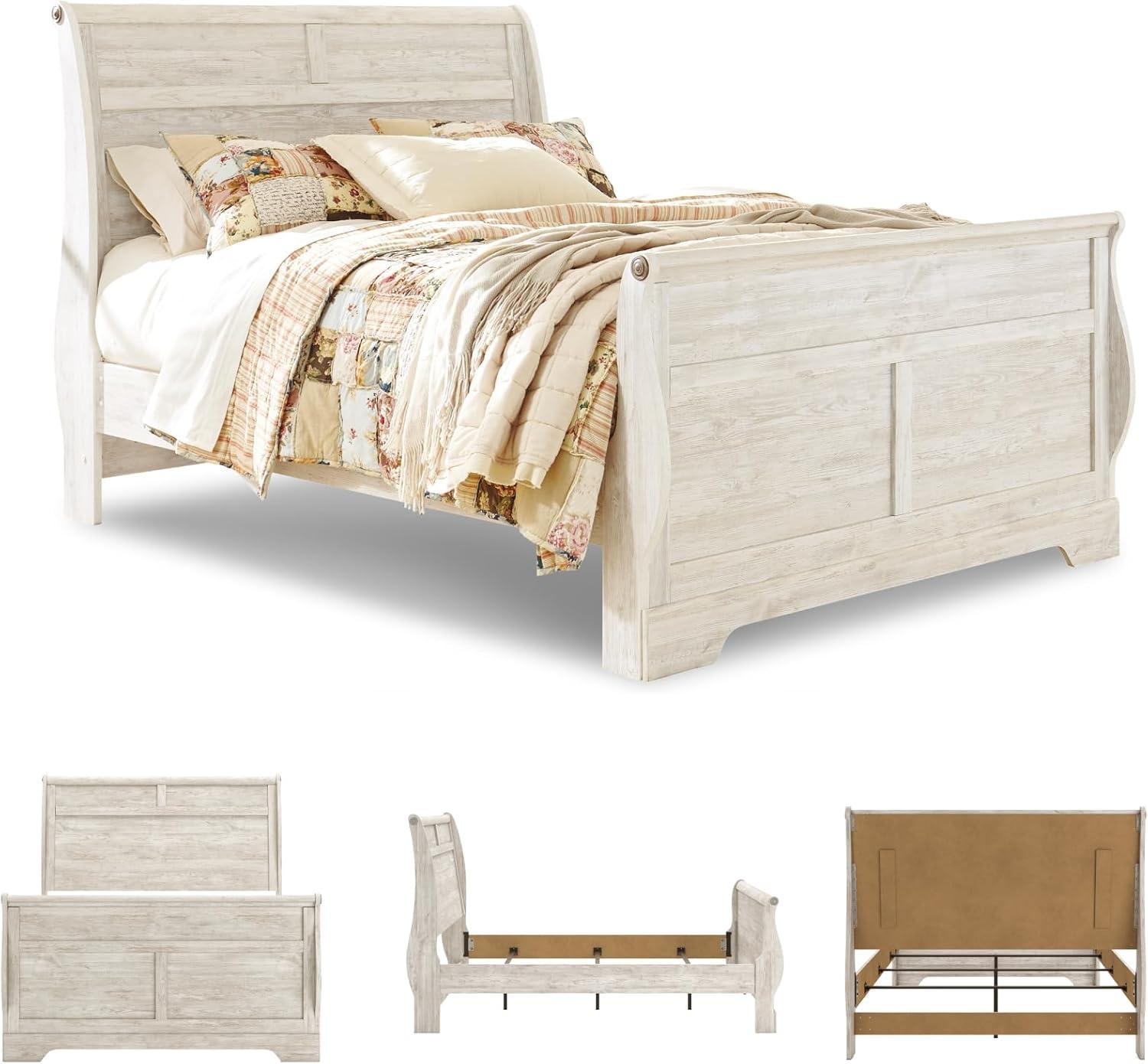 Signature Design by Ashley Willowton Casual California King Panel Bed with Metal Slats, Foundation or Box Spring Needed, Whitewash(Queen)