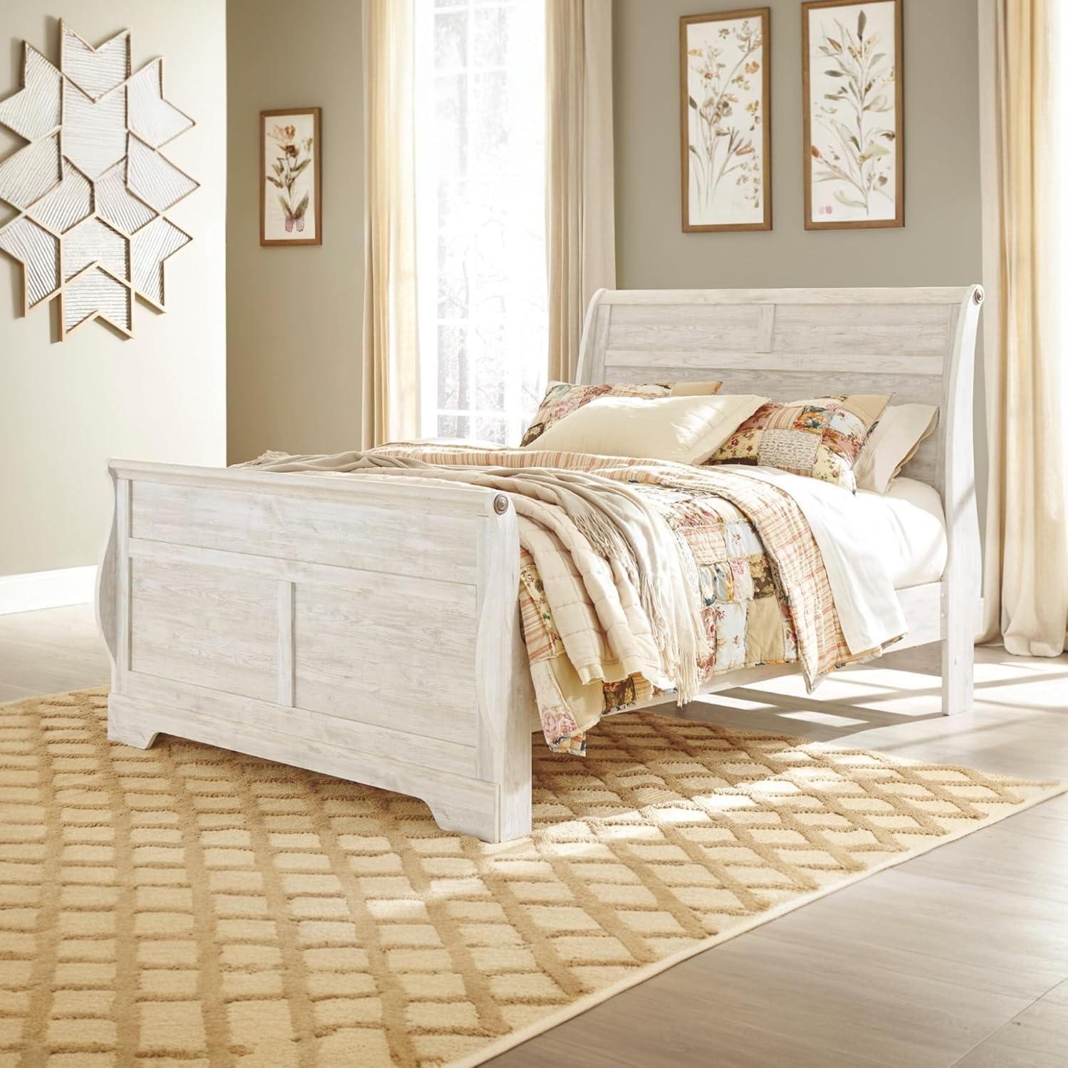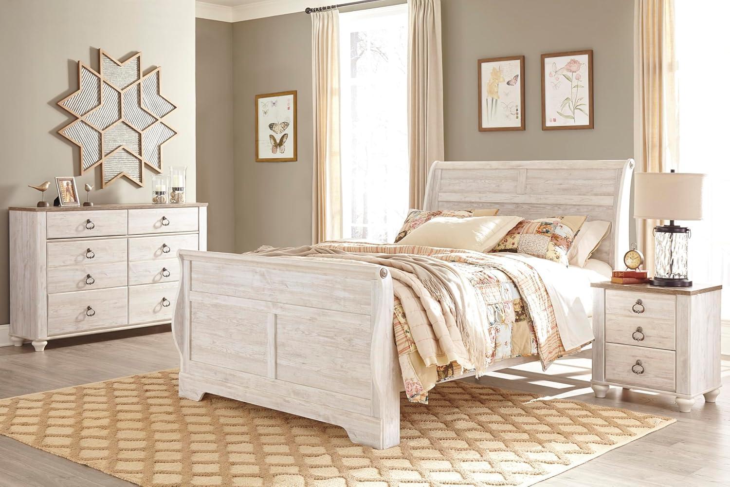 The ultimate look for a beach cottage or shabby chic inspired retreat, the Willowton California king panel bed carries you away to a dreamy time and place. Driftwoody whitewashed finish is wonderfully easy on the eyes. Plank-style detailing incorporates a classically rustic touch, so homey and comforting. Mattress and foundation/box spring sold separately