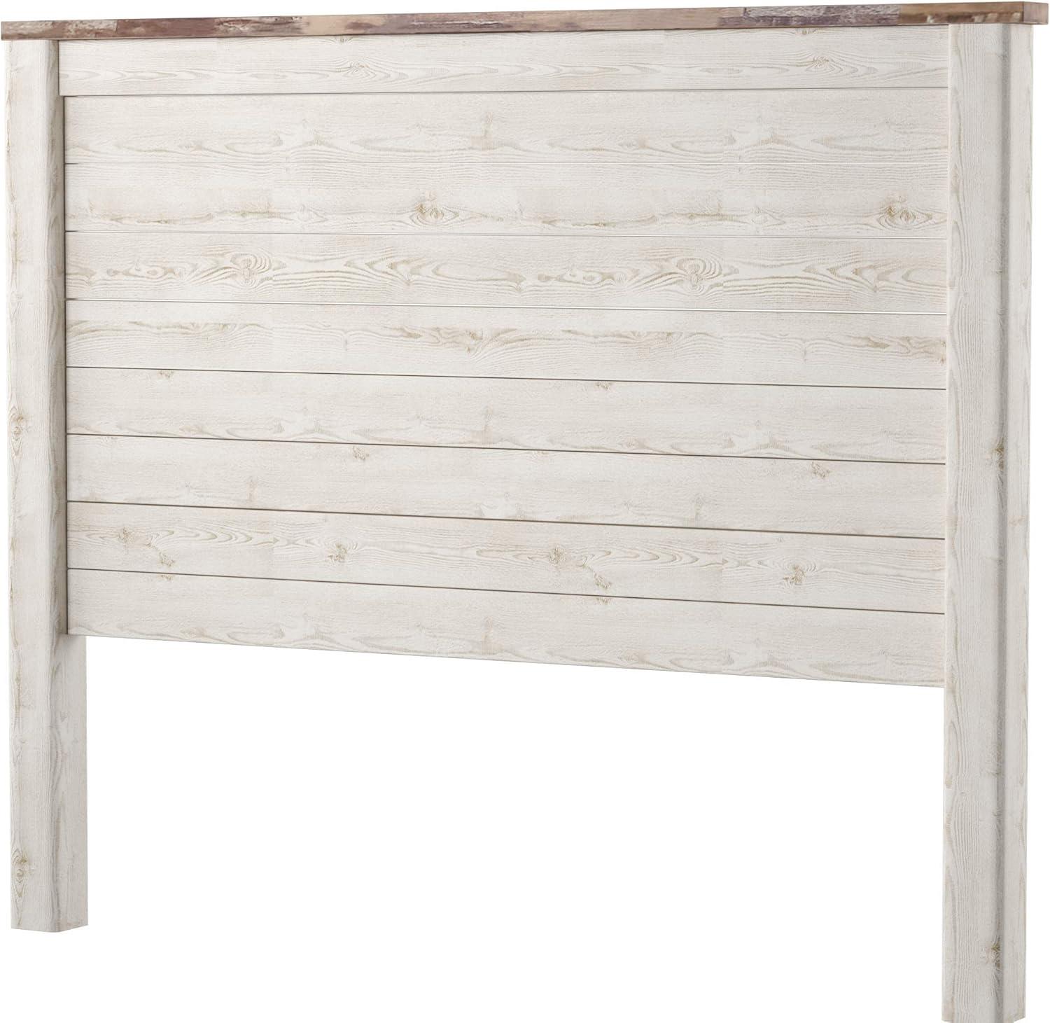 CALIFORNIA KING PANEL BED: Ideal for a cottage or coastal inspired retreat, this bed carries you away to a dreamy time and place. Its driftwoody whitewash finish is wonderfully easy on the eyes. Faux plank detailing brings a classically rustic touch