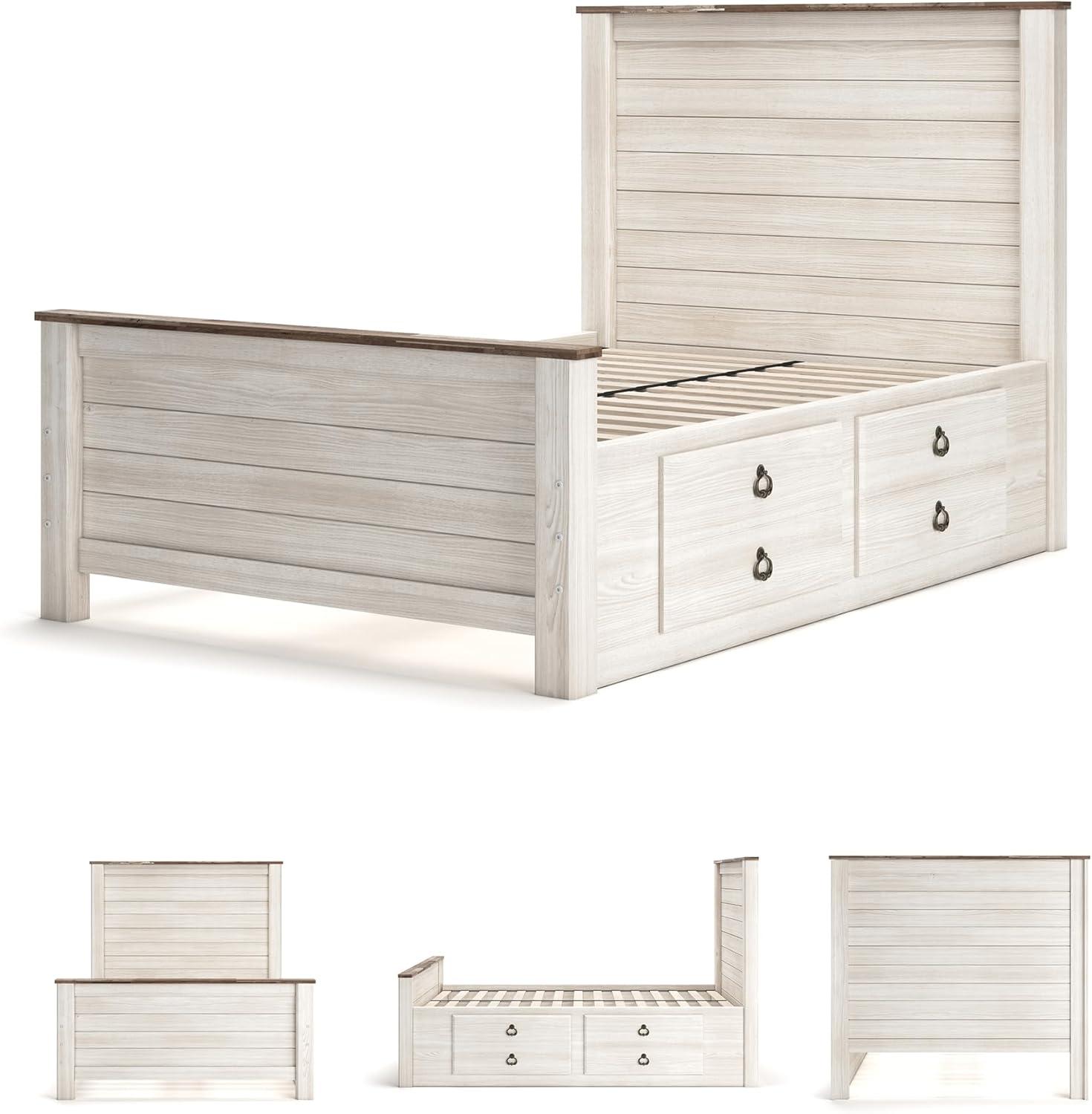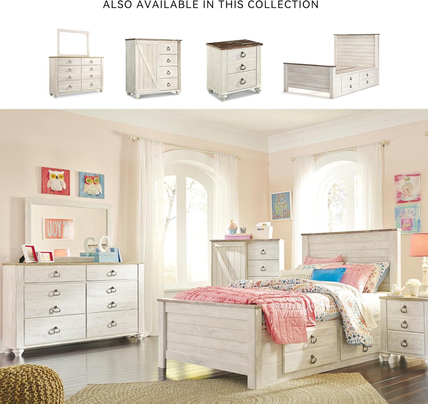Signature Design by Ashley Willowton Cottage Farmhouse Panel Headboard ONLY, King/California, Whitewash(Full)