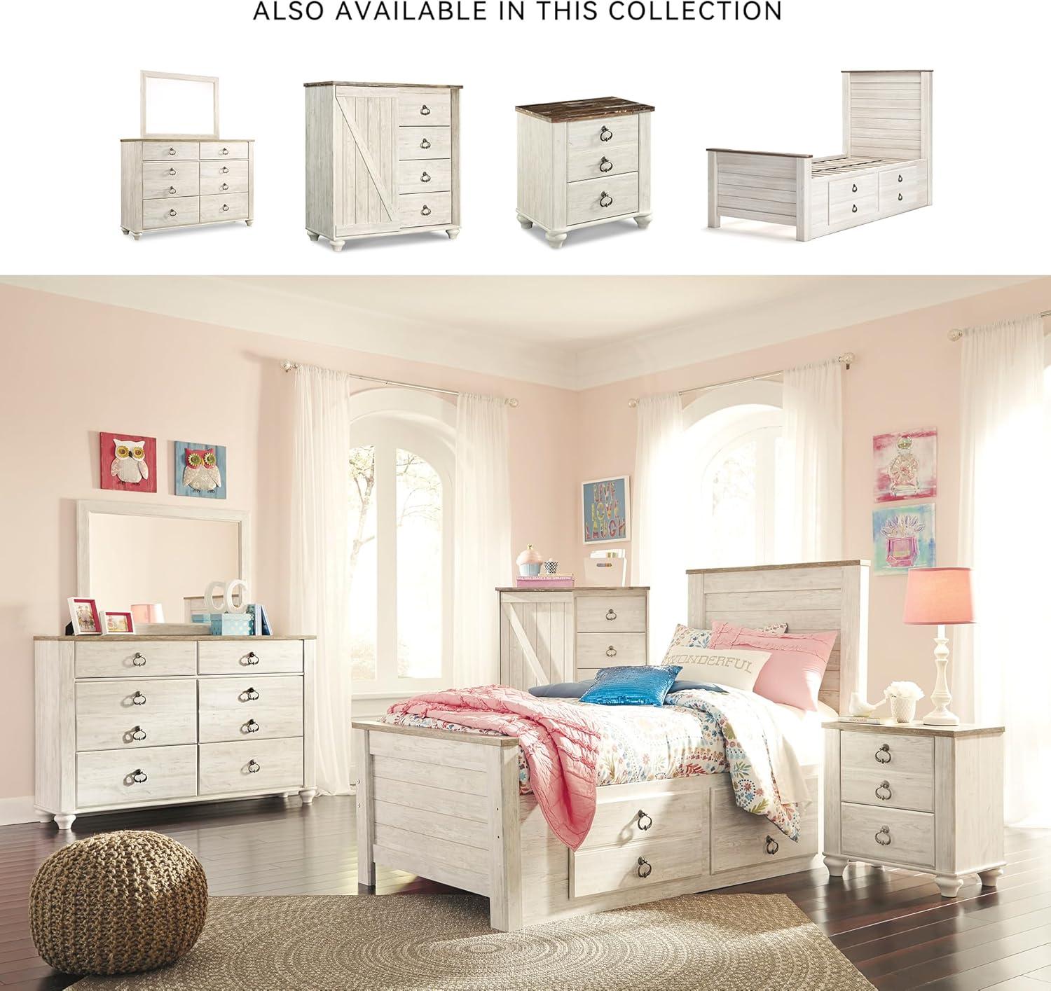 Signature Design by Ashley Willowton Cottage Farmhouse Panel Headboard ONLY, King/California, Whitewash(Twin)