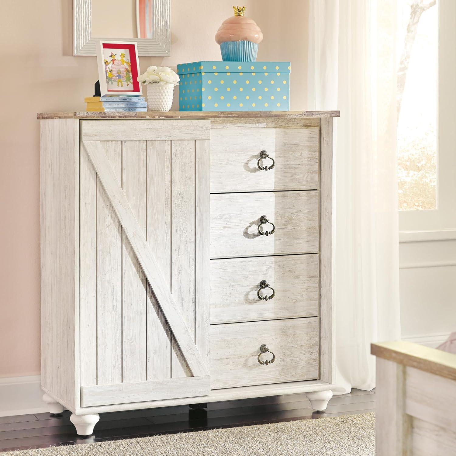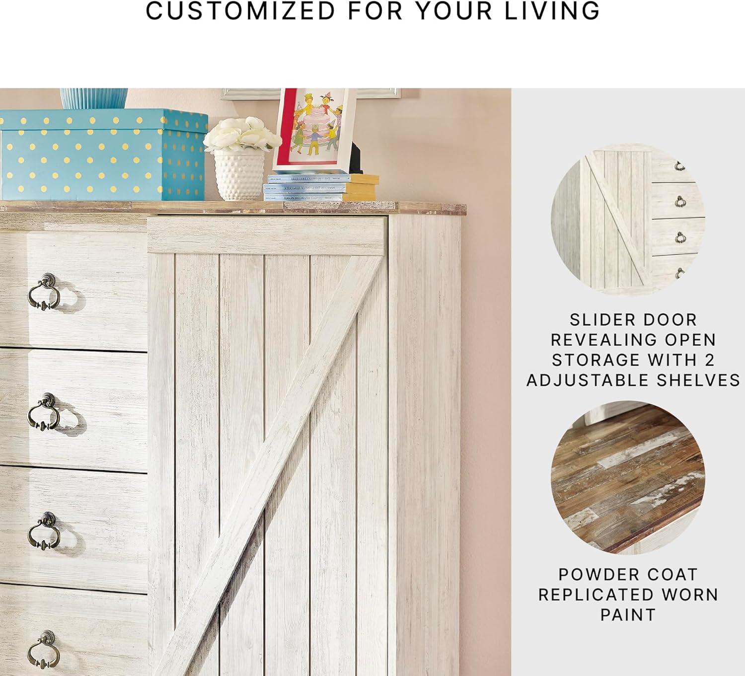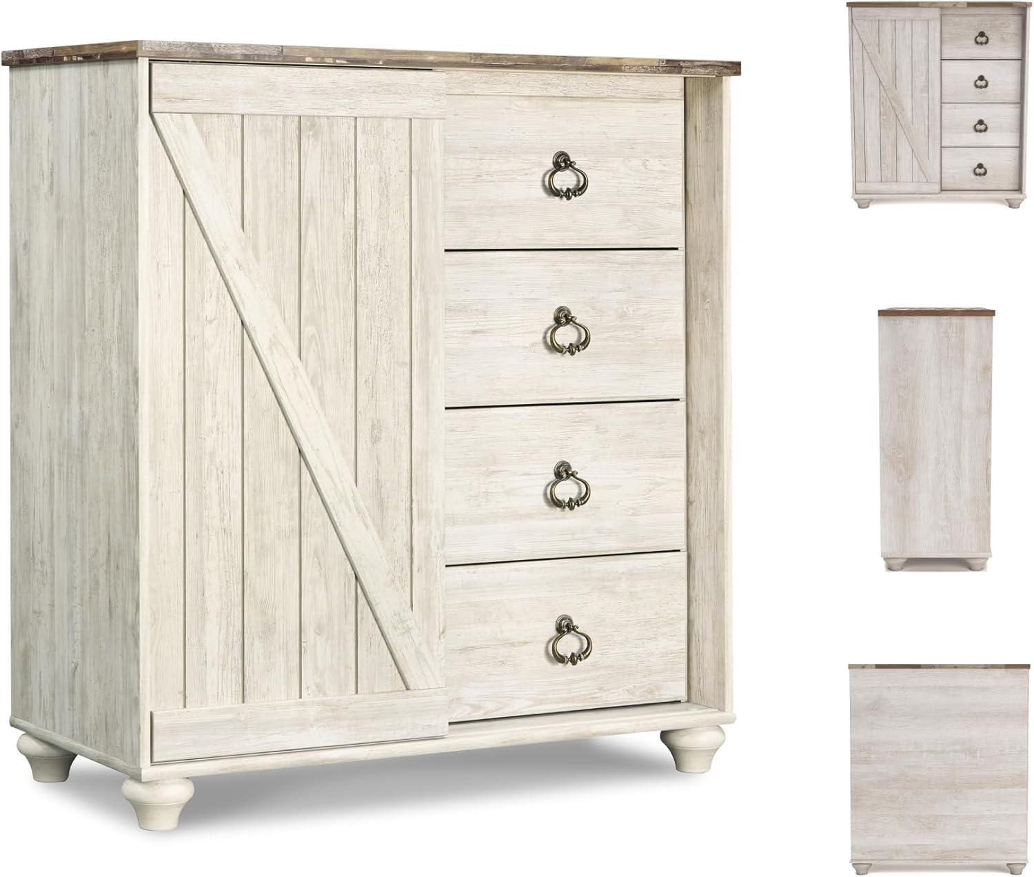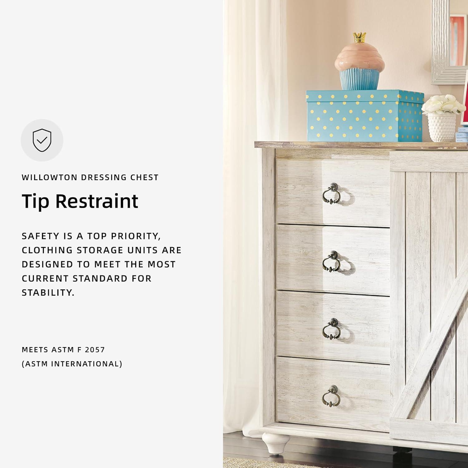 Signature Design by Ashley Willowton Shabby Chic Dressing Chest with Faux Plank Top, Whitewash(4 Drawer Chest)