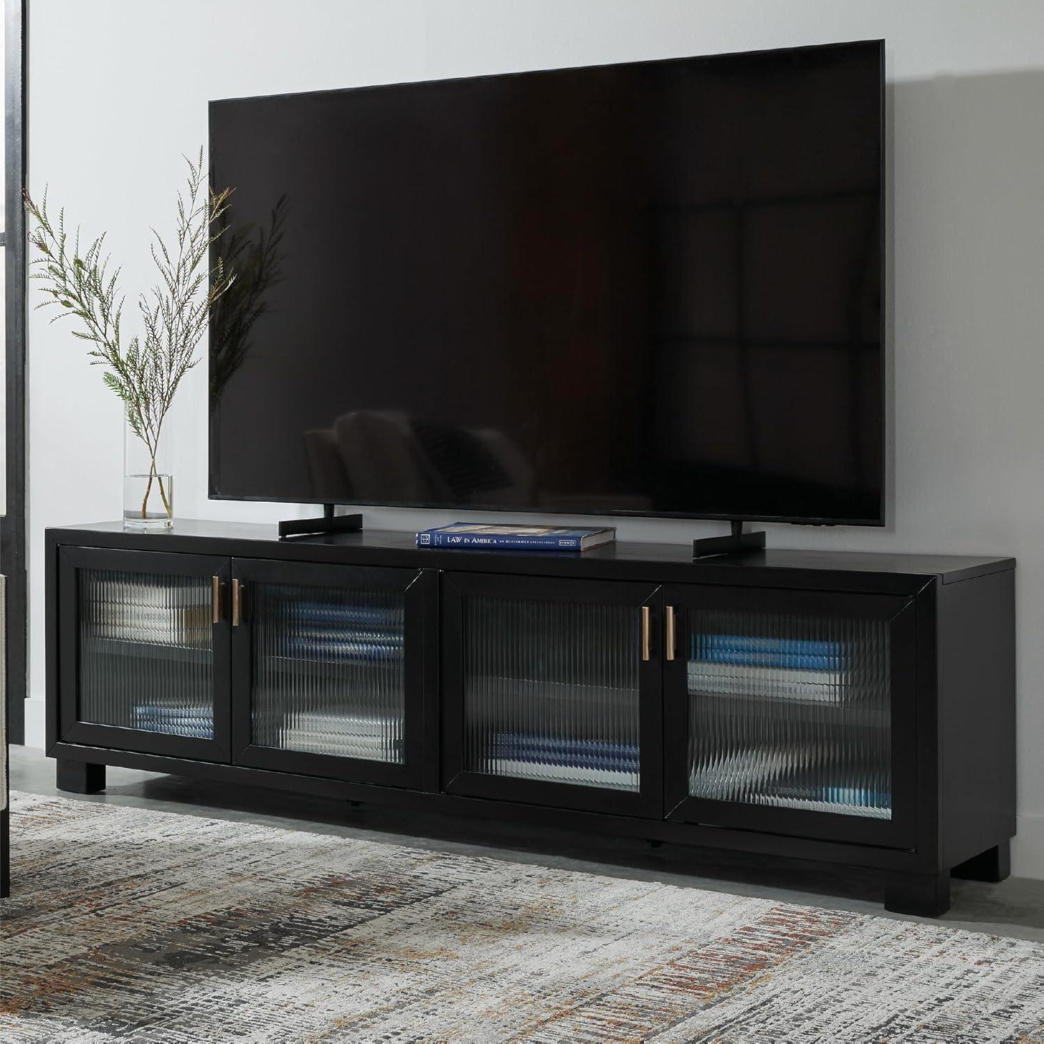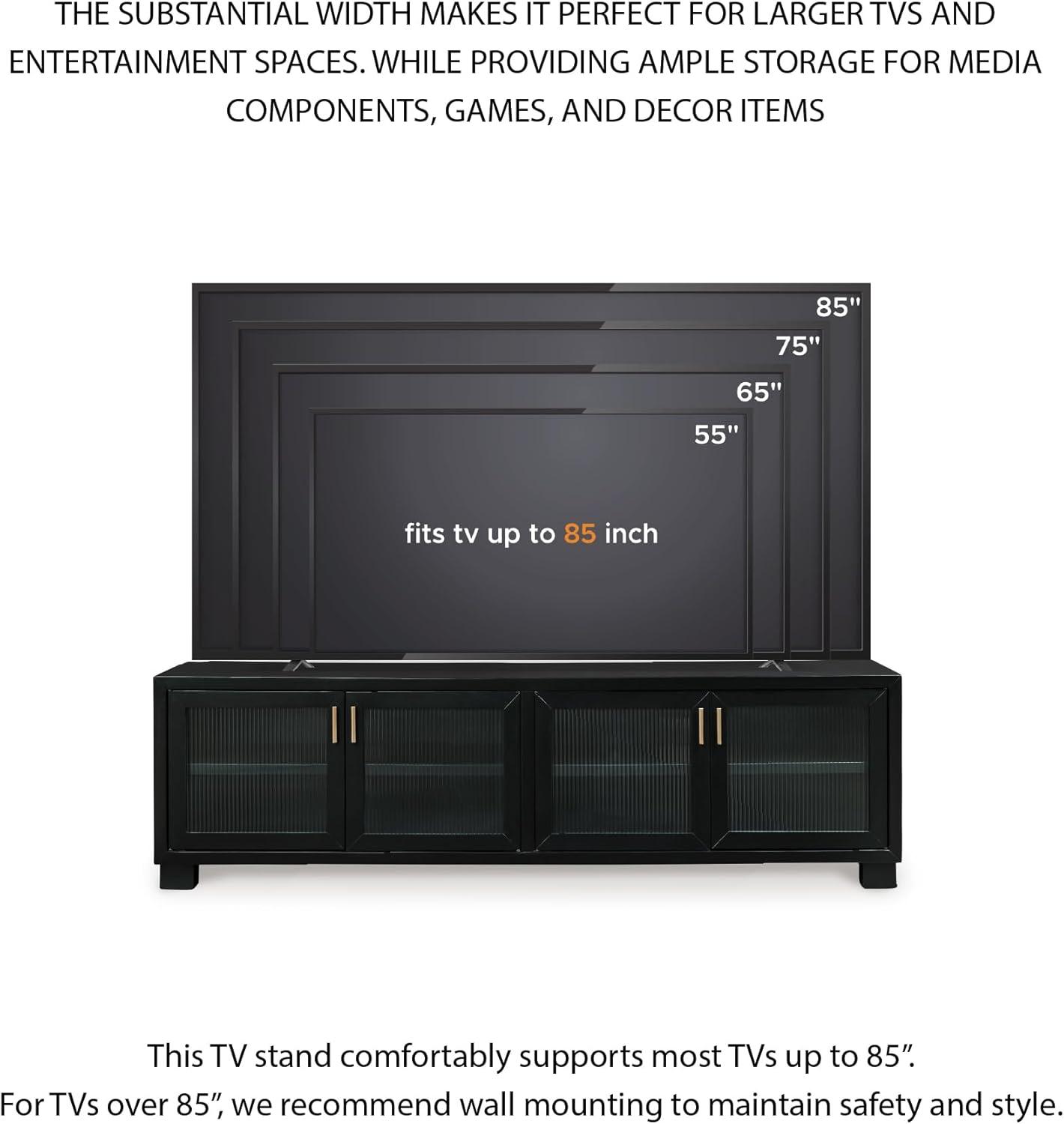 Signature Design by Ashley Winbardi Modern 85″ TV Stand for TVs up to 97″ with Adjustable Shelves, Cabinets and Cord Openings, Black
