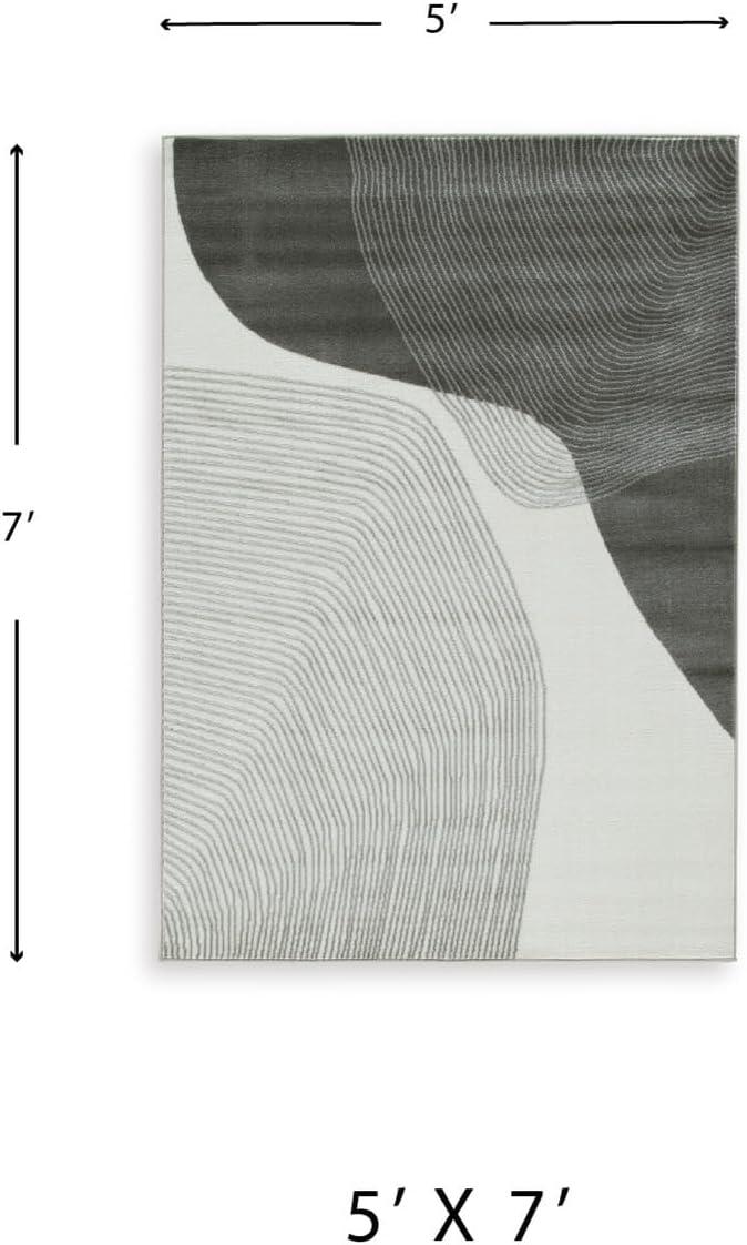 Signature Design by Ashley Winderburg Minimalist Indoor Swirls 5 x 7 Rug, White & Gray(4’11” x 7’1″ (Rectangular))
