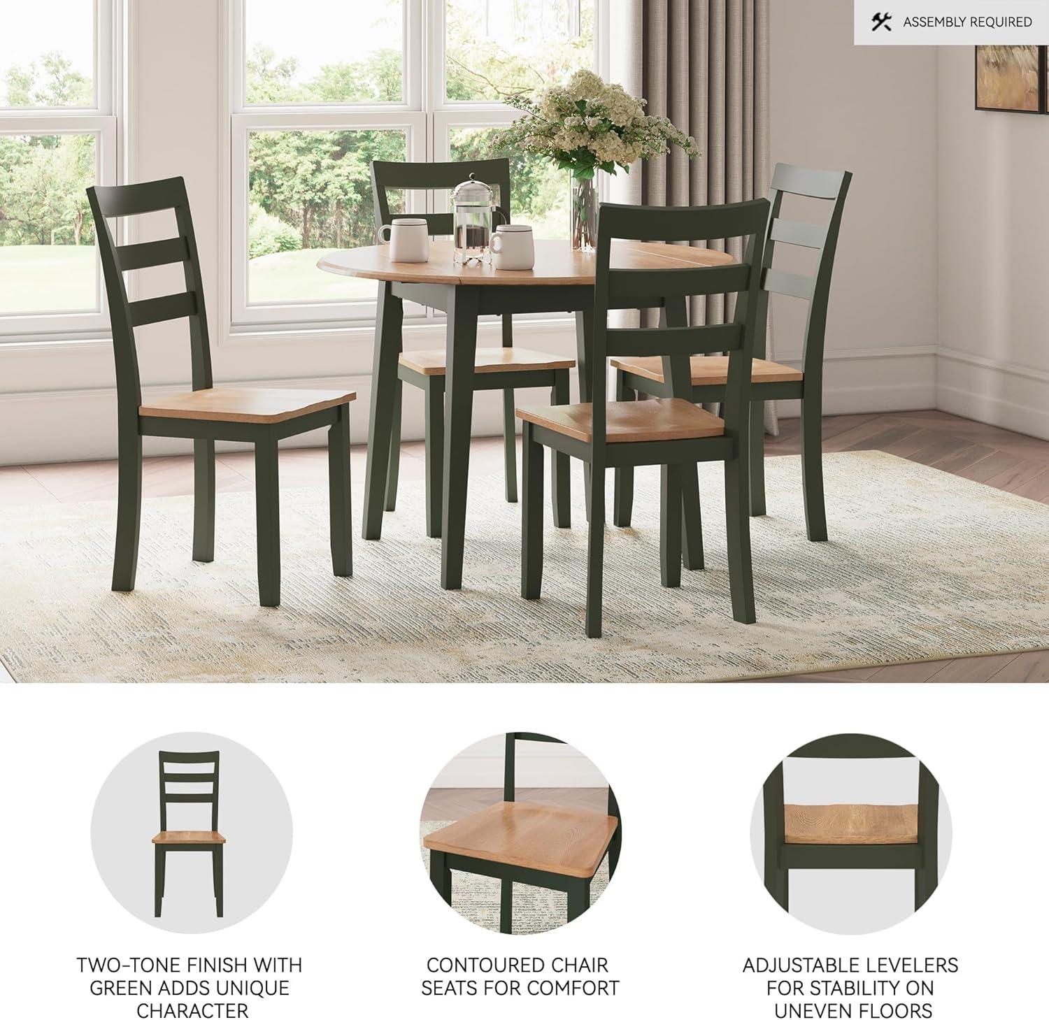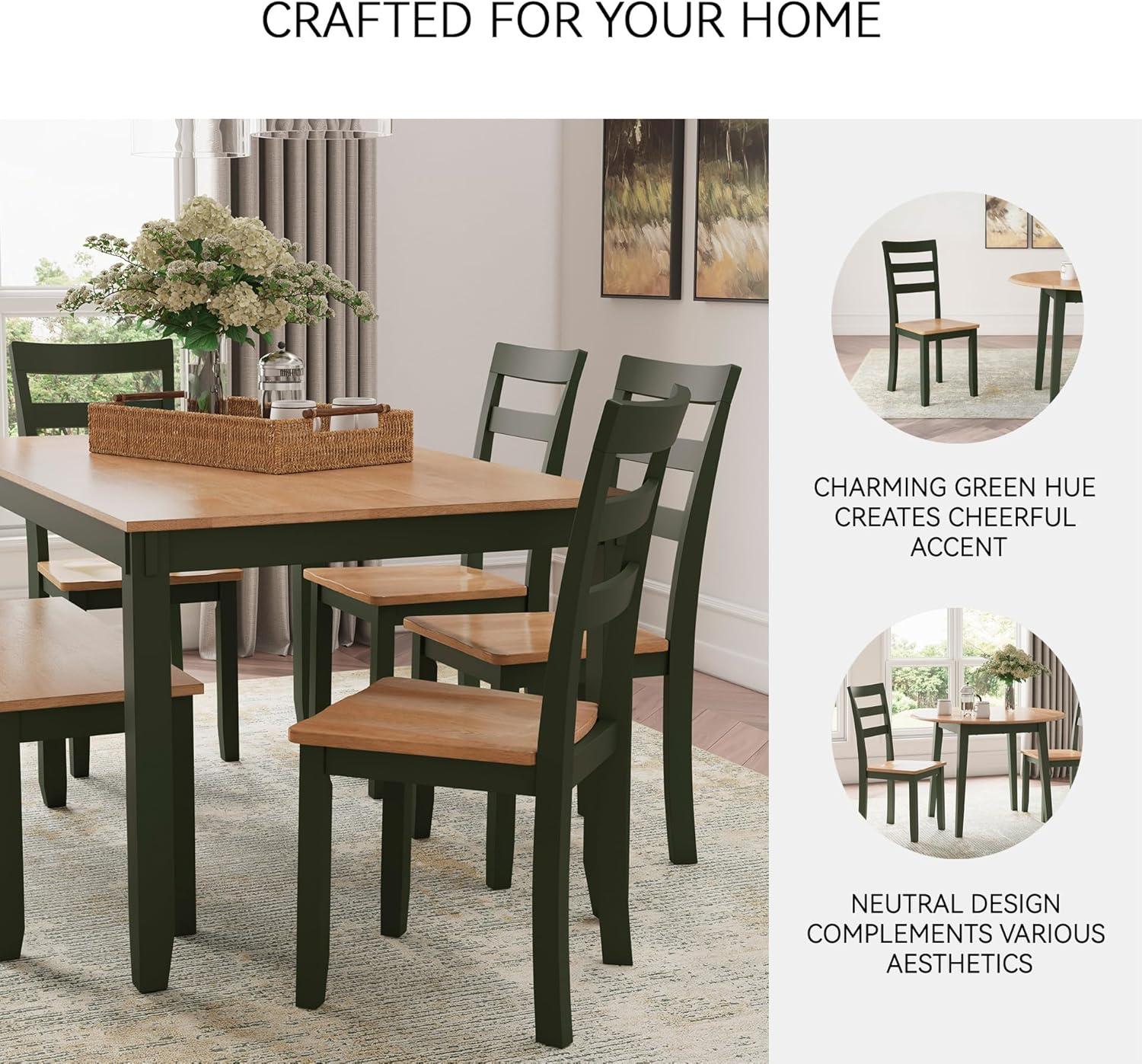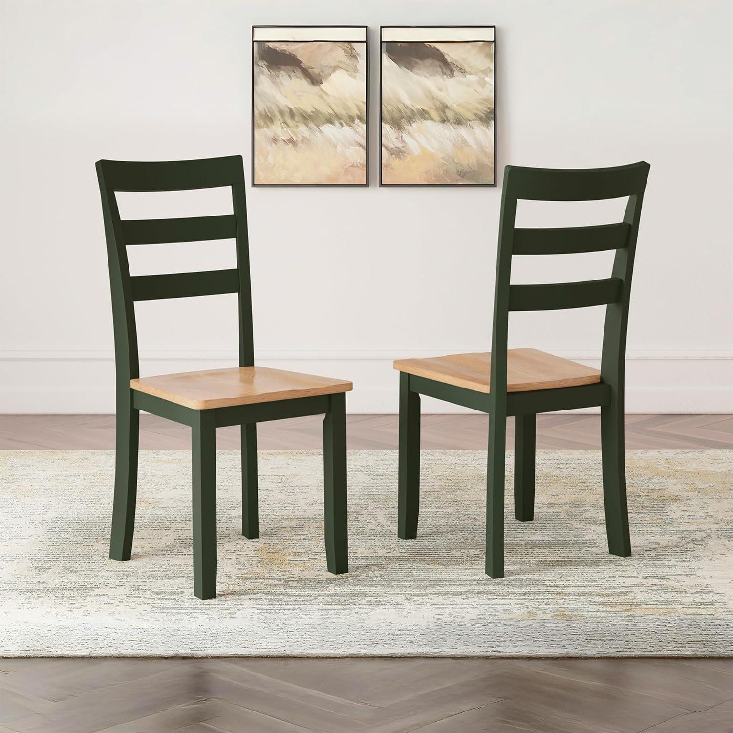 Signature Design by Ashley Woodanville 18″ Cottage Ladderback Dining Chair, 2 Count, Cream & Brown(Light Brown & Green)