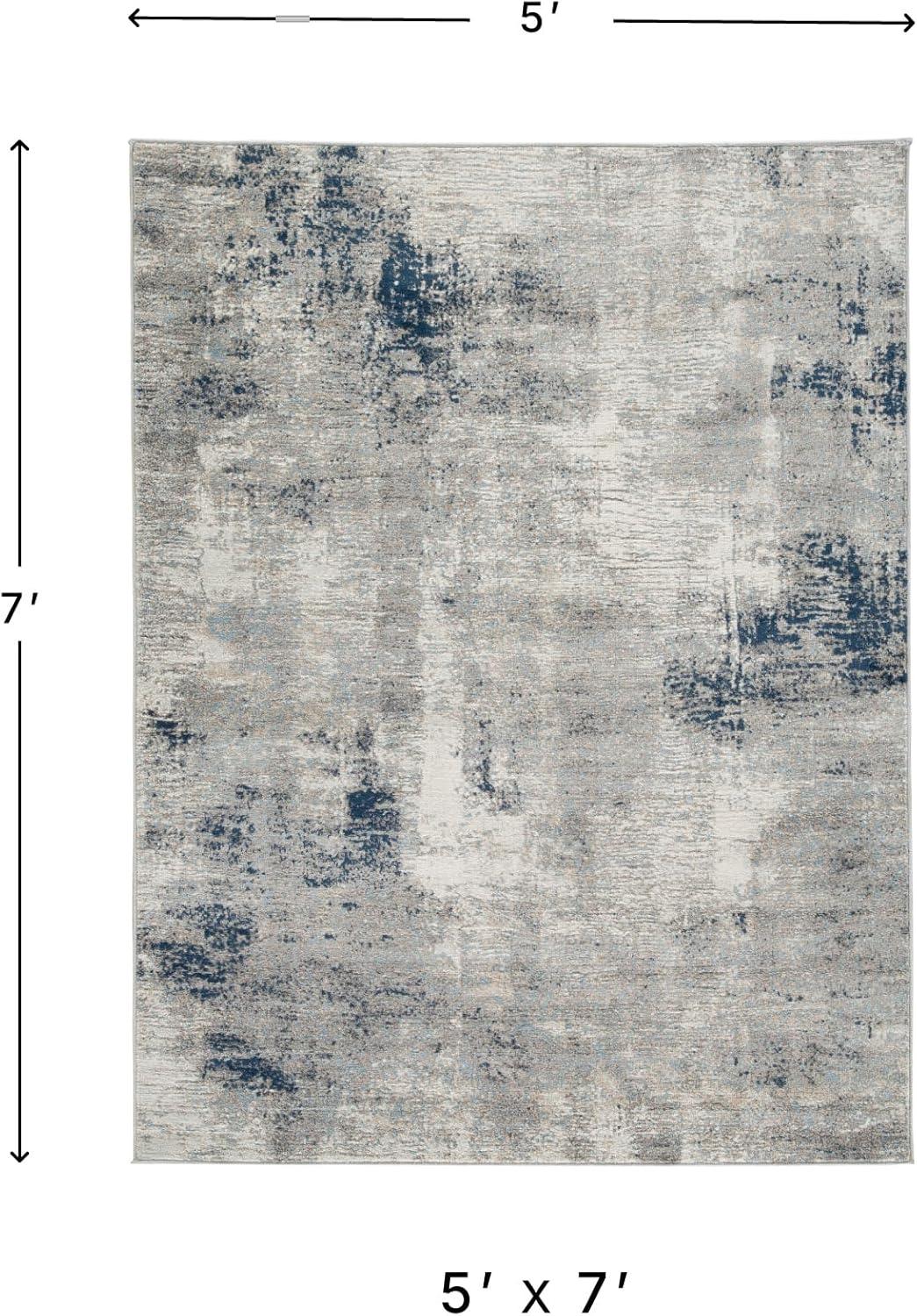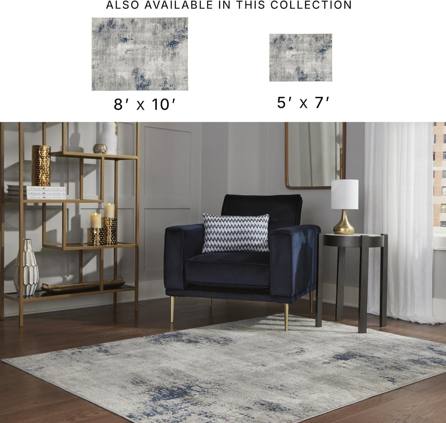 Signature Design by Ashley Wrenstow 5 x 7 Medium Pile Distressed Area Rug, Gray, Ivory & Blue(5’3″ x 7’3″ (Rectangular))