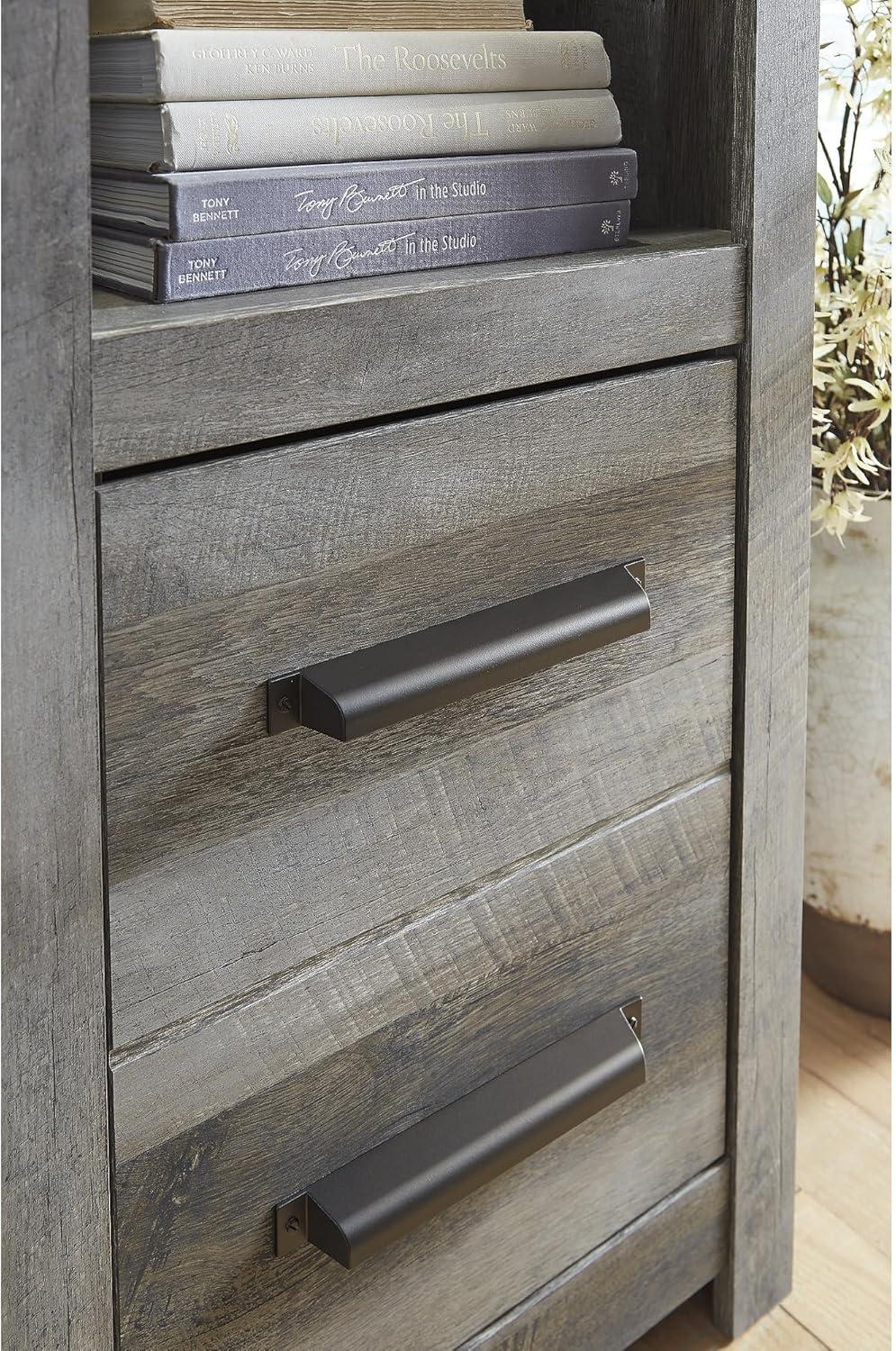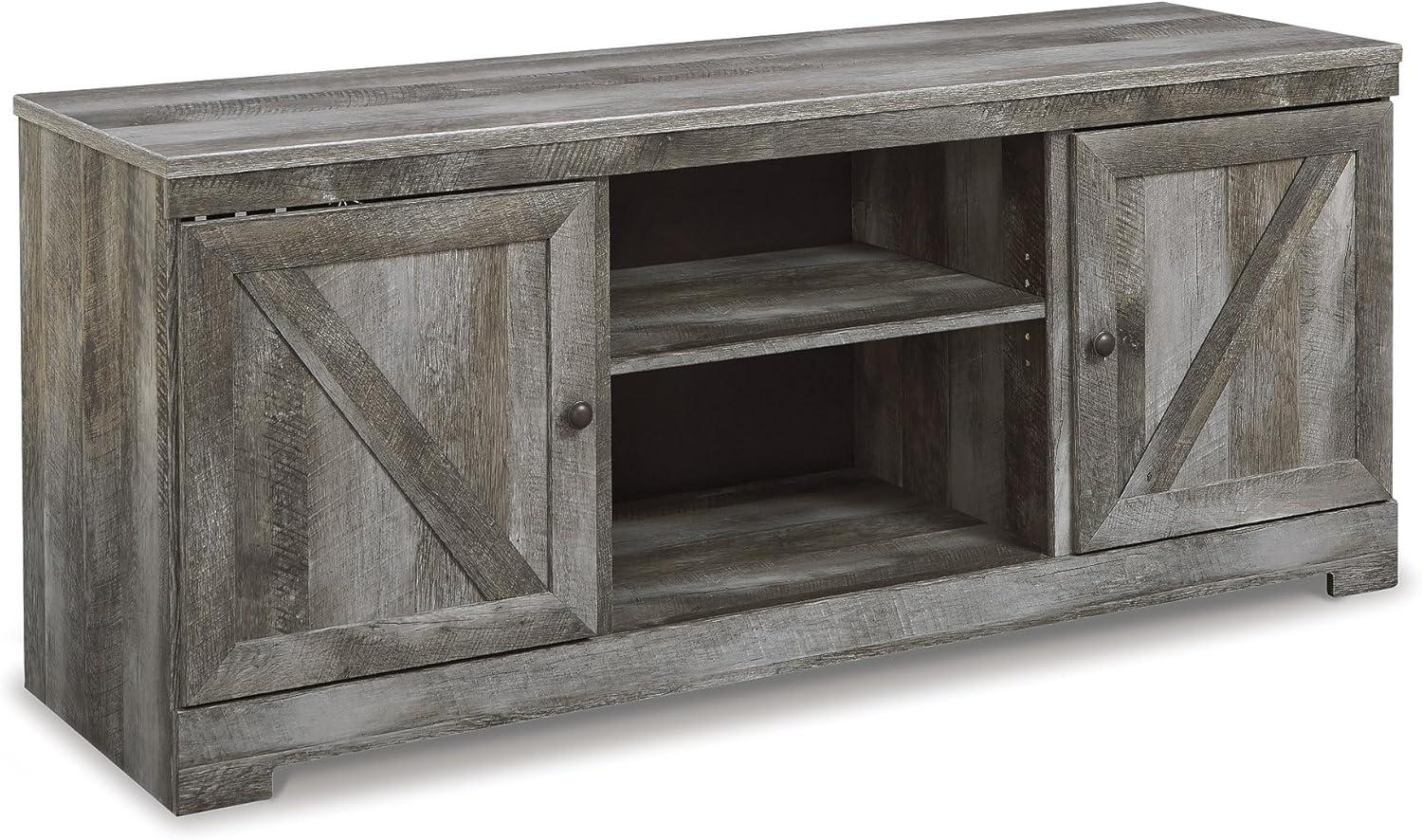 Signature Design by Ashley Wynnlow Rustic 4-Piece Entertainment Center for TVs up to 72″ with Electric Fireplace, LED Lighting and Programmable Timer, Gray
