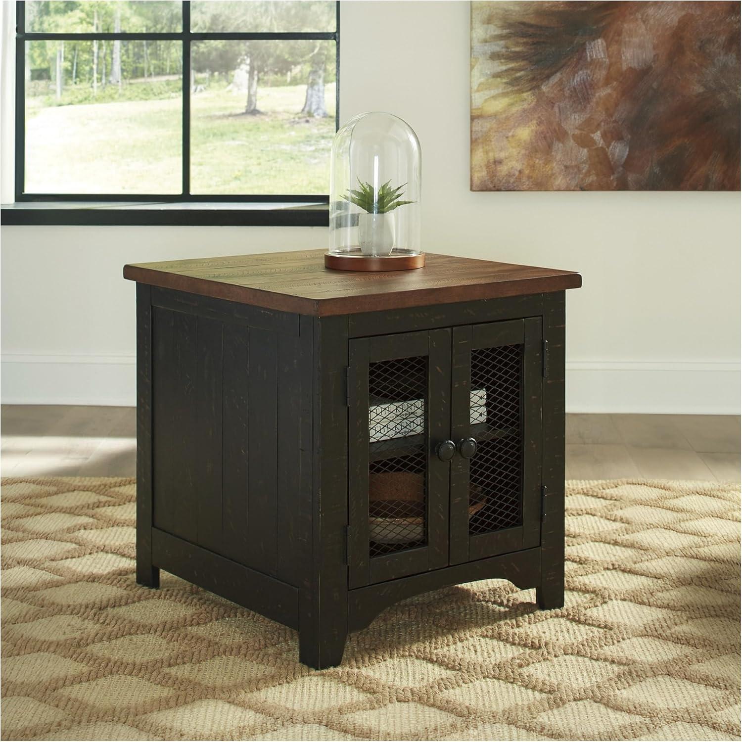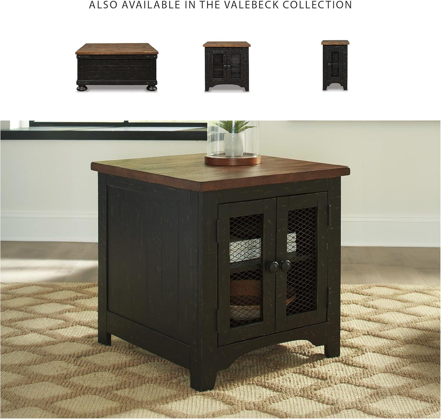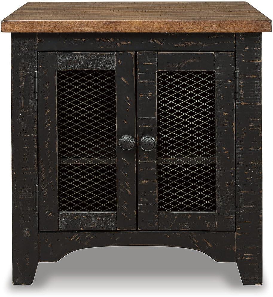 Signature Design by Ashley Wystfield Farmhouse End Table with Storage, Distressed White & Brown Finish(Black/Brown)