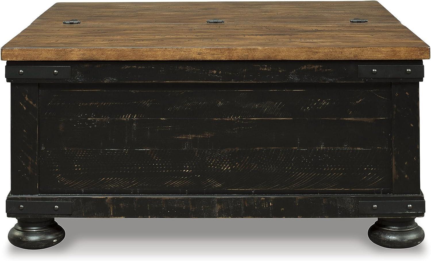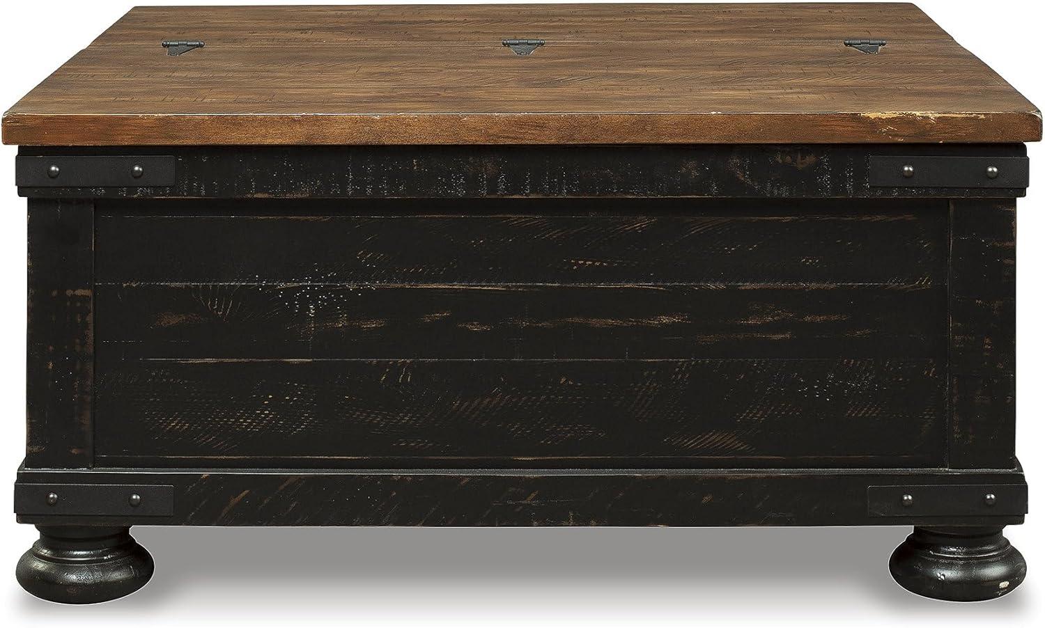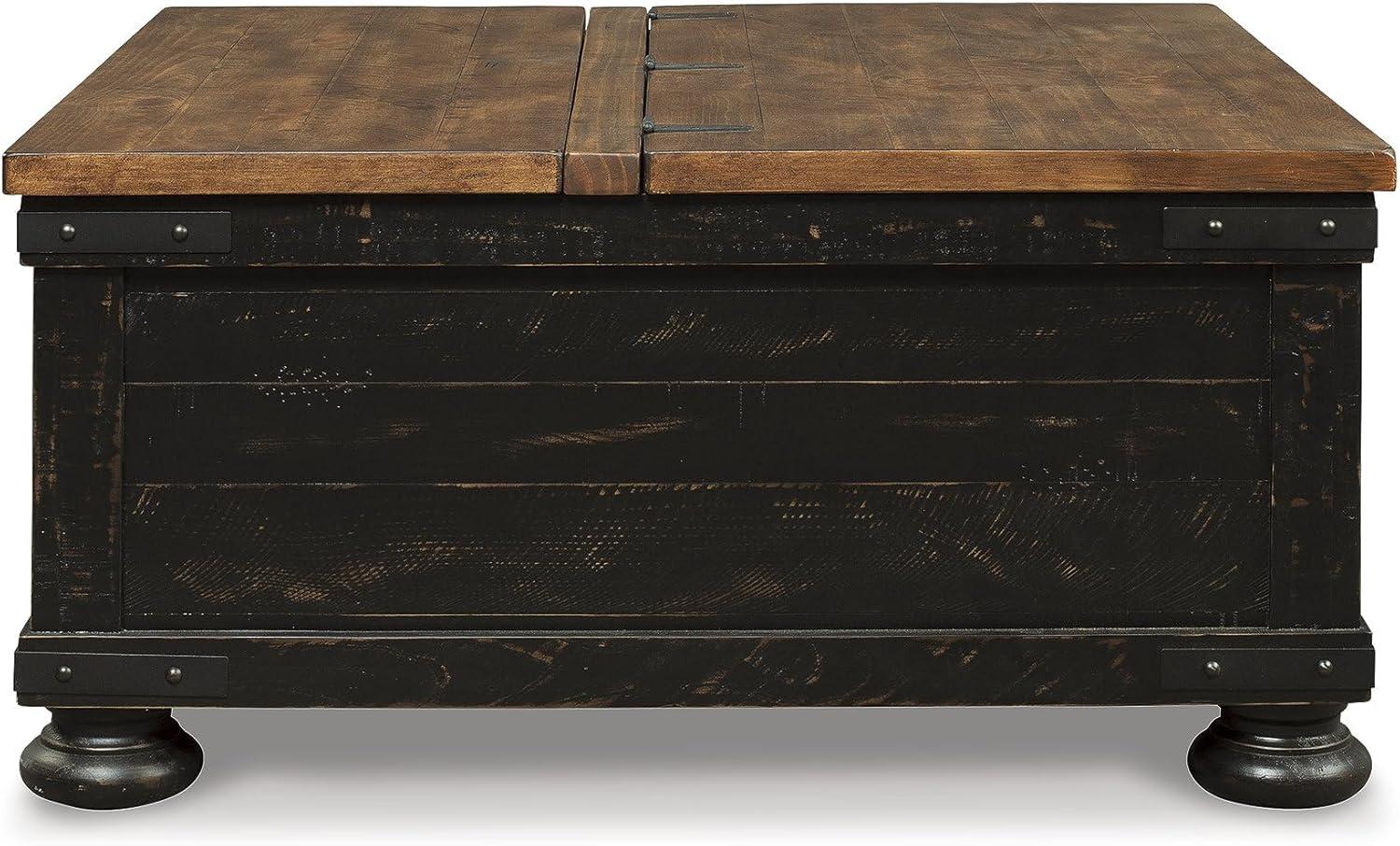 Signature Design by Ashley Wystfield Farmhouse Square Storage Coffee Table with Hinged Lift Top, Distressed White(Black)