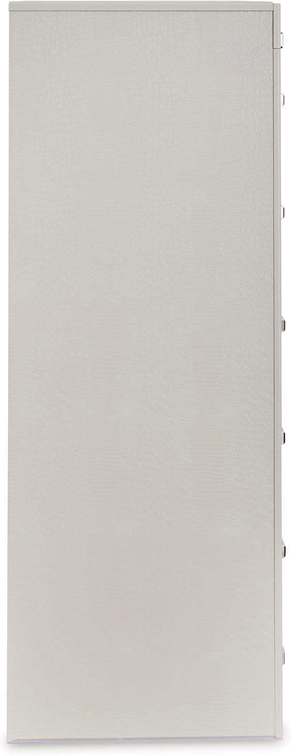 Bright, bold luxury. This chest of drawers dazzles with its attention to detail. Your love of glamorous style is reflected in its all-over faux gator in a metallic finish, exquisitely paired with faceted chrome-tone details. Complete with smooth-gliding storage drawers, it inspires you to live luxuriously every day—whether dressing up to go out or dressing down to stay in. Signature Design by Ashley is a registered trademark of Ashley Furniture Industries, Inc.
