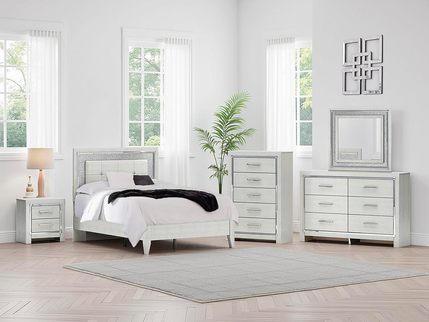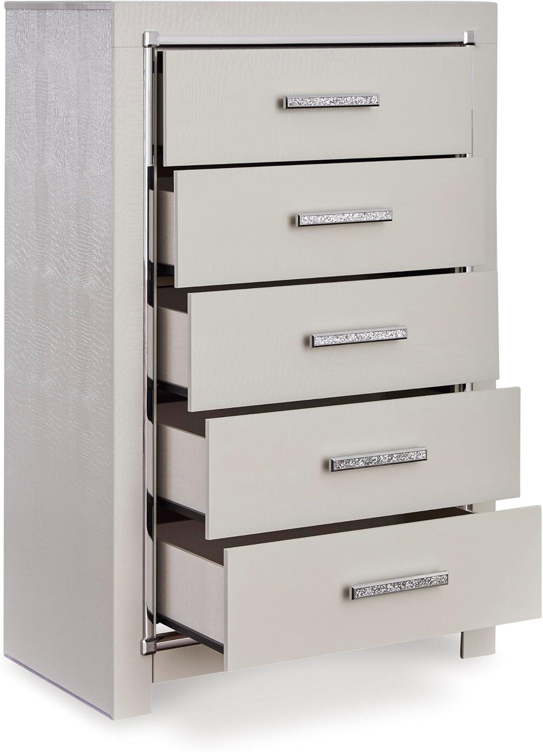 Signature Design by Ashley Zyniden Glam 5 Drawer Wide Chest with Safety Stop for Bedroom, Chrome(Chrome)