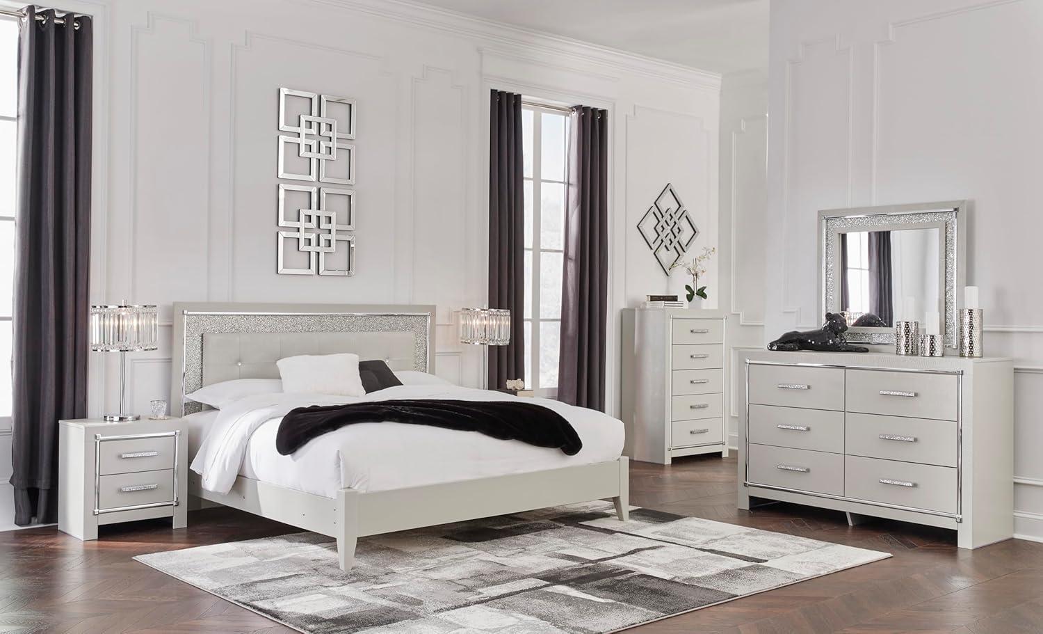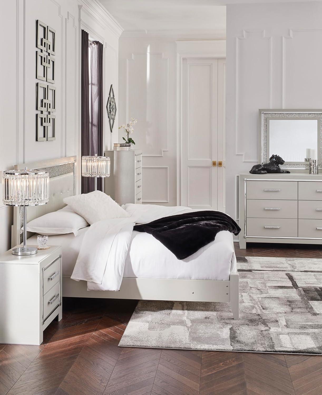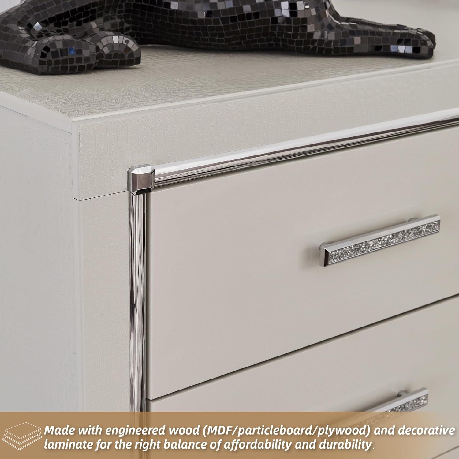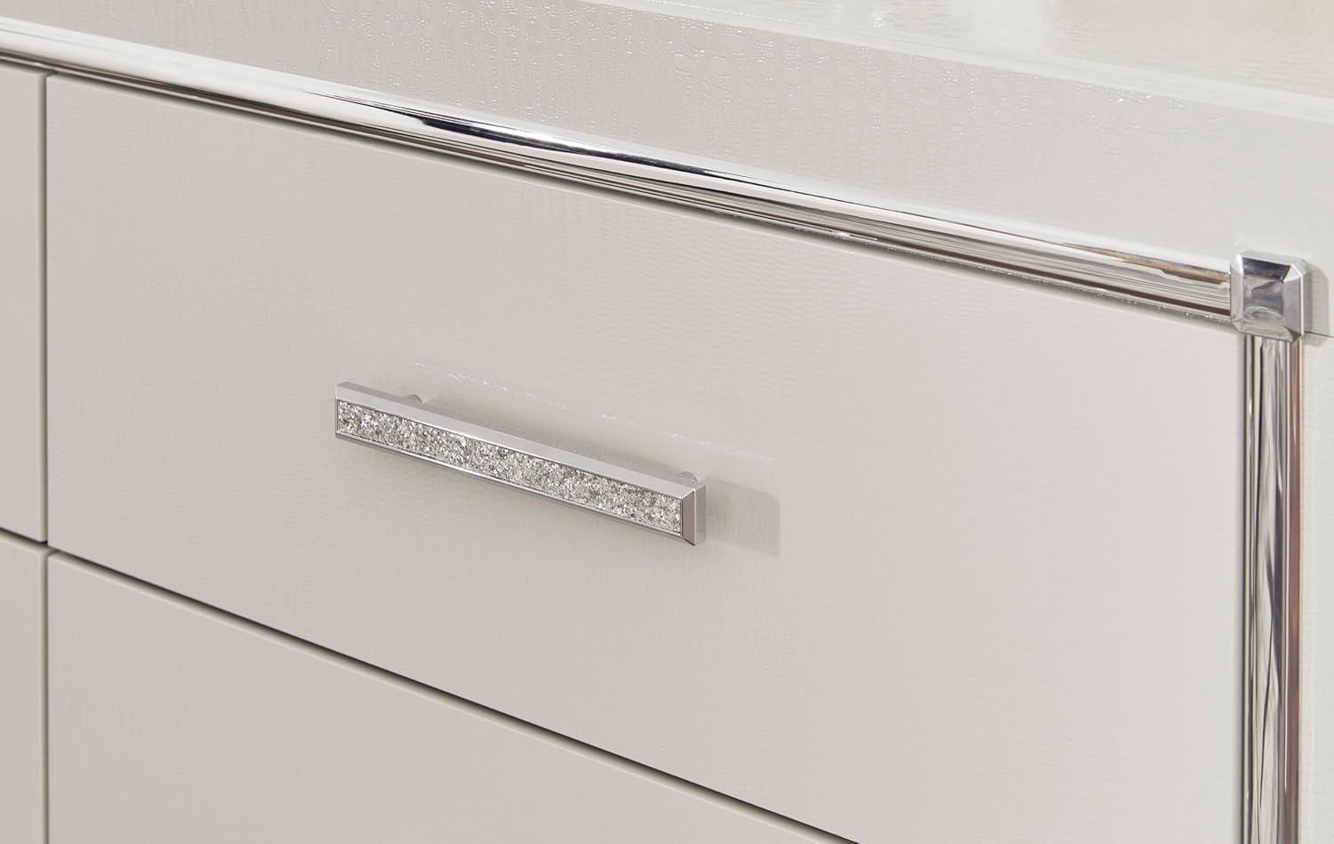 Signature Design by Ashley Zyniden Glam 6 Drawer Dresser with Safety Stop, Faux Crystal Handles, Wood, 60.67″ W x 15.28″ D x 40″ H, Chrome(Chrome)