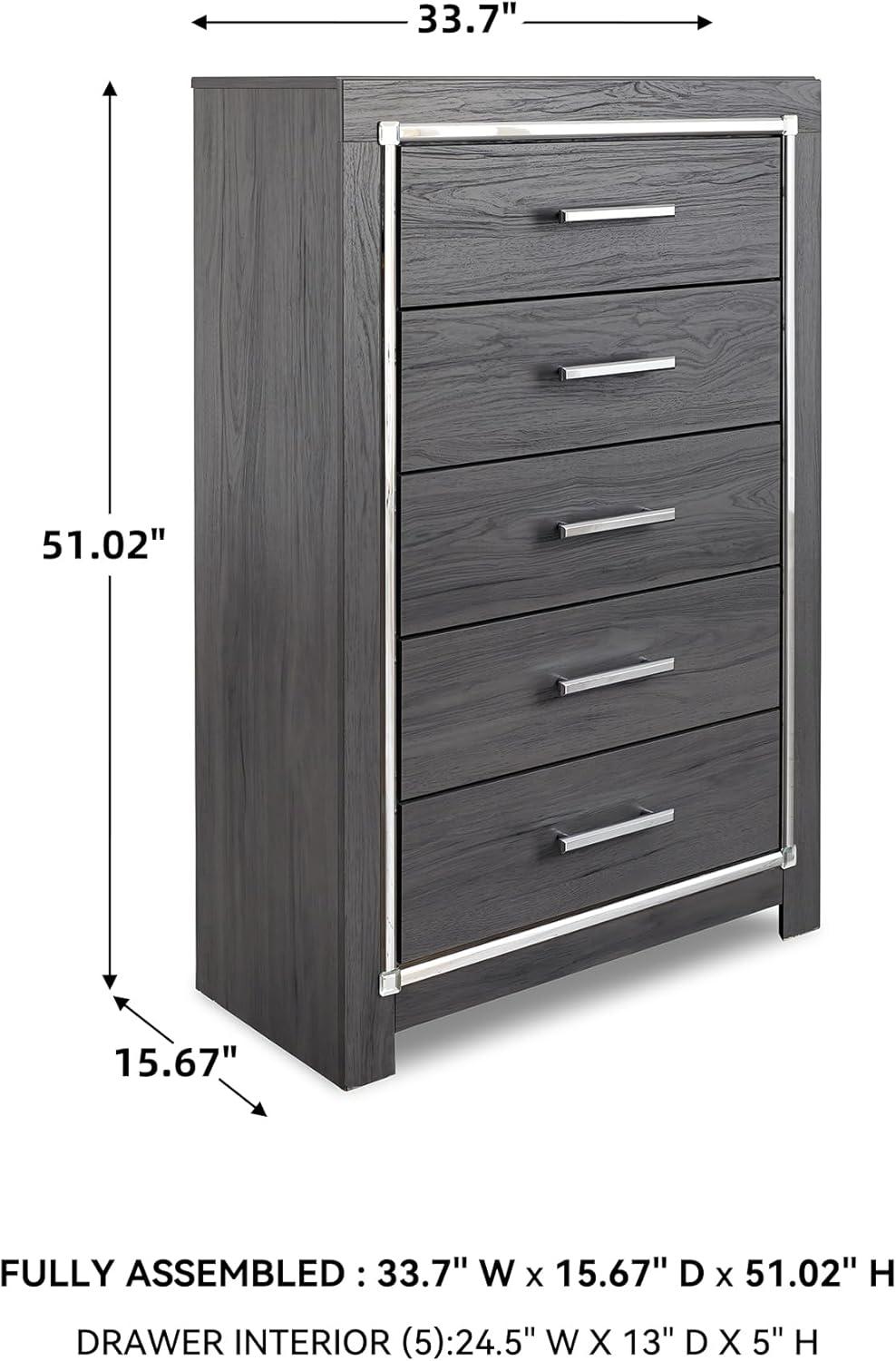 Signature Design by Ashley Zyniden Glam 6 Drawer Dresser with Safety Stop, Faux Crystal Handles, Wood, 60.67″ W x 15.28″ D x 40″ H, Chrome(Grey)